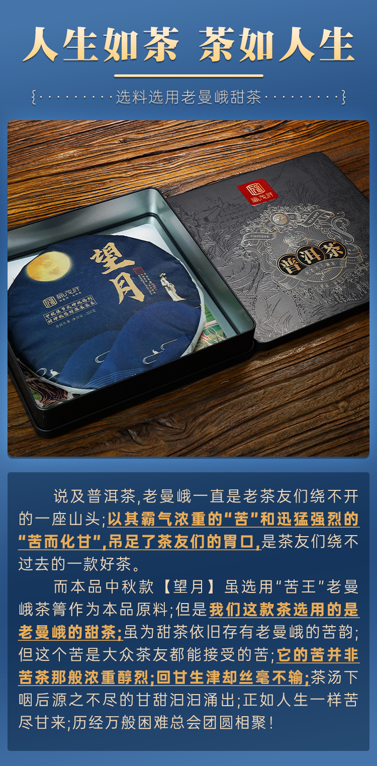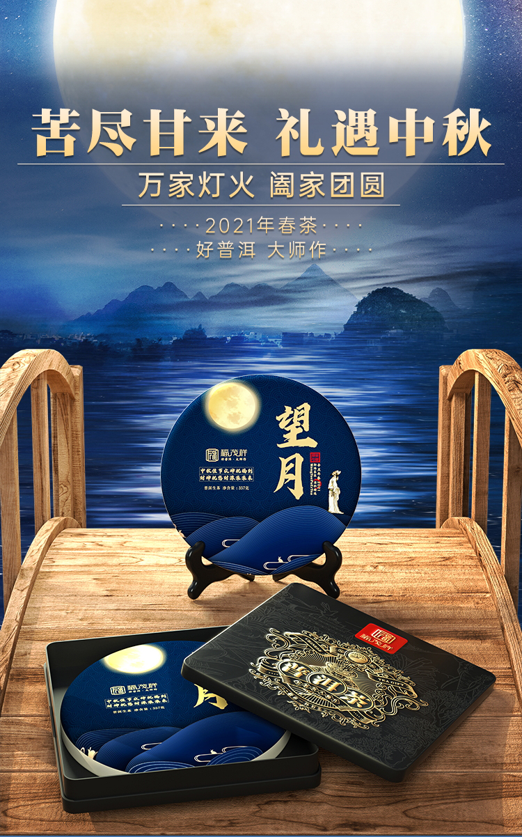 【望月/老曼峨甜茶/礼盒装】2021年云南勐海老曼峨普洱生茶茶叶茶饼357g 礼盒装