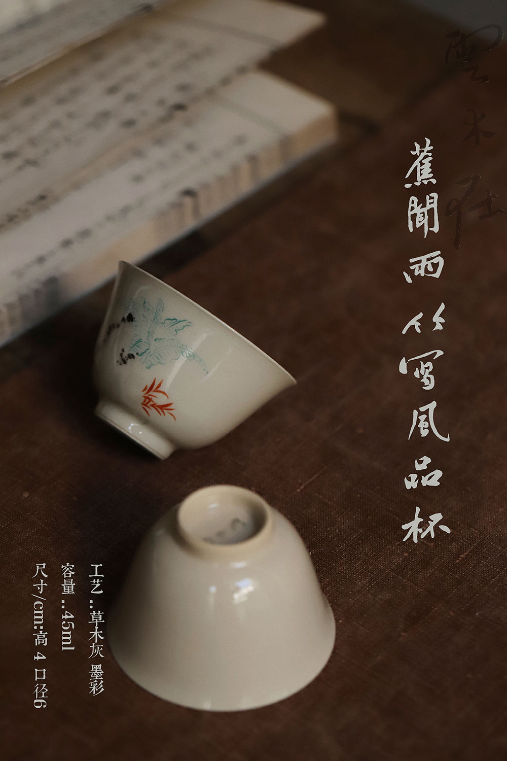 景德镇云木在/蕉闻雨竹写声品杯 景德镇陶瓷茶杯手绘品茗杯品杯