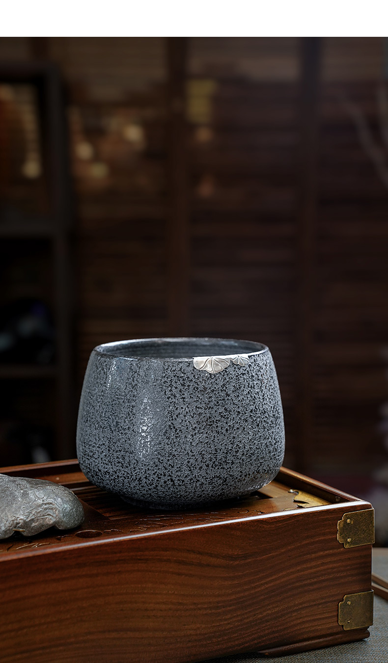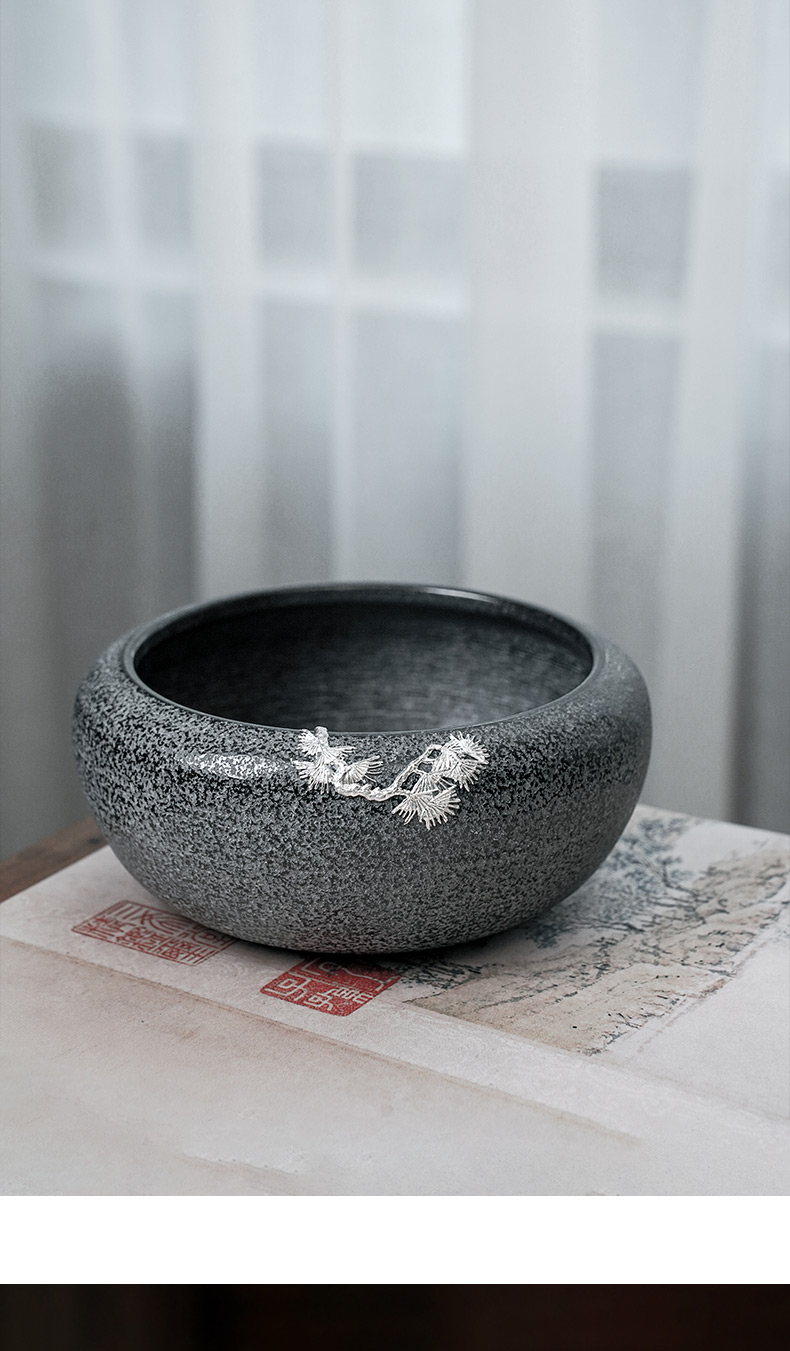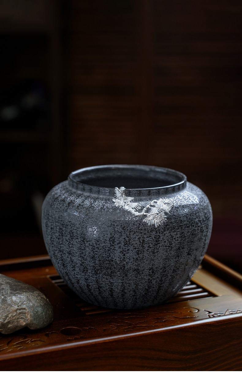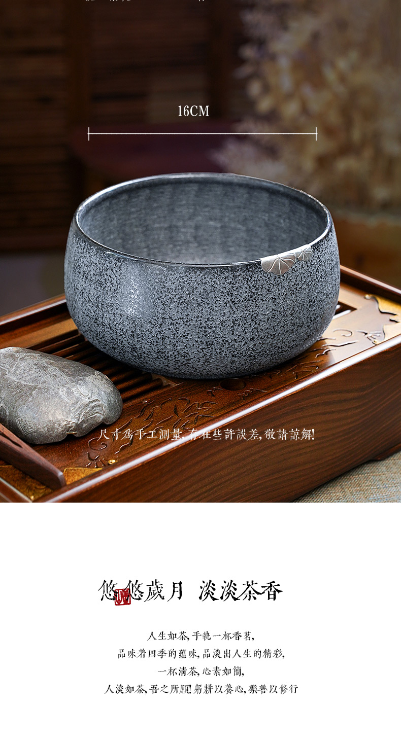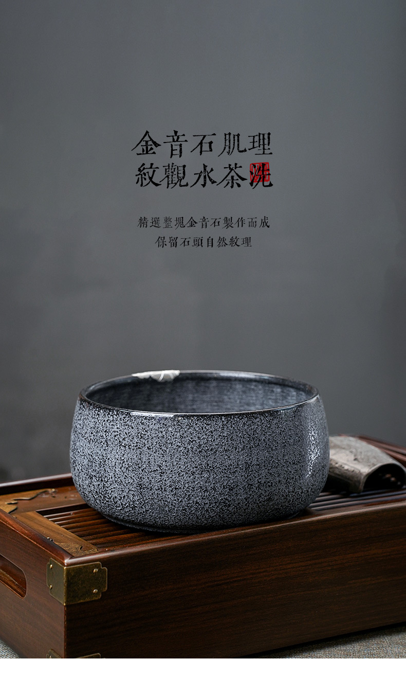 金音石茶洗 肌理纹建水简约家用复古水盂茶水缸茶桶功夫茶渣缸功夫茶盂