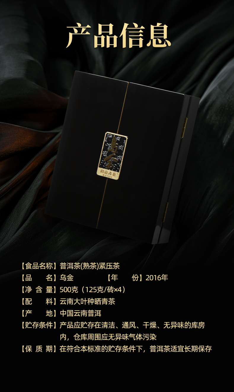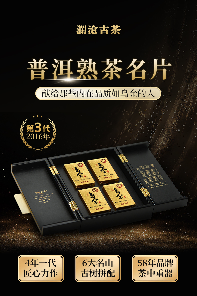 澜沧古茶2016年第3代乌金普洱茶熟茶名山古树熟普砖茶礼盒装500g(125g*4)
