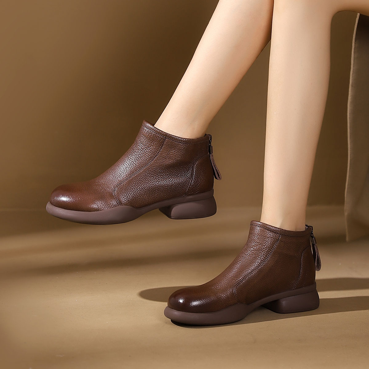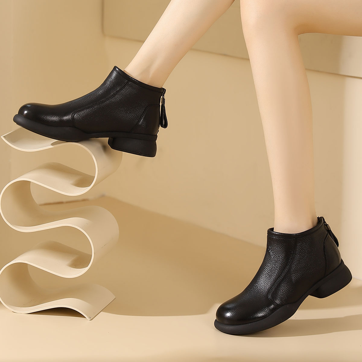 西村名物2023秋季新品法式复古尖头粗跟裸靴短靴切尔西靴X23DS45461