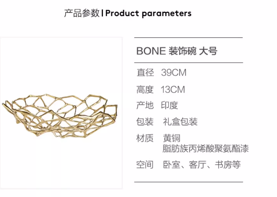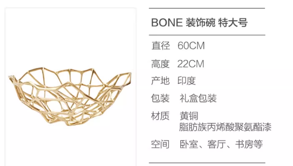 TomDixon手工黄铜装饰碗摆件客厅轻奢高档装饰品乔迁新居礼品BONE