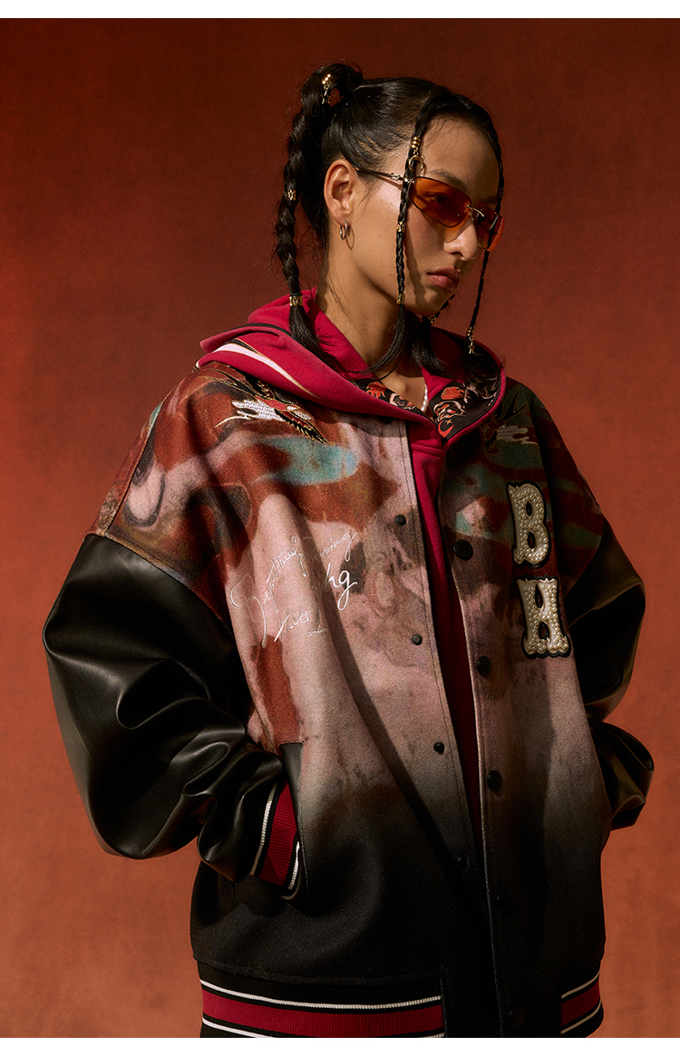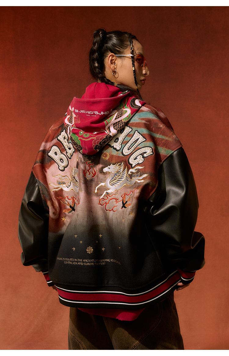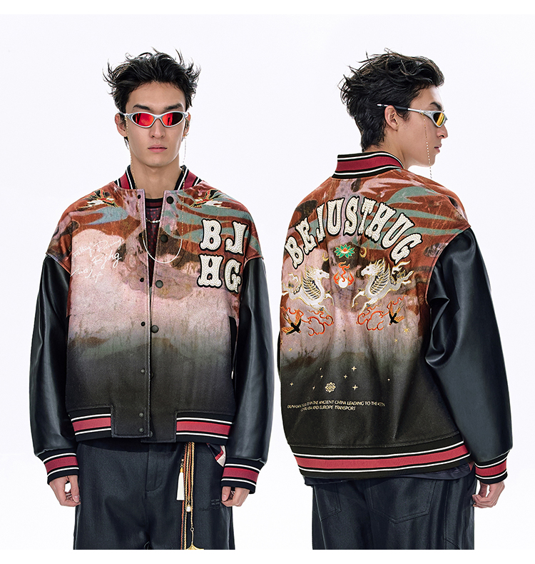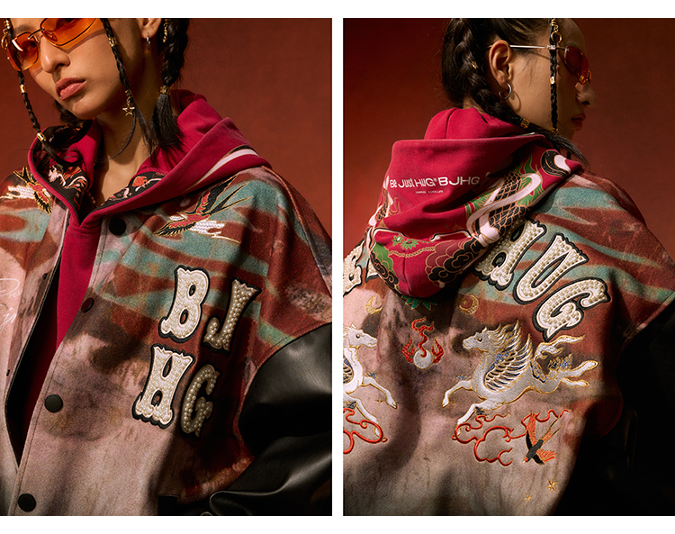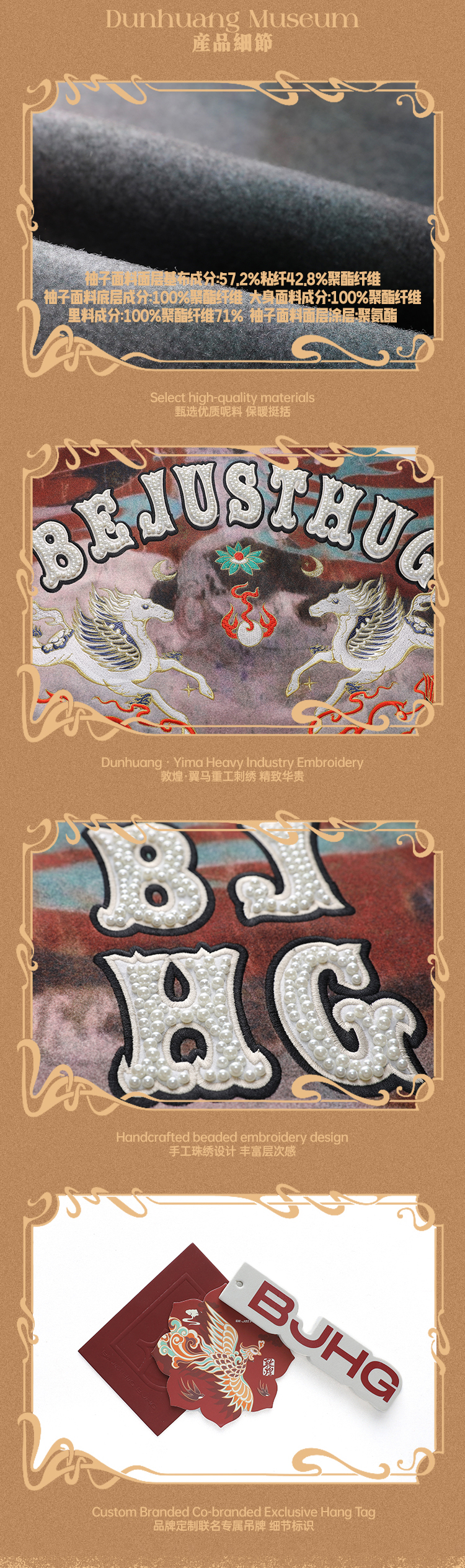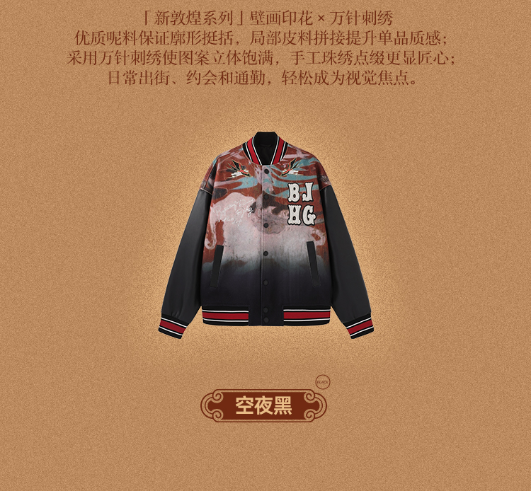 敦煌联名BJHG不计后果夹克外套男冬季潮牌复古美式街头风棒球服女