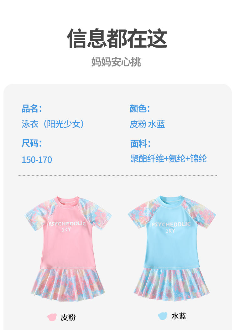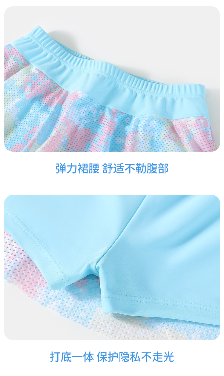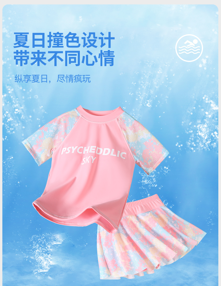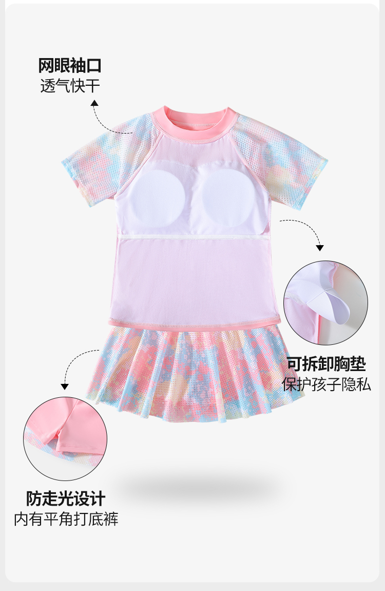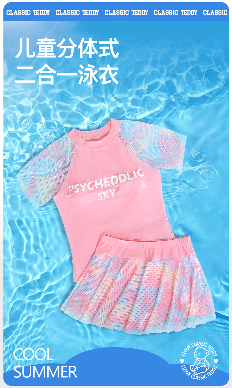 【带胸垫 】【150-170】【精典泰迪】女孩短袖泳裙分体泳衣套装