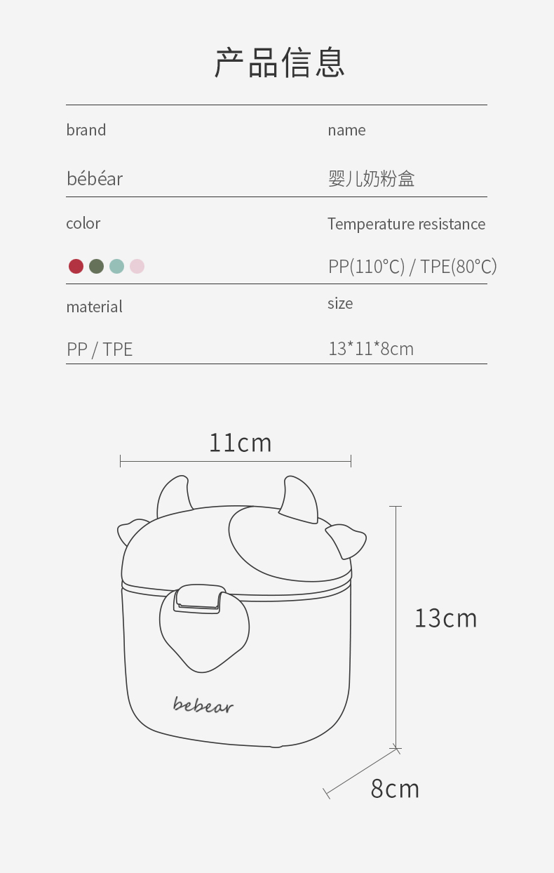 抱抱熊装奶粉盒便携式外出米粉储存罐分装盒子109
