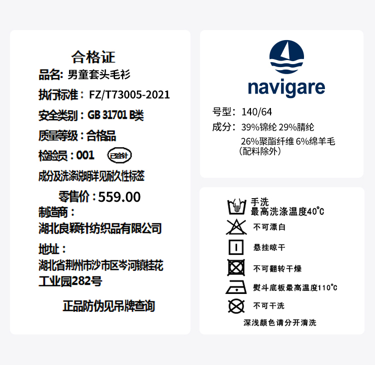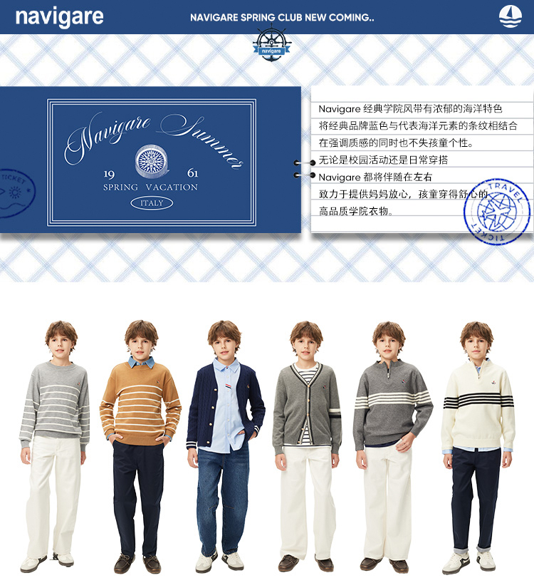 【纳维凯尔】【含羊毛】【120-165】意大利小帆船男童春秋针织衫毛衣
