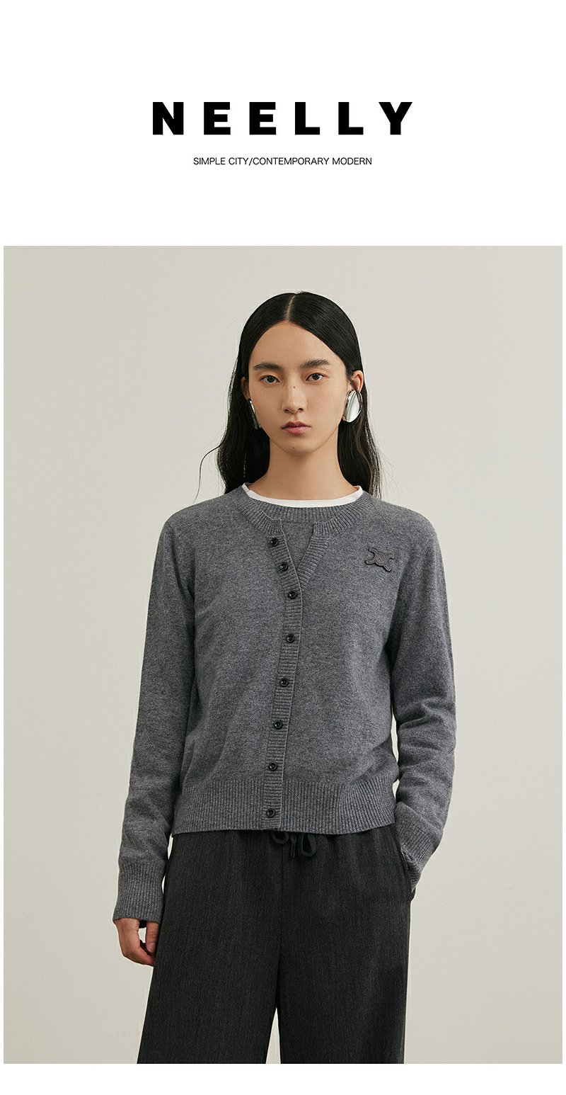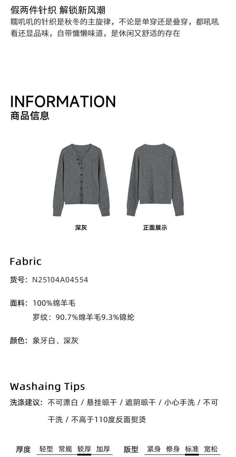 NEELLY纳俪商场同款冬季新款假两件针织衫女短款慵懒休闲针织衫N25104A04554