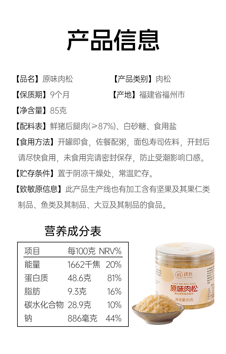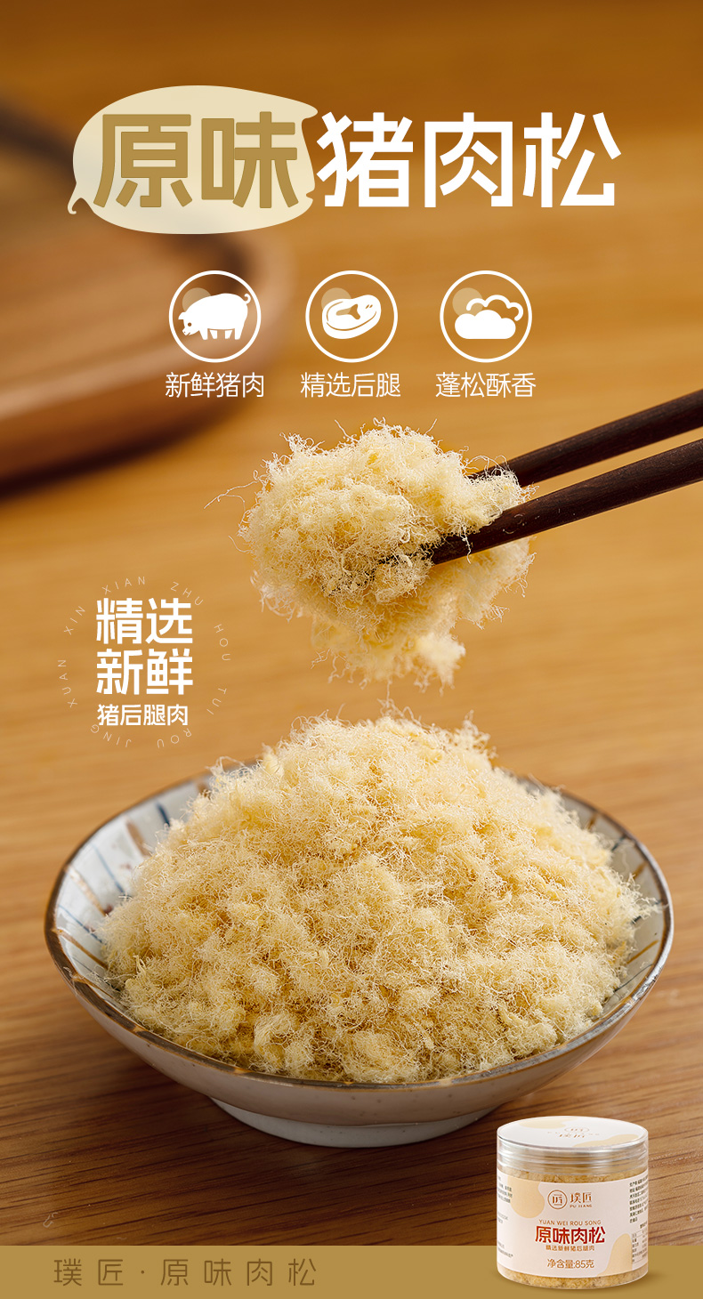 原味肉松即食早餐配粥拌饭肉酥小贝面包蛋糕烘焙卷寿司猪肉松零食