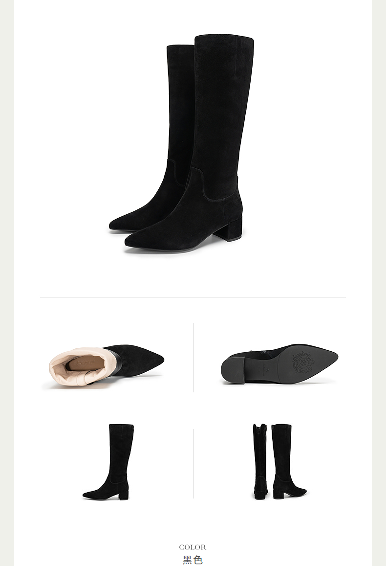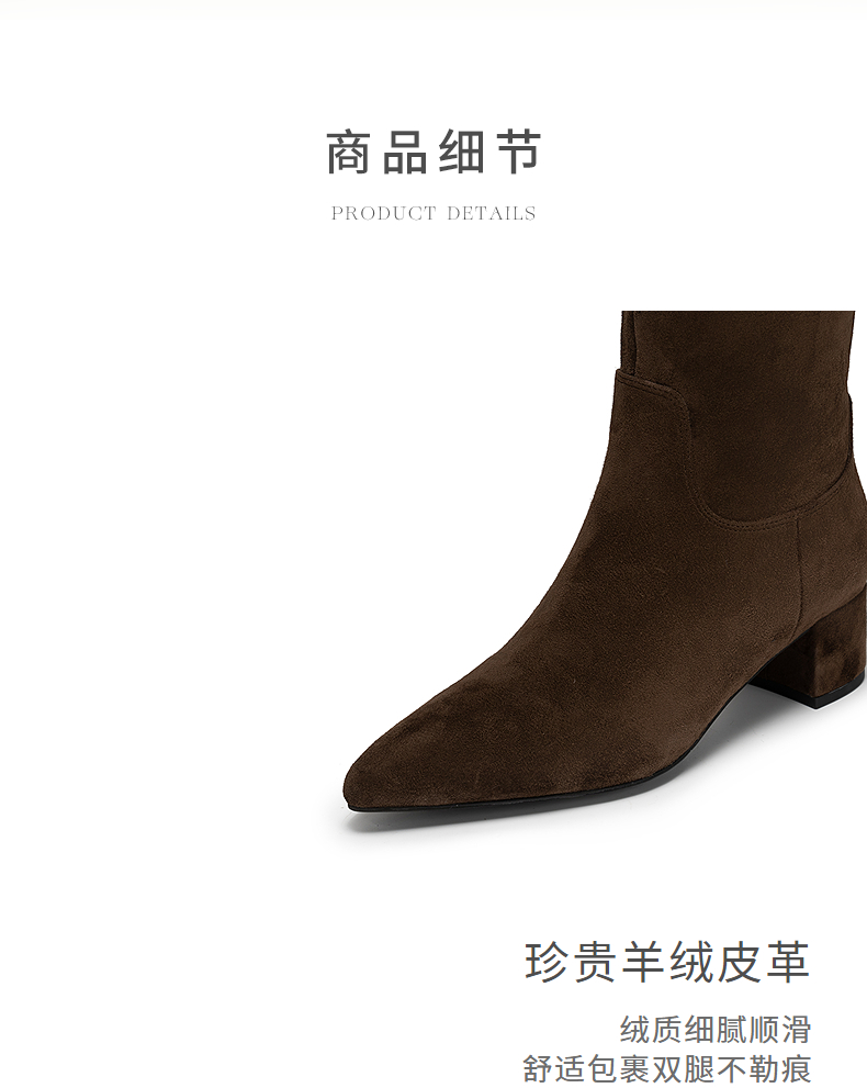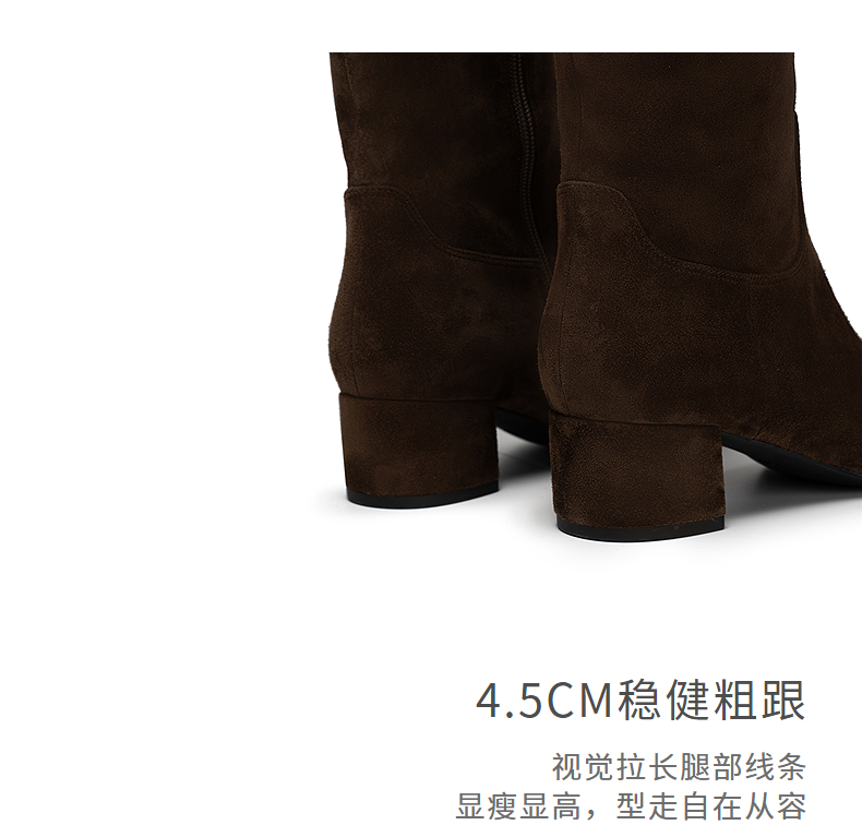 natursun复古弹力靴女士冬季新款尖头显瘦长筒靴子粗跟瘦瘦靴N25556706