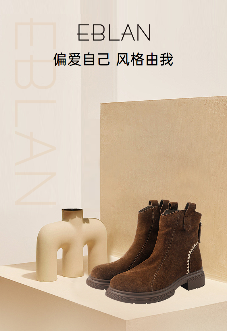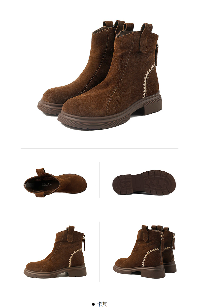 伊伴冬季不费力拉链穿脱复古感女鞋B25550113