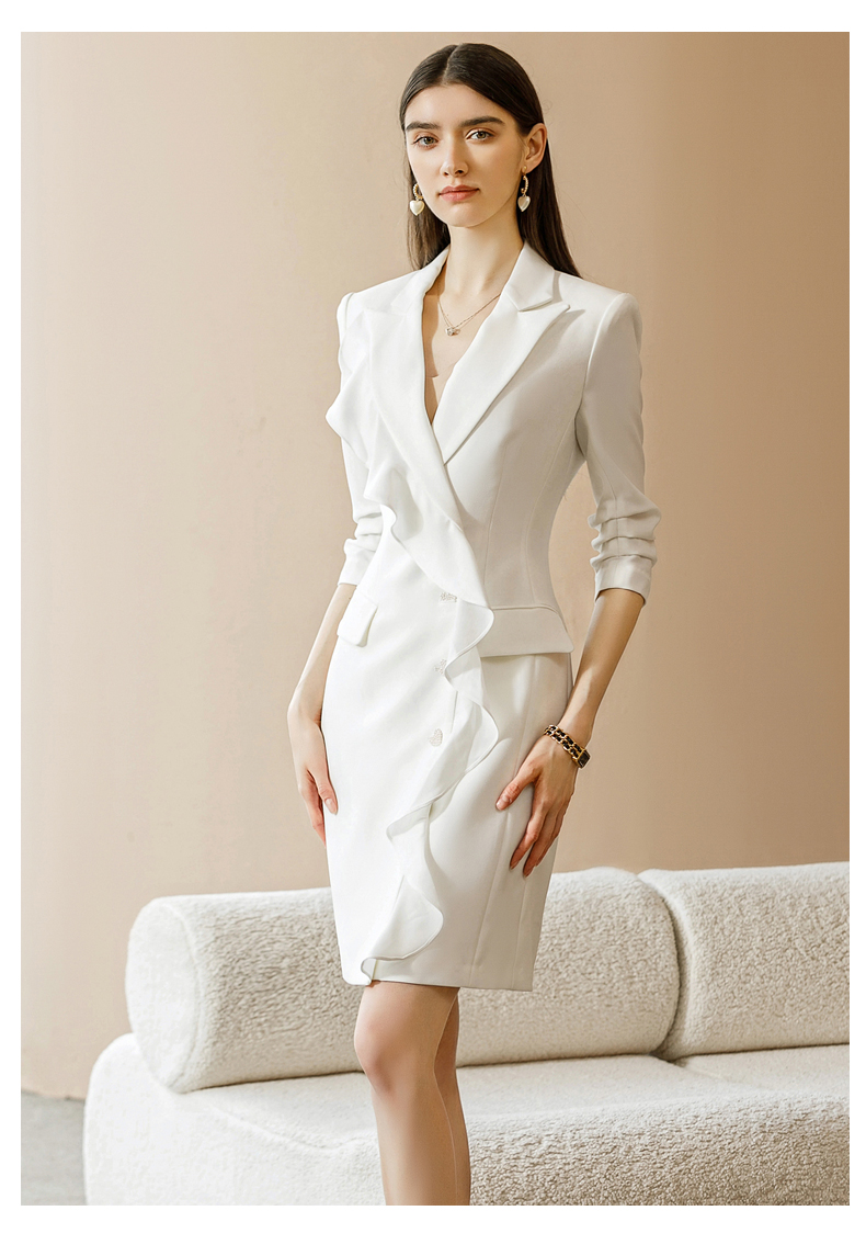 IWY/法式气质西装领连衣裙七分袖时尚女神范白色名媛总裁正装裙子22CQ0009