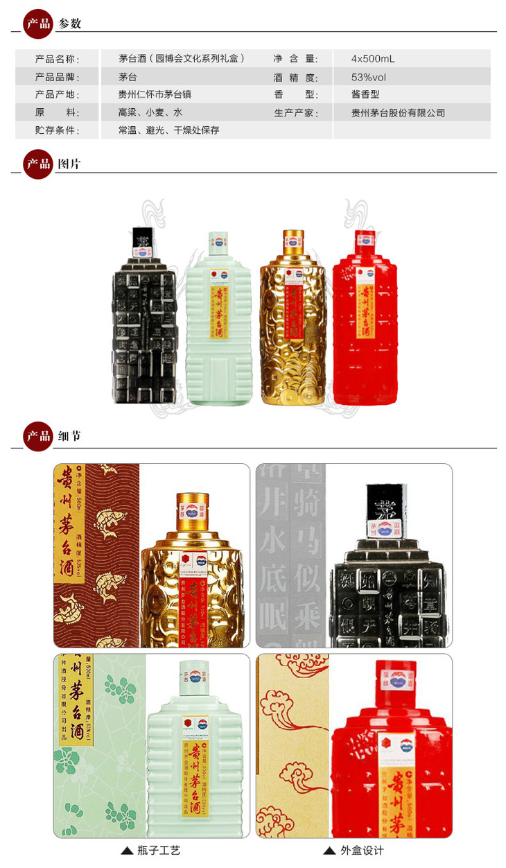 53度茅台酒(园博会文化系列礼盒)500ml×4