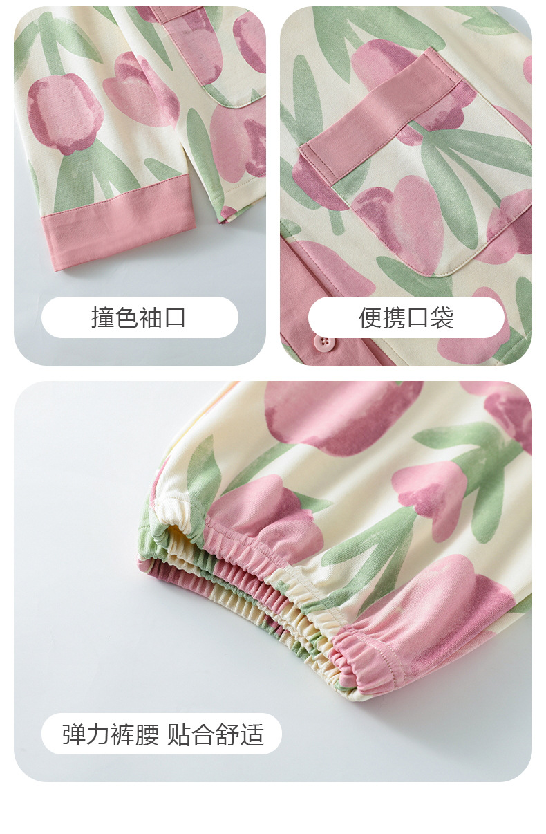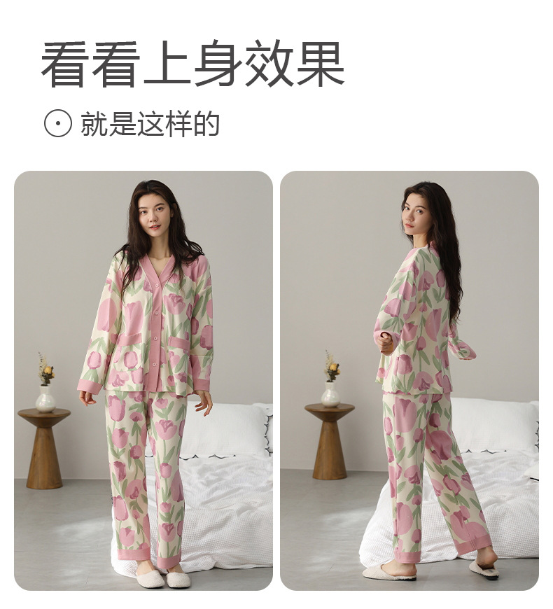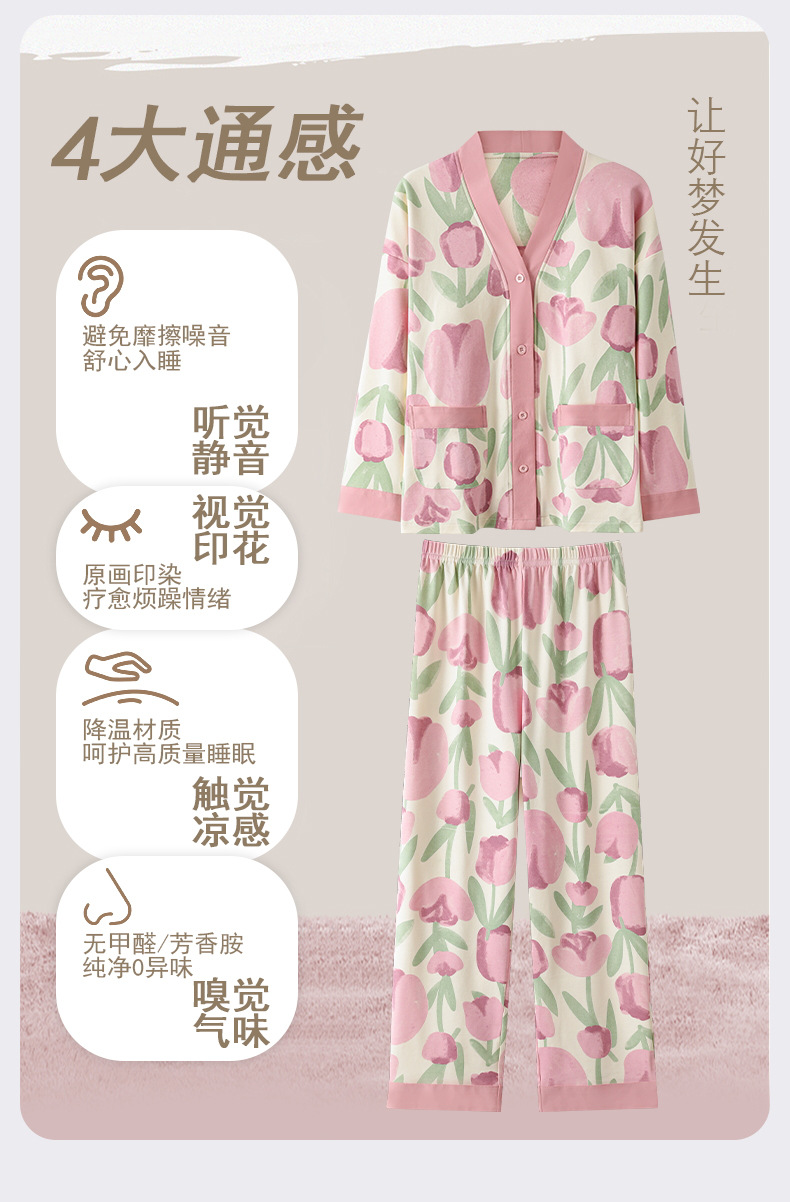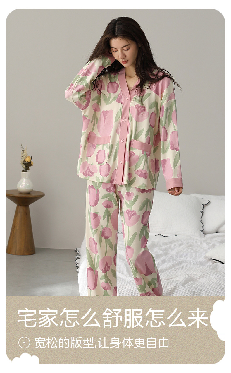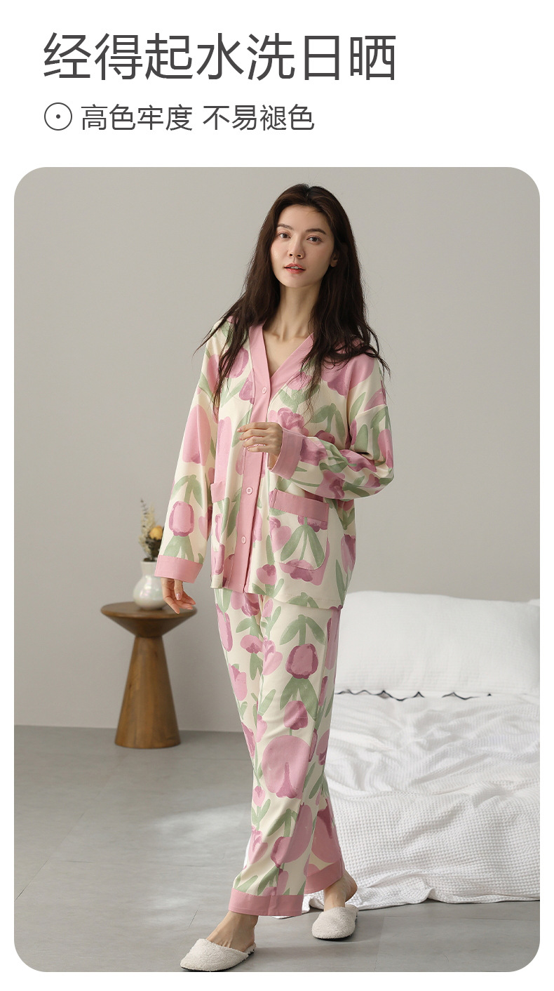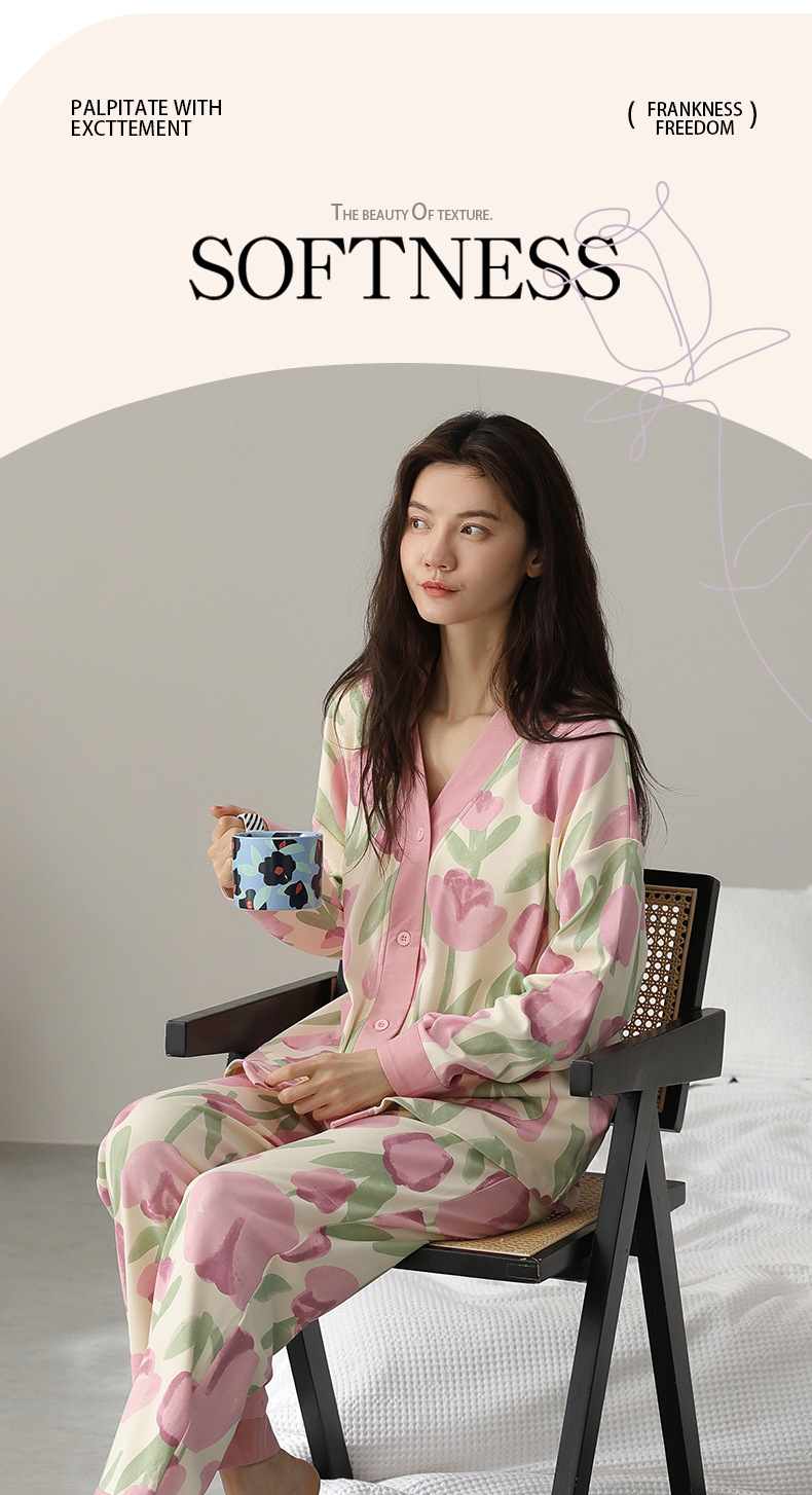 春秋季【开衫睡衣带胸垫】长袖长裤免穿文胸 优质棉家居服 V领和服睡衣