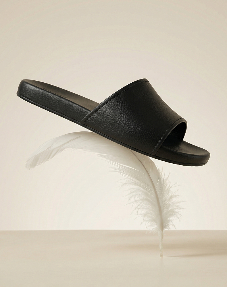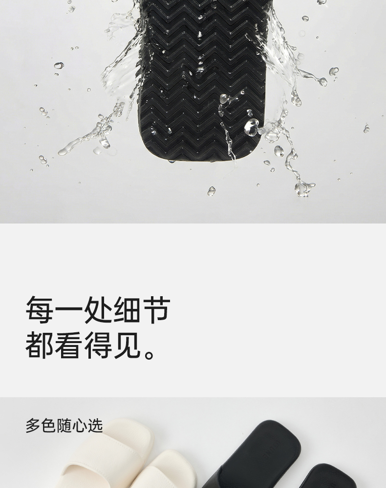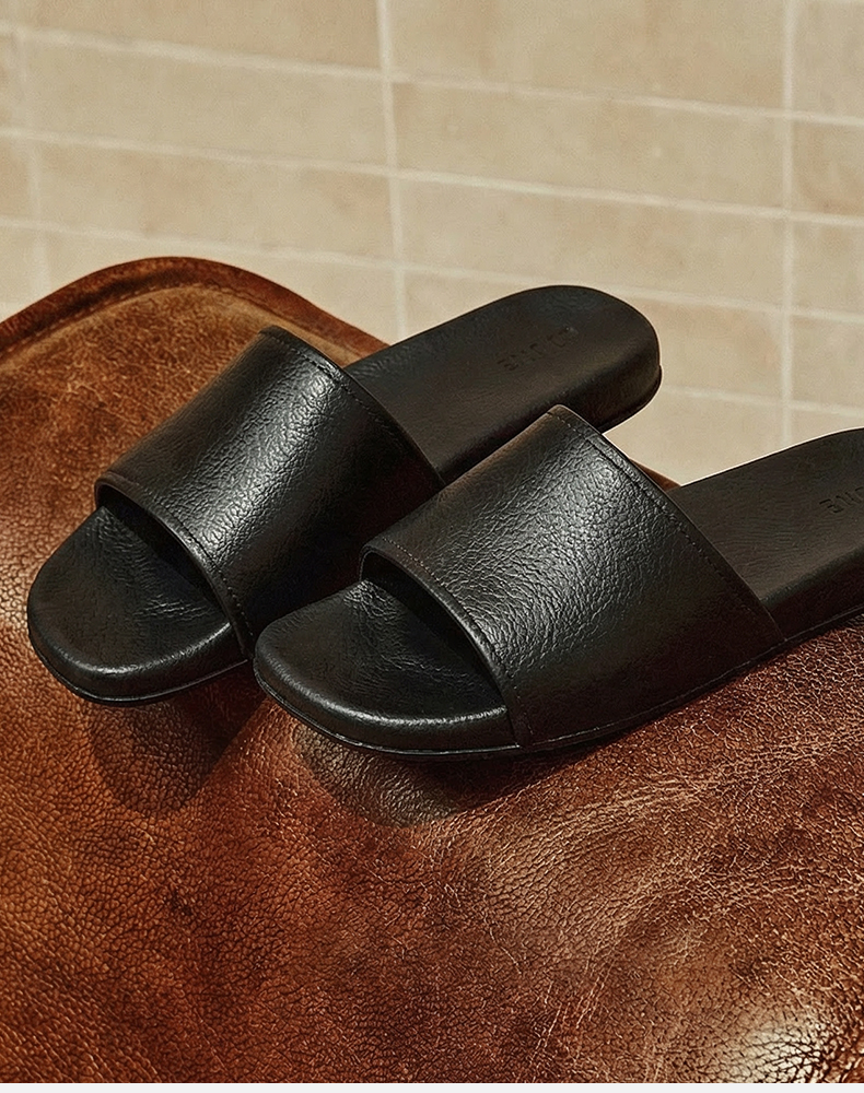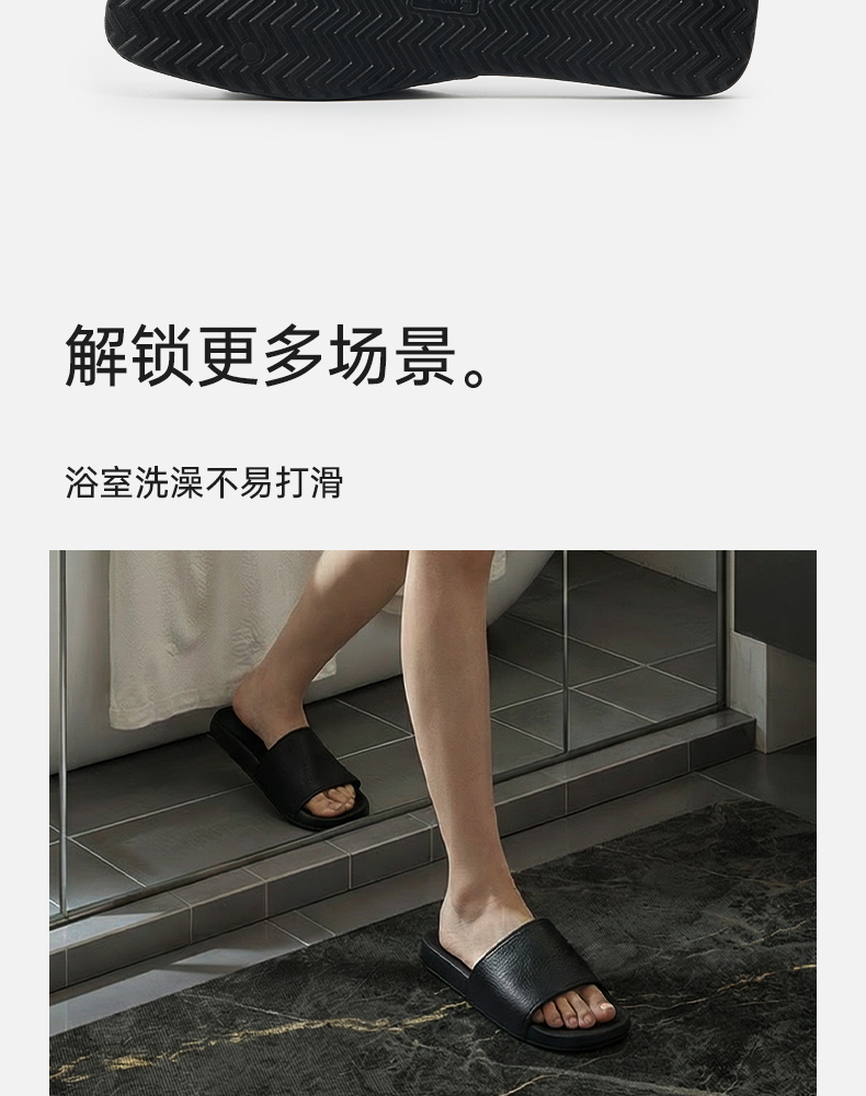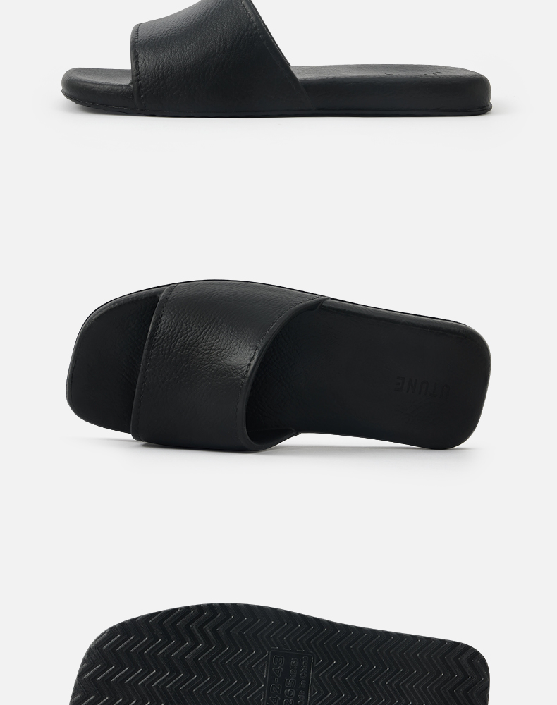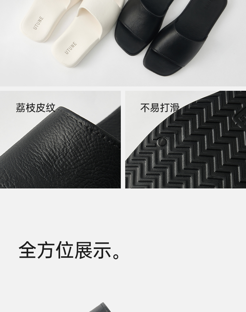 【2026新款】优调 创意印象拖鞋 黑色凉拖鞋 夏居家高级感 酒店轻奢平底防水皮纹拖鞋 UXT1524