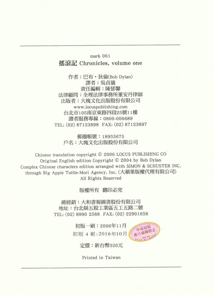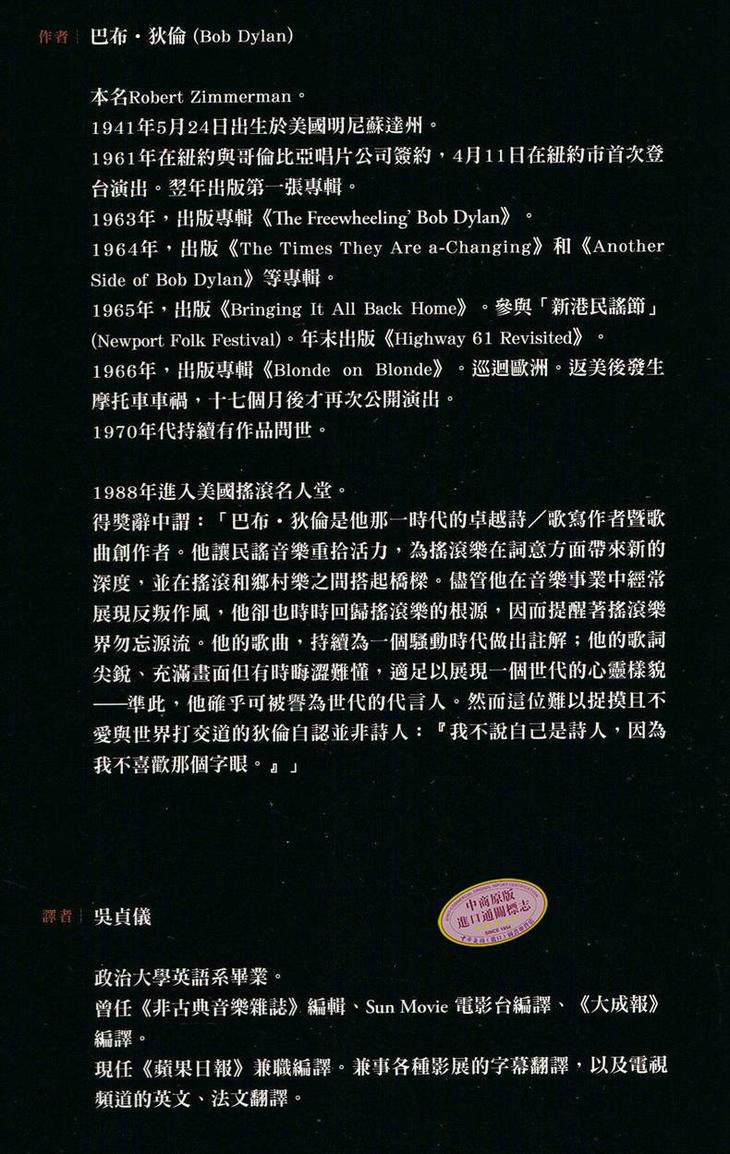 作者: 巴布.狄倫 出版社:大塊文化