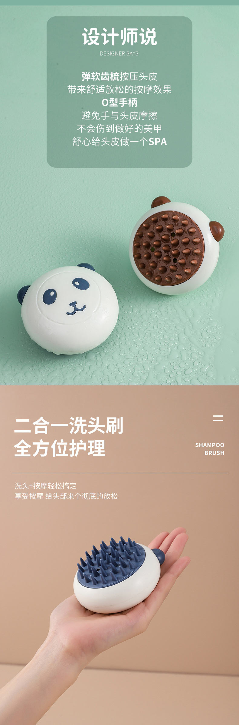 熊猫硅胶洗澡刷 清洁按摩 柔软齿梳 节省浴液