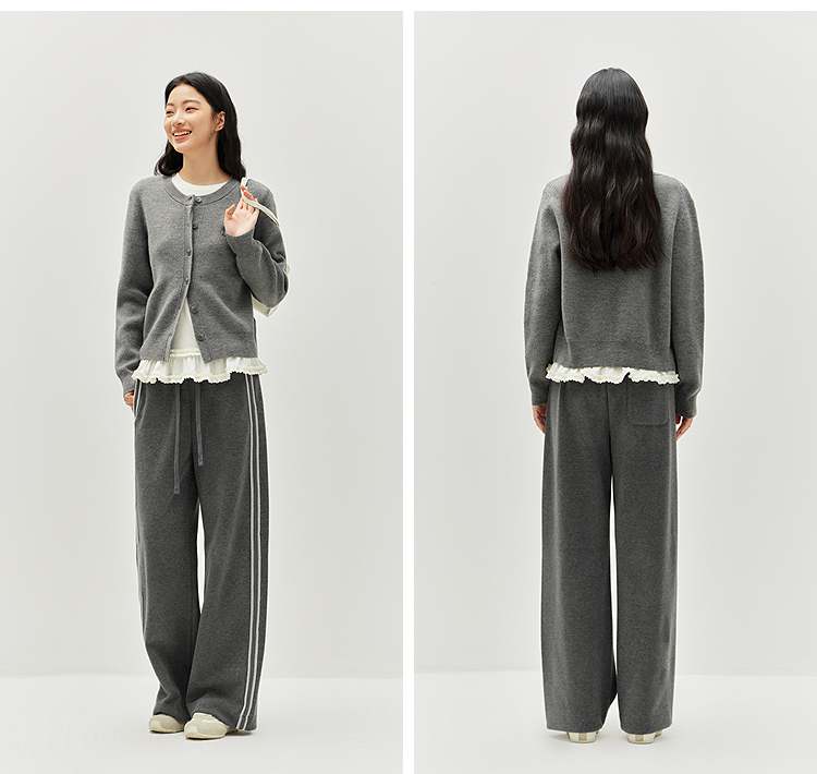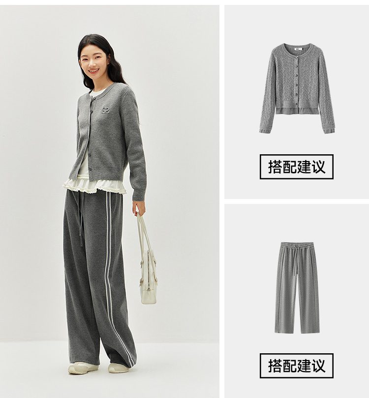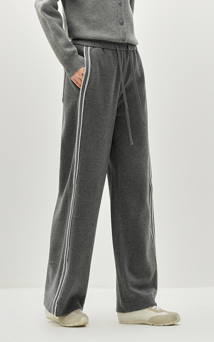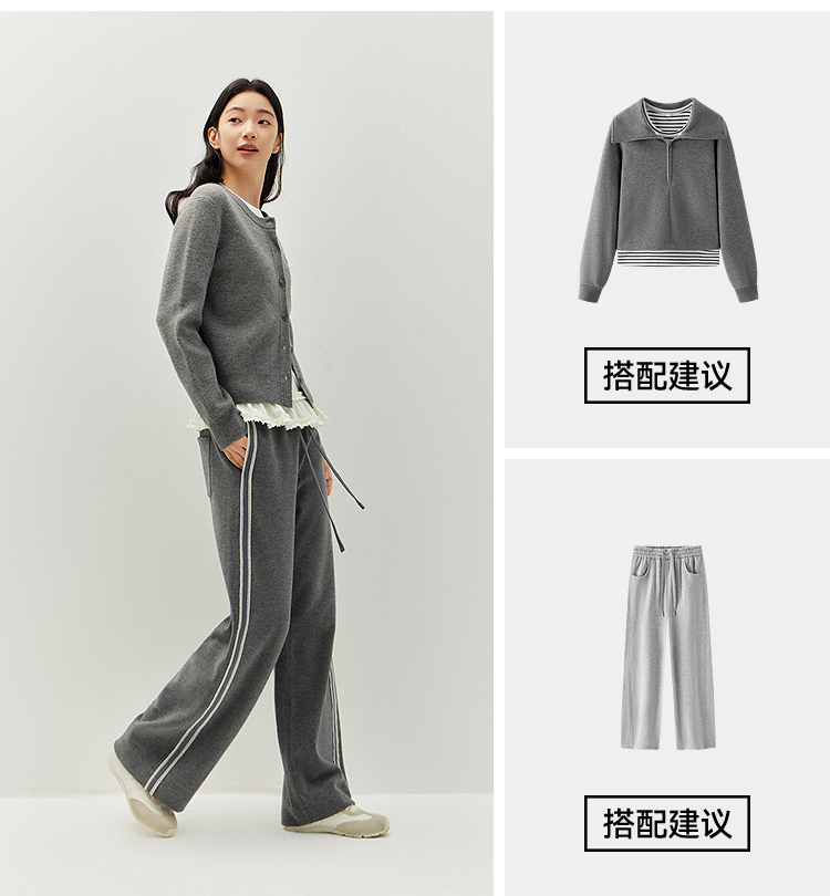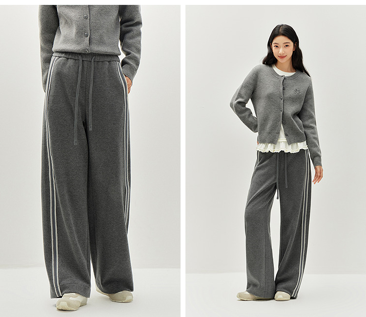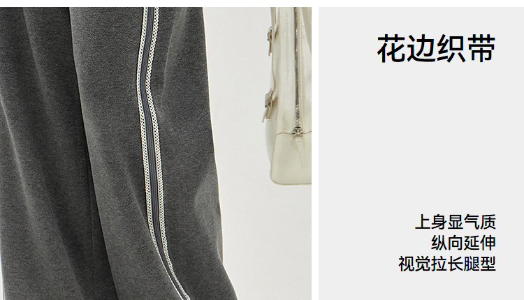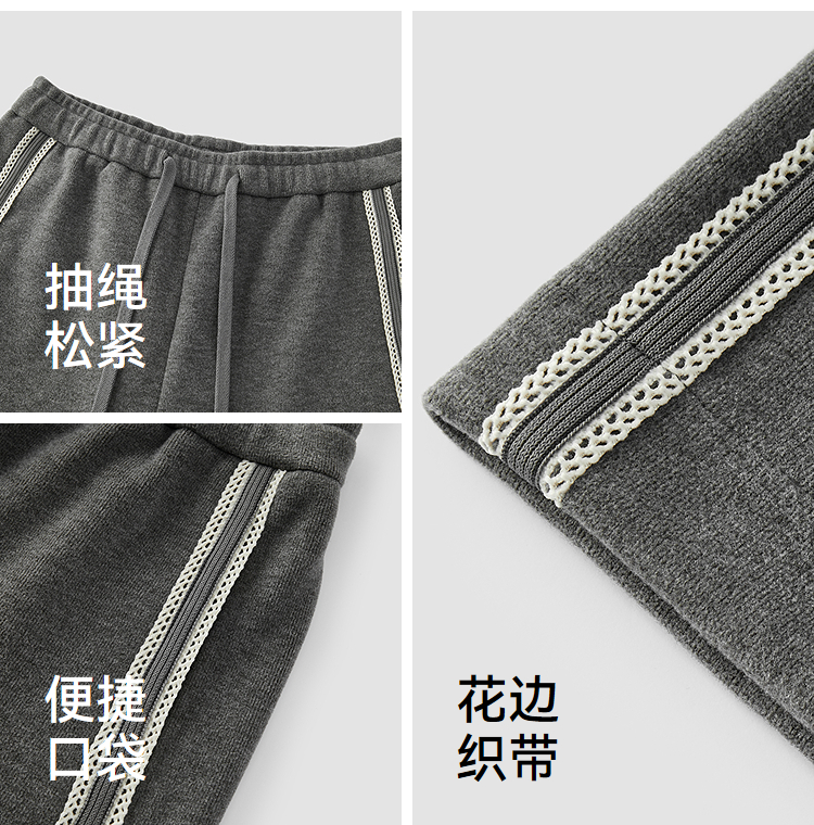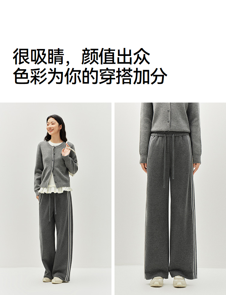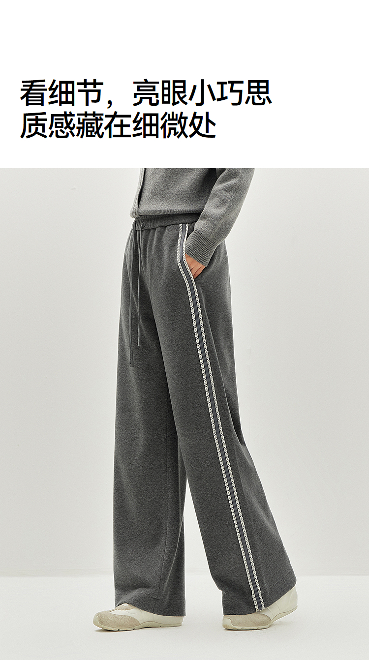 森马休闲裤女冬季花边撞色宽松仿呢长裤2025新款显腿长气质阔腿裤