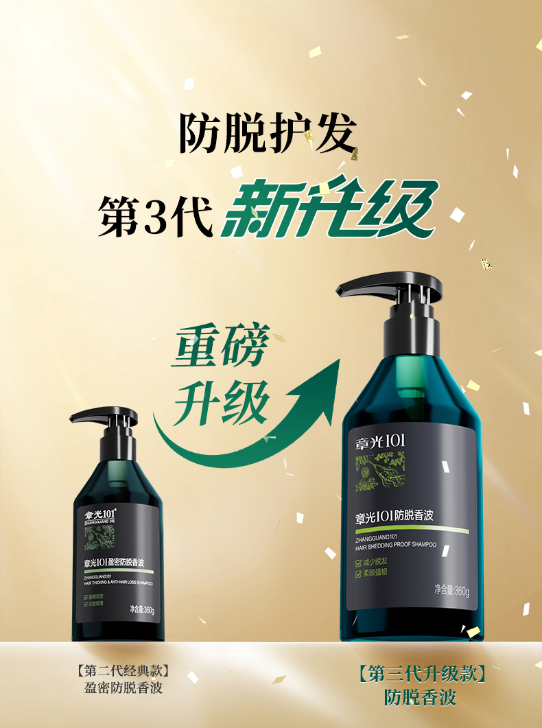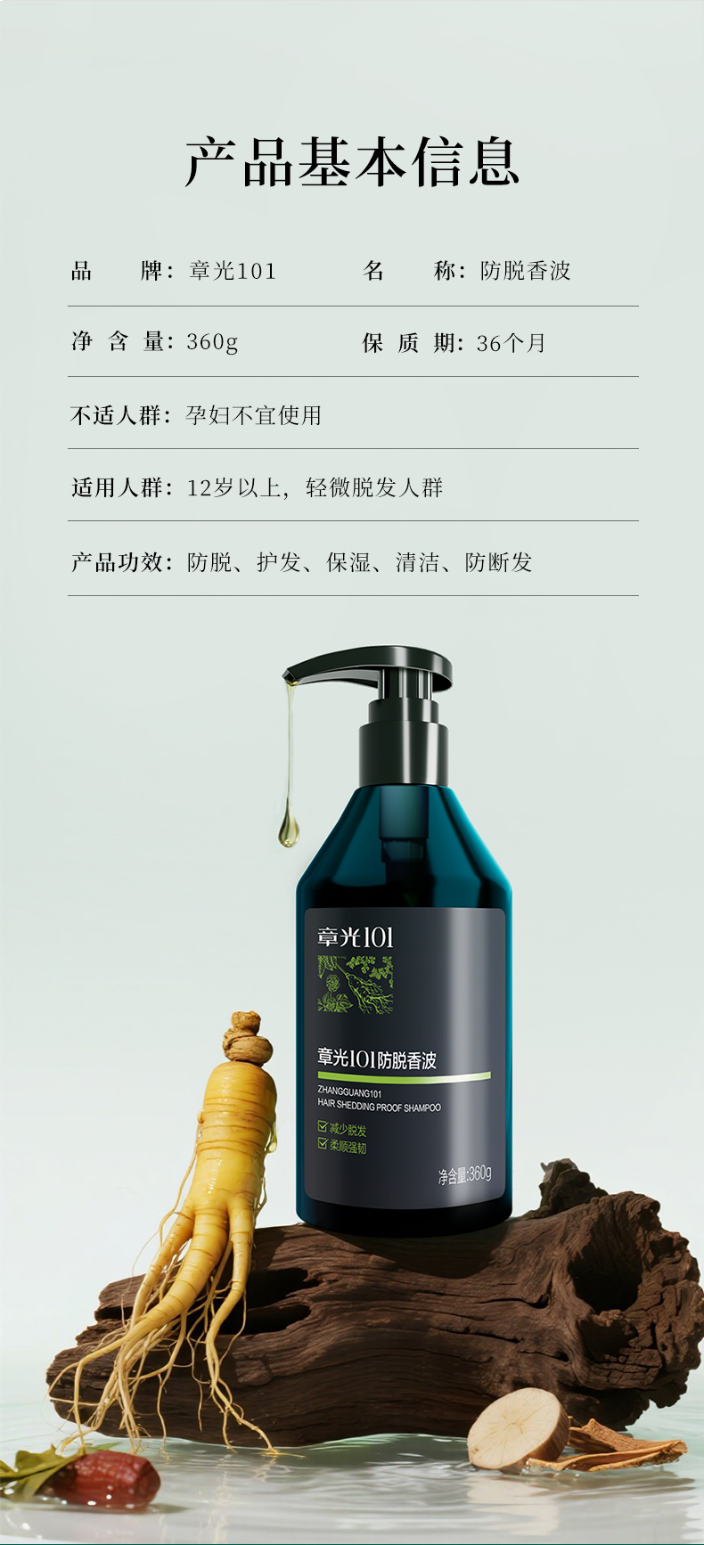 热卖中!!【53项专利 科学防脱50年 国妆特字】章光101防脱香波洗发水 360g/瓶 买2瓶装送8g*5袋旅行装!