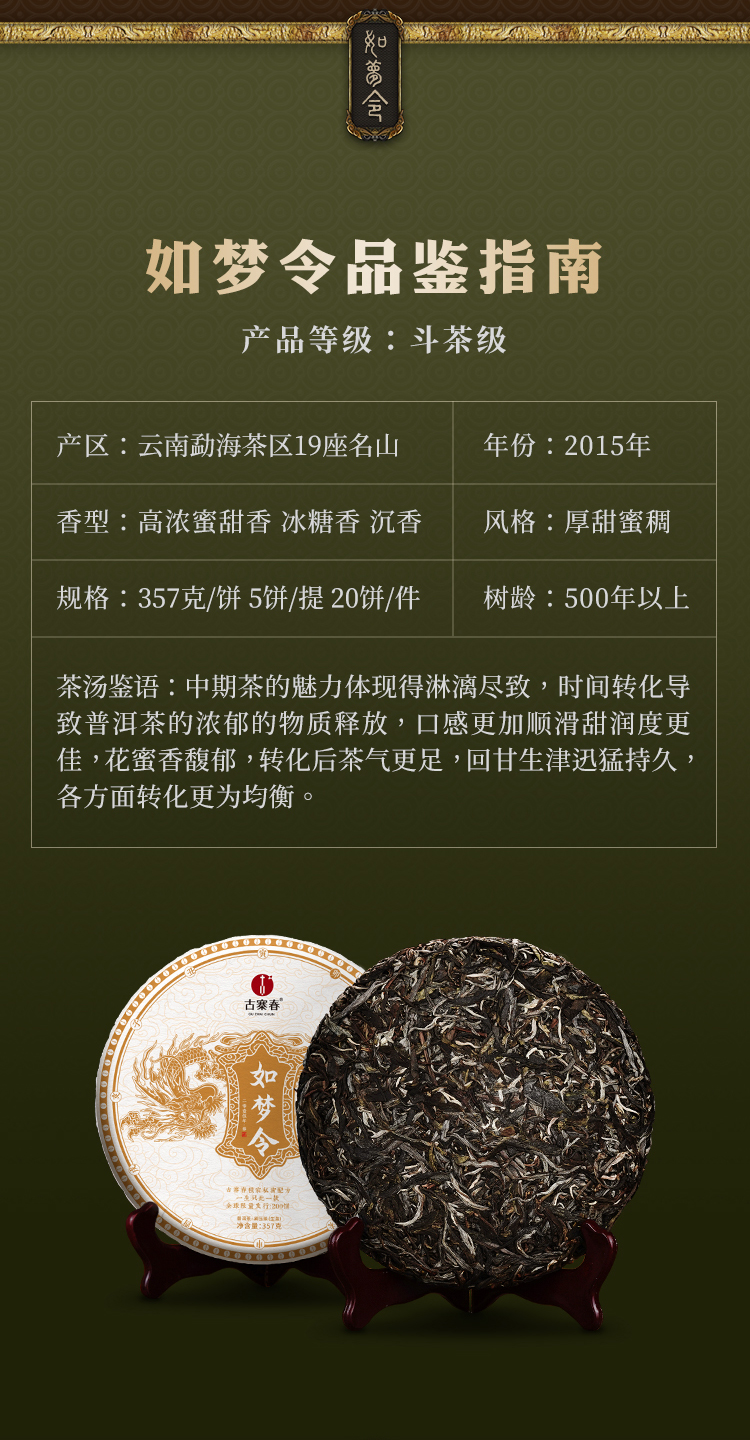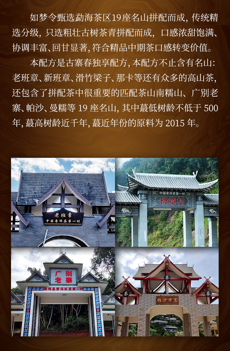 【如梦令】2015年勐海茶区19座名山拼配古寨春独创配方普洱茶生茶饼357克/饼 5饼/提 拍5发6拍20发25每饼送纯银令牌