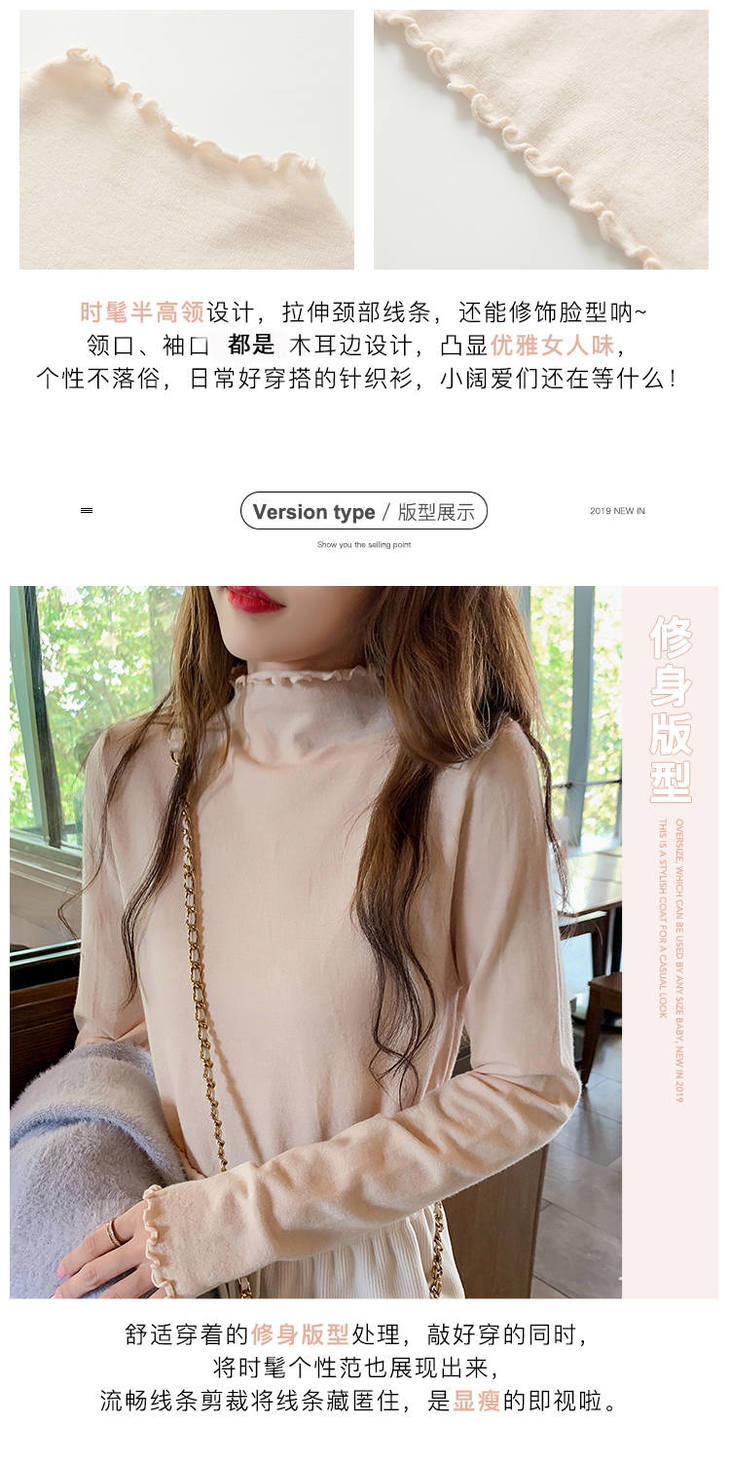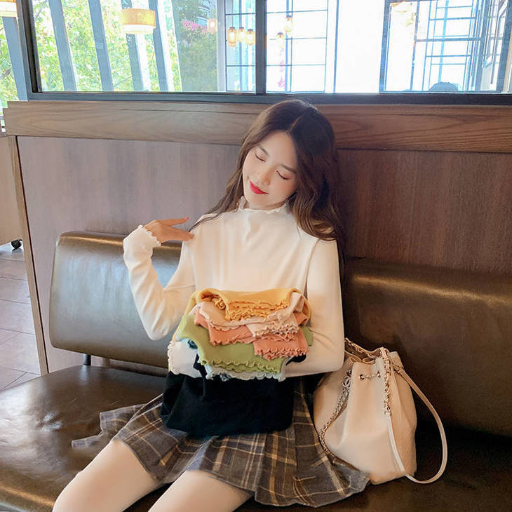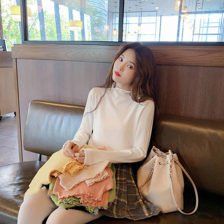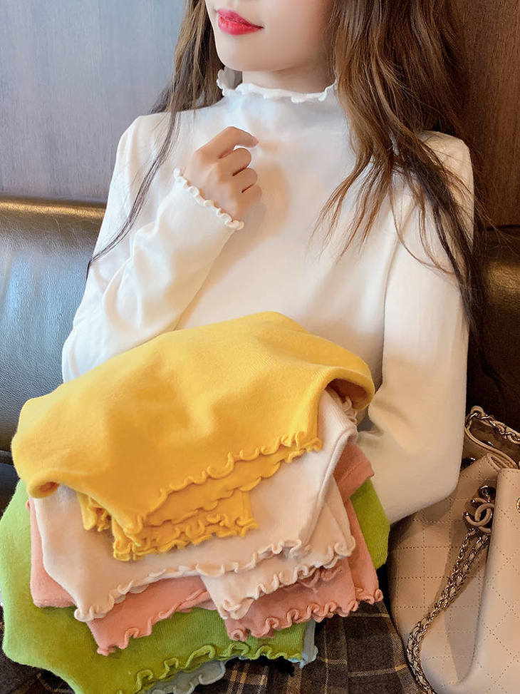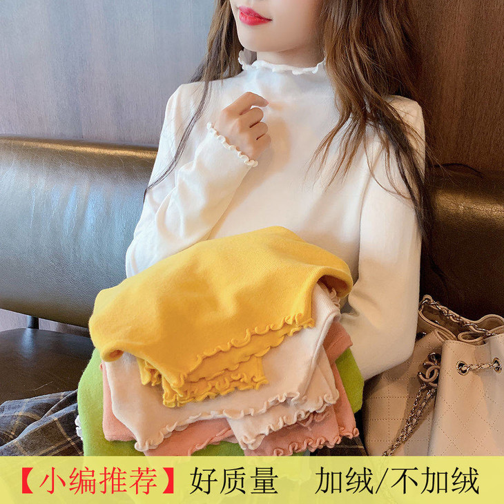 木耳边上衣女半高领洋气时尚打底衫女学生内搭长袖