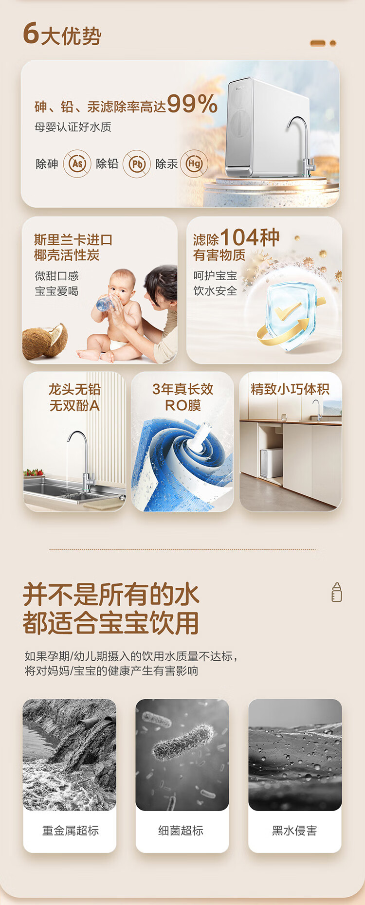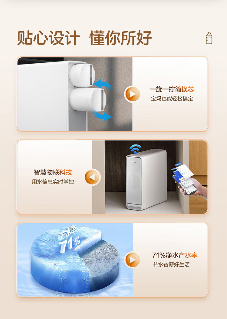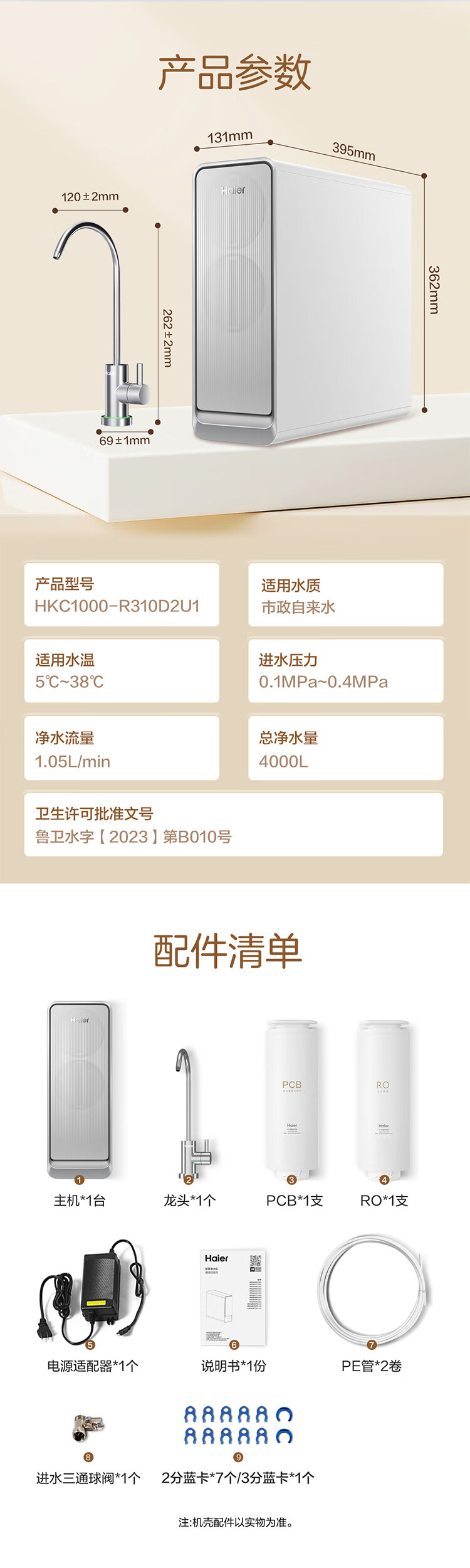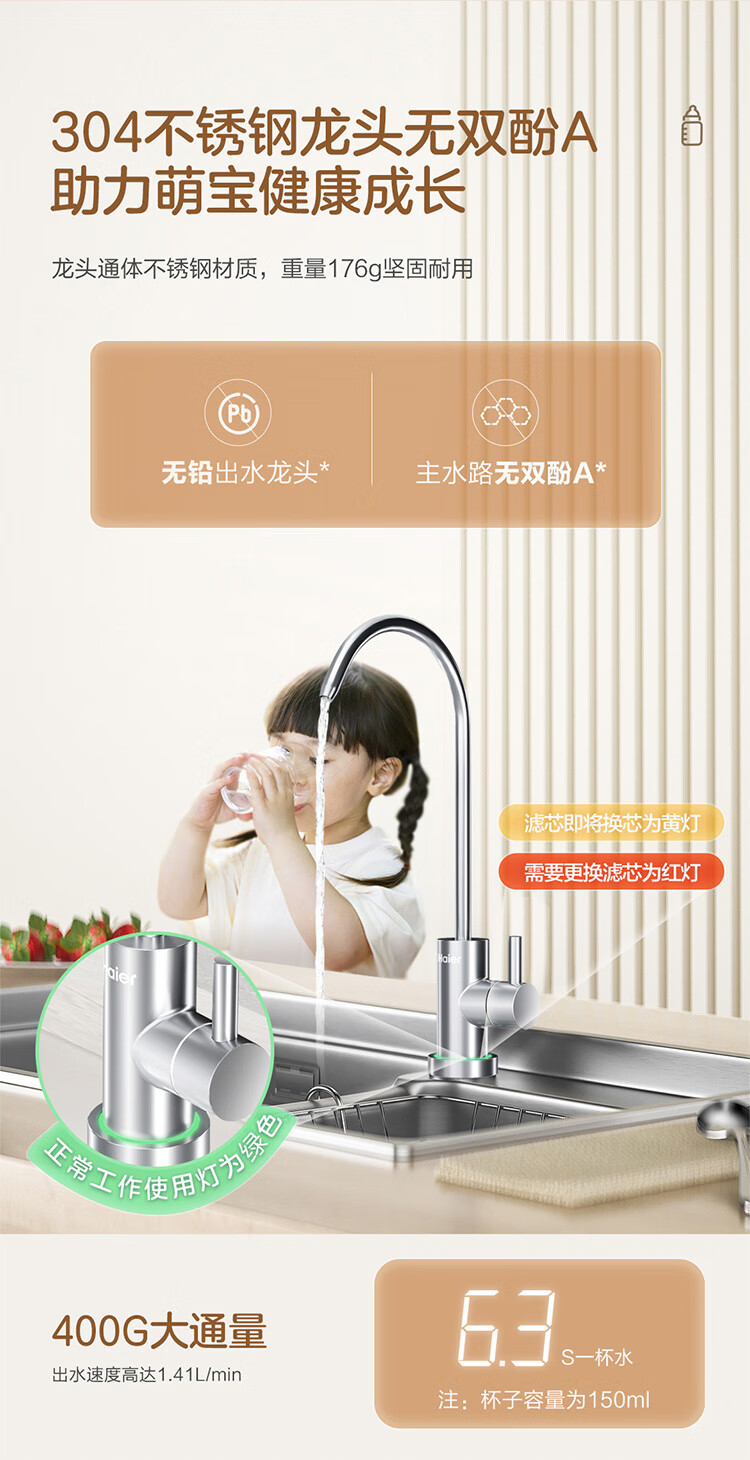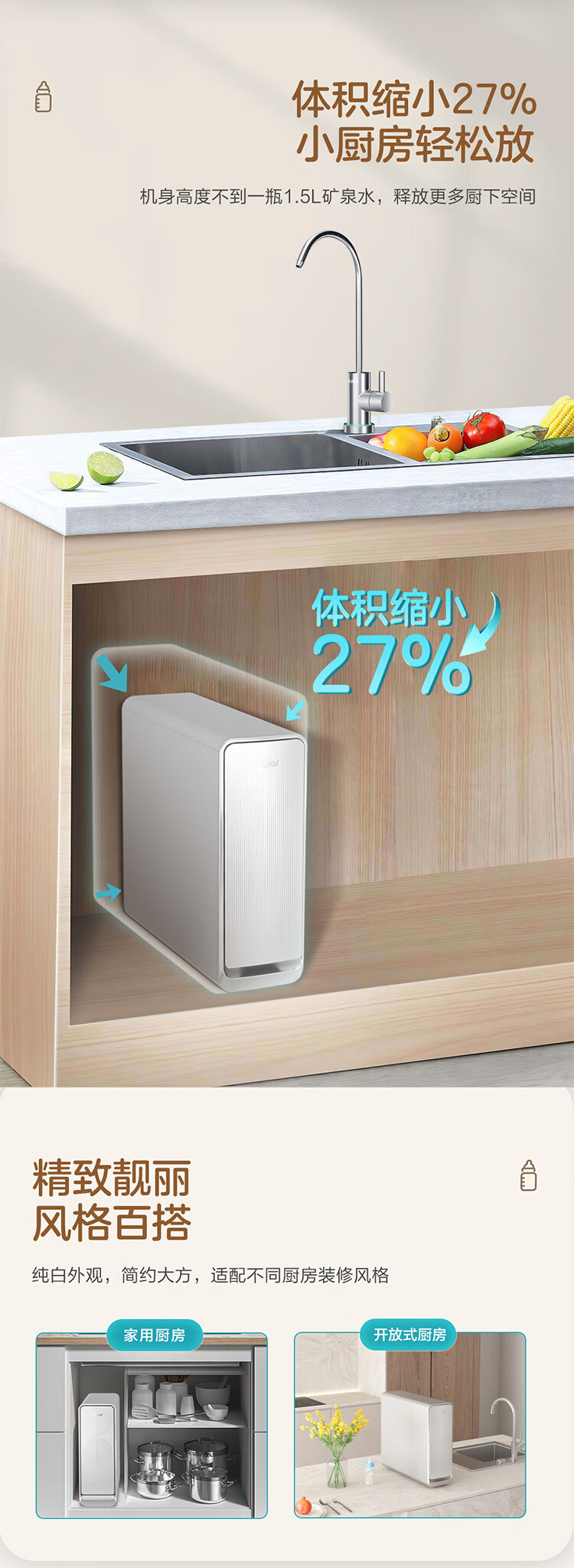 海尔家用反渗透RO膜净水机 小海贝HKC1560-R310D2U1