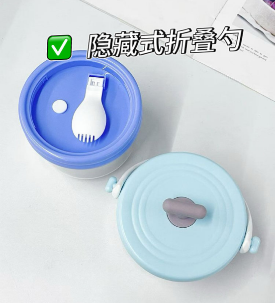 细节设计太贴心!带饭党狂喜💡 除了颜值和容量,细节也很戳人: ✅盖子上有排气孔,加热的时候轻轻一按就能放气,超安全👍 ✅自带便携提手,拎着出门很方便,不勒手👋🏻 ✅分层设计可以拆卸,清洗💦的时候没有死角,洗完晾干也很快到手两件套超值👏🏻 ⚠️隐藏式折叠勺