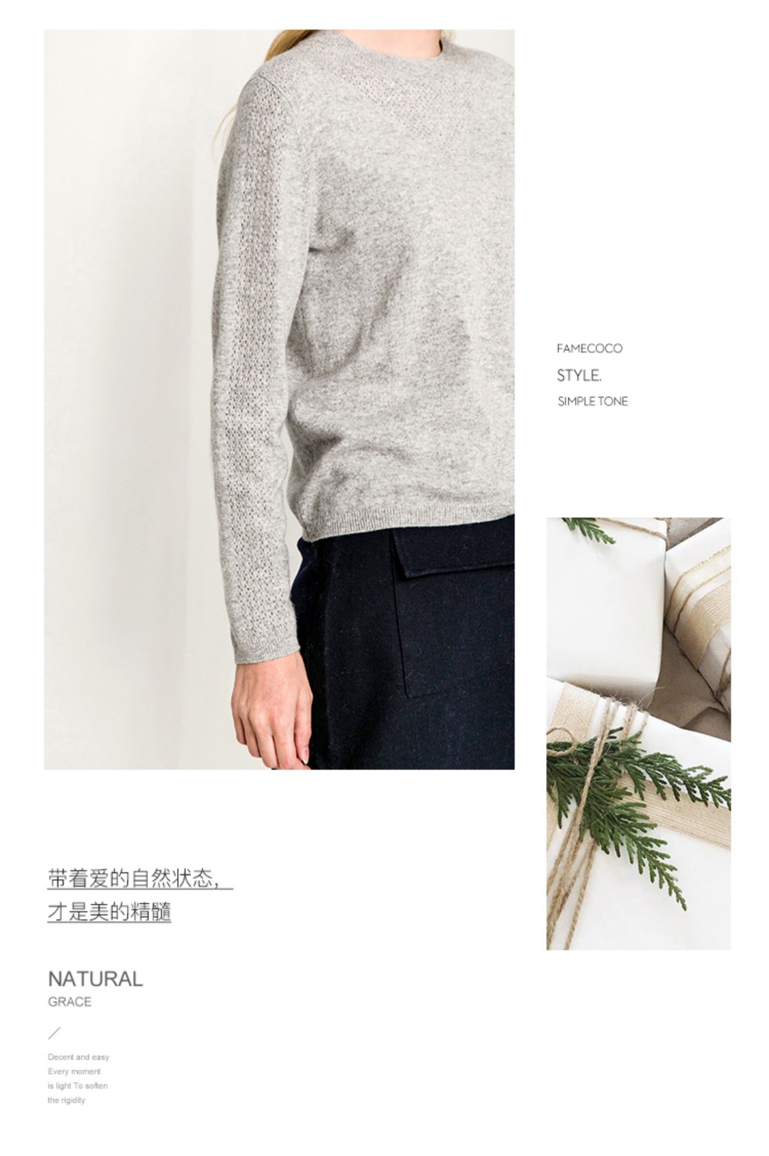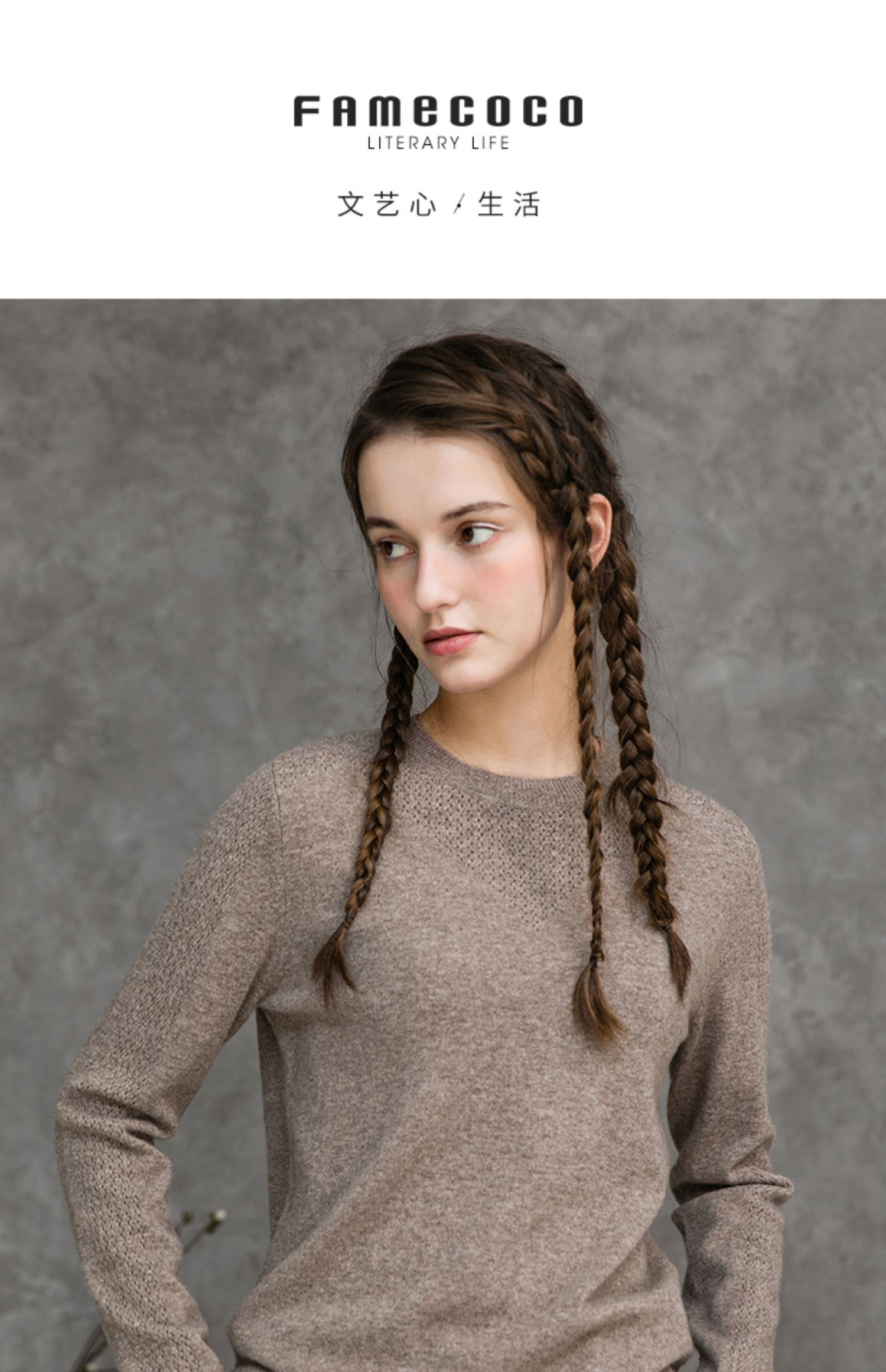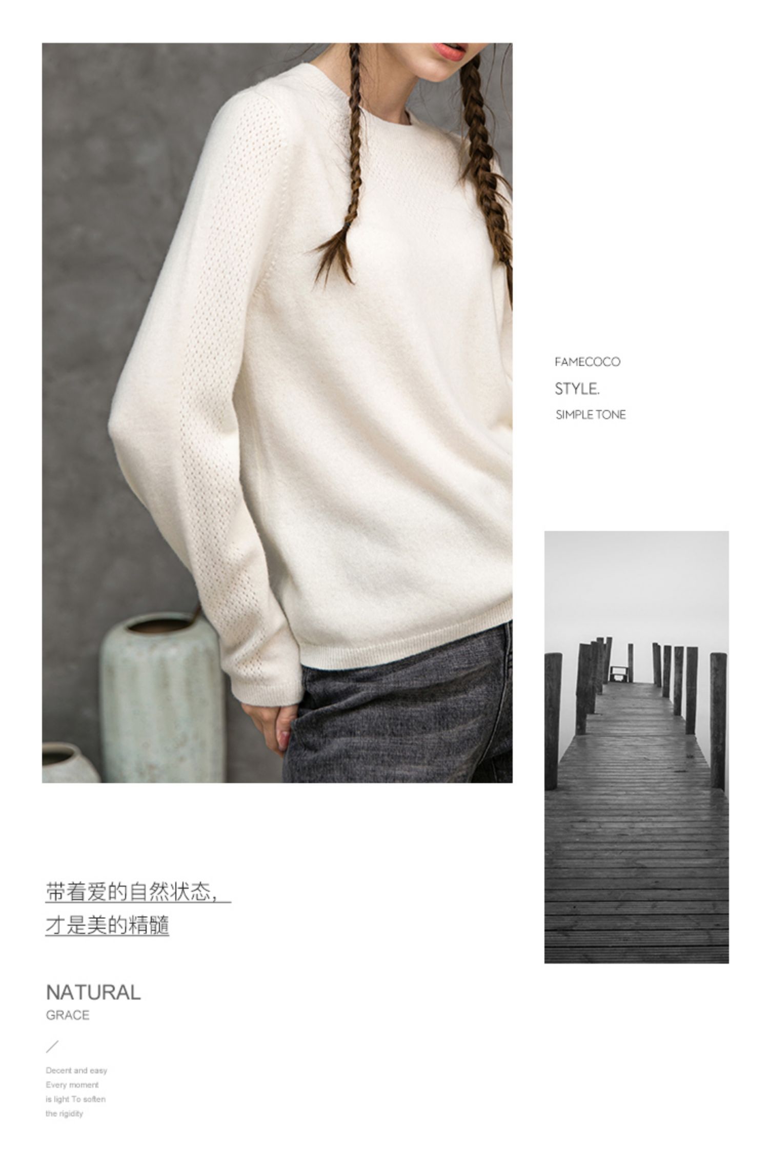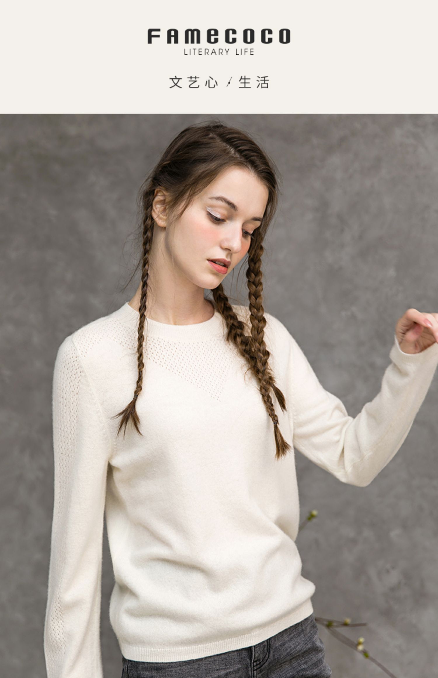 Famecoco范可儿长袖针织衫白色秋冬修身羊毛打底衫薄F218DB017