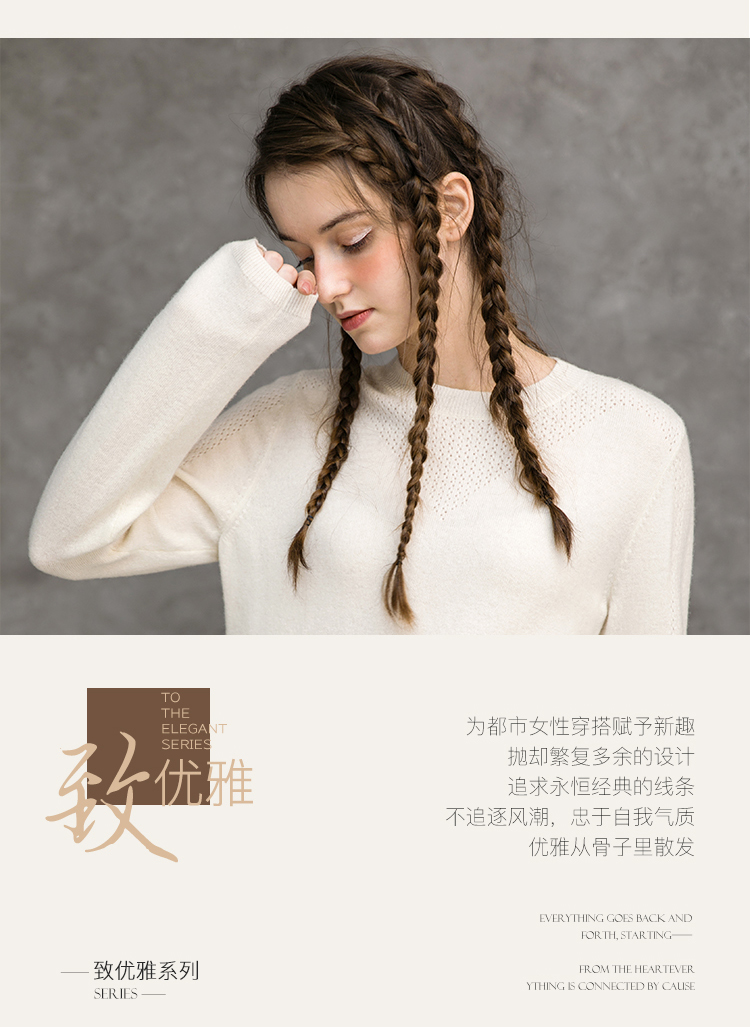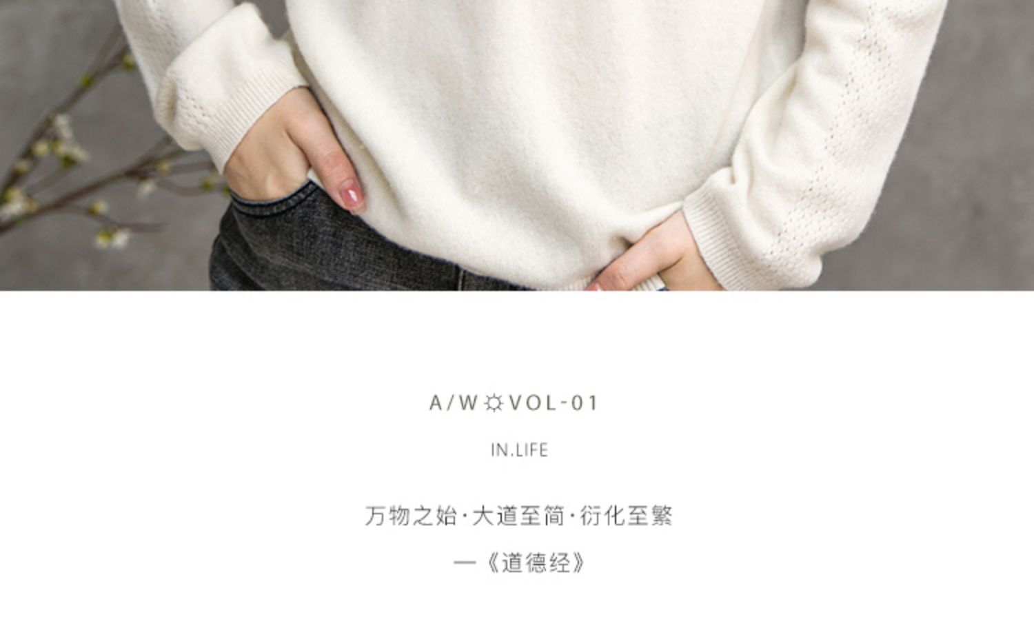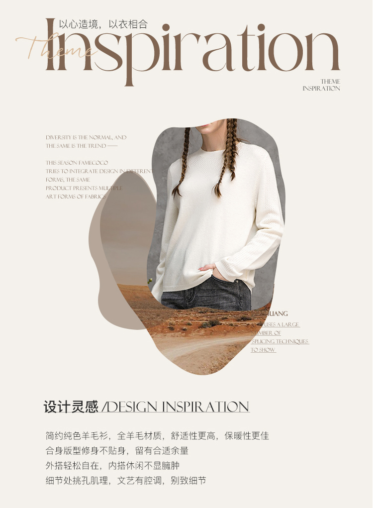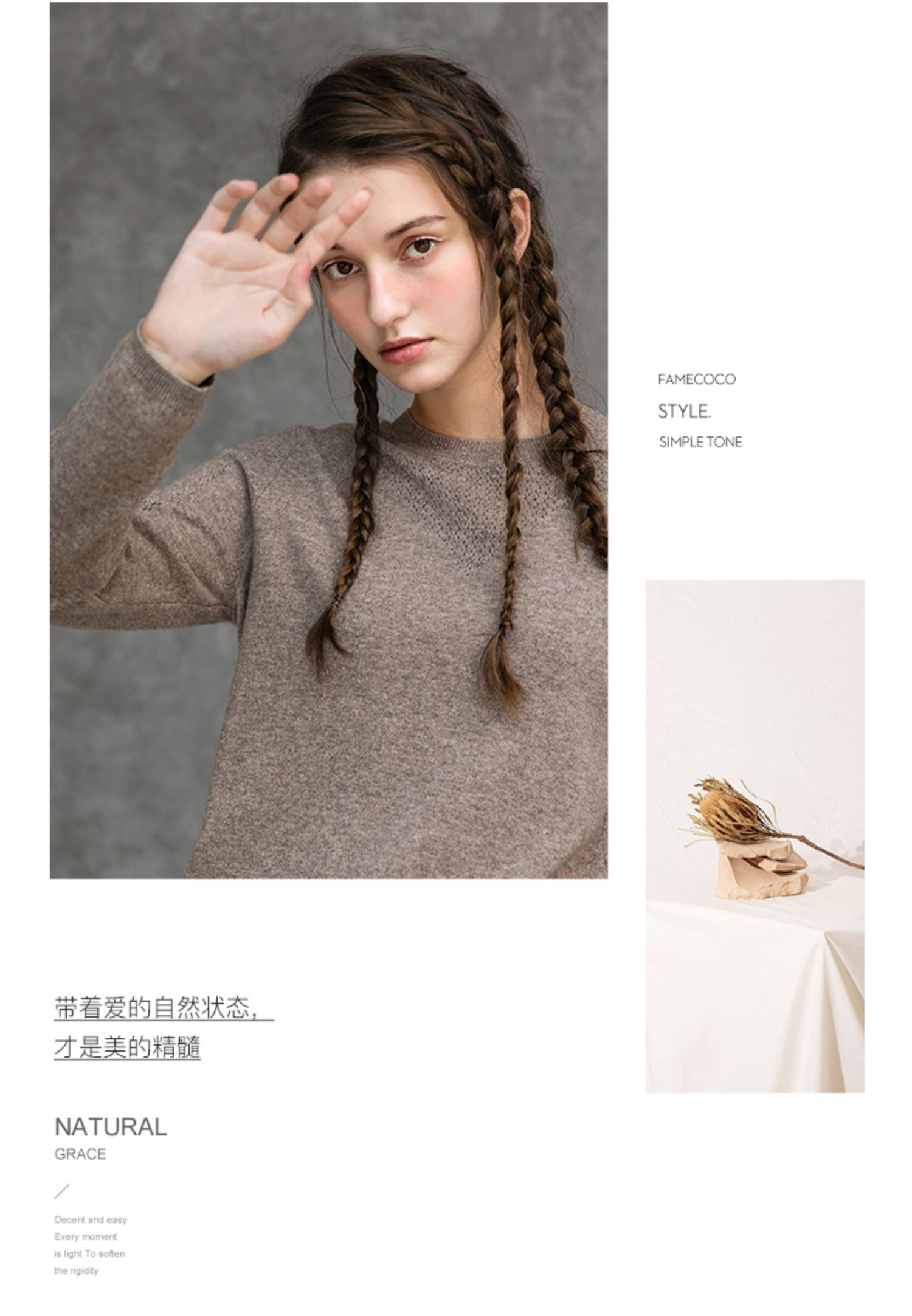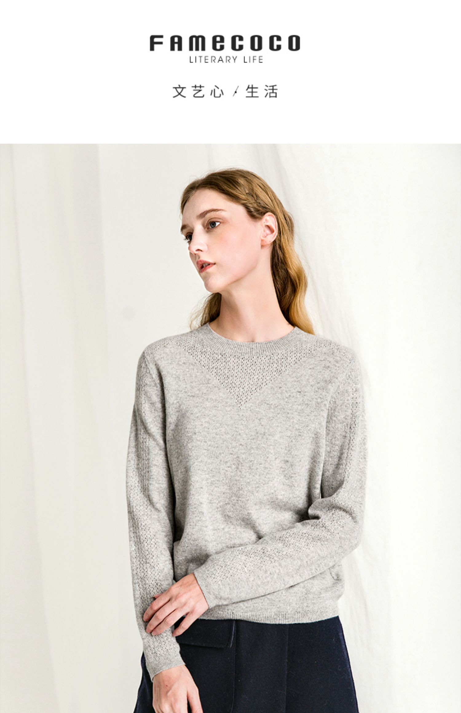 Famecoco范可儿长袖针织衫白色秋冬修身羊毛打底衫薄F218DB017