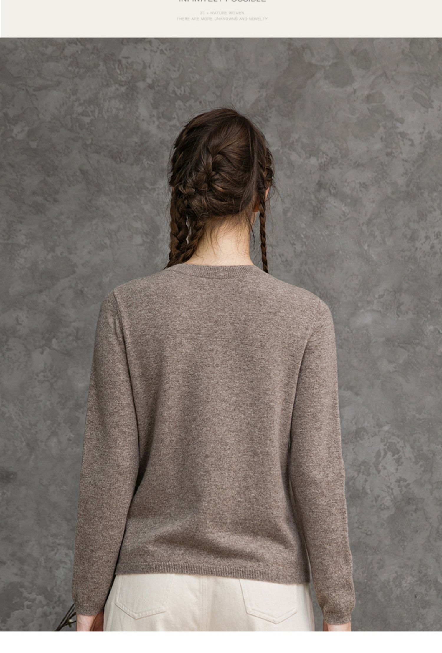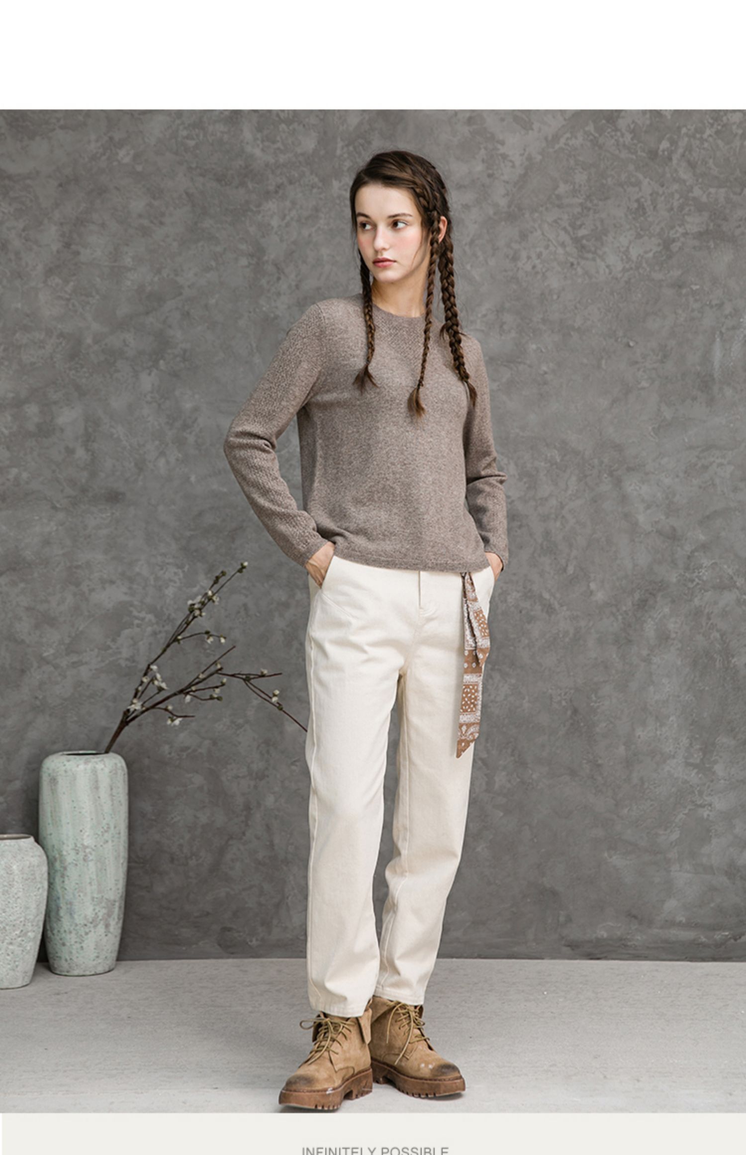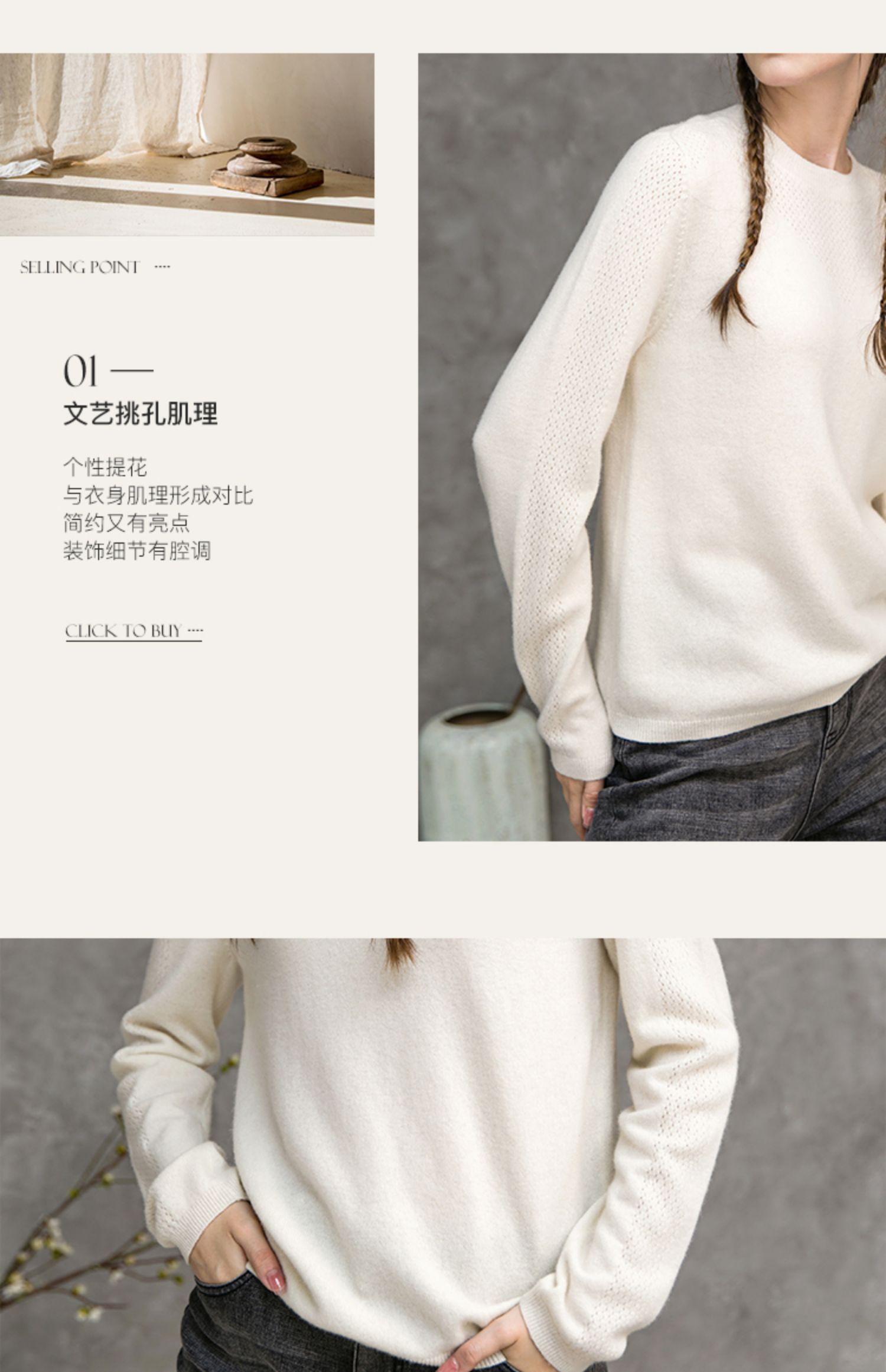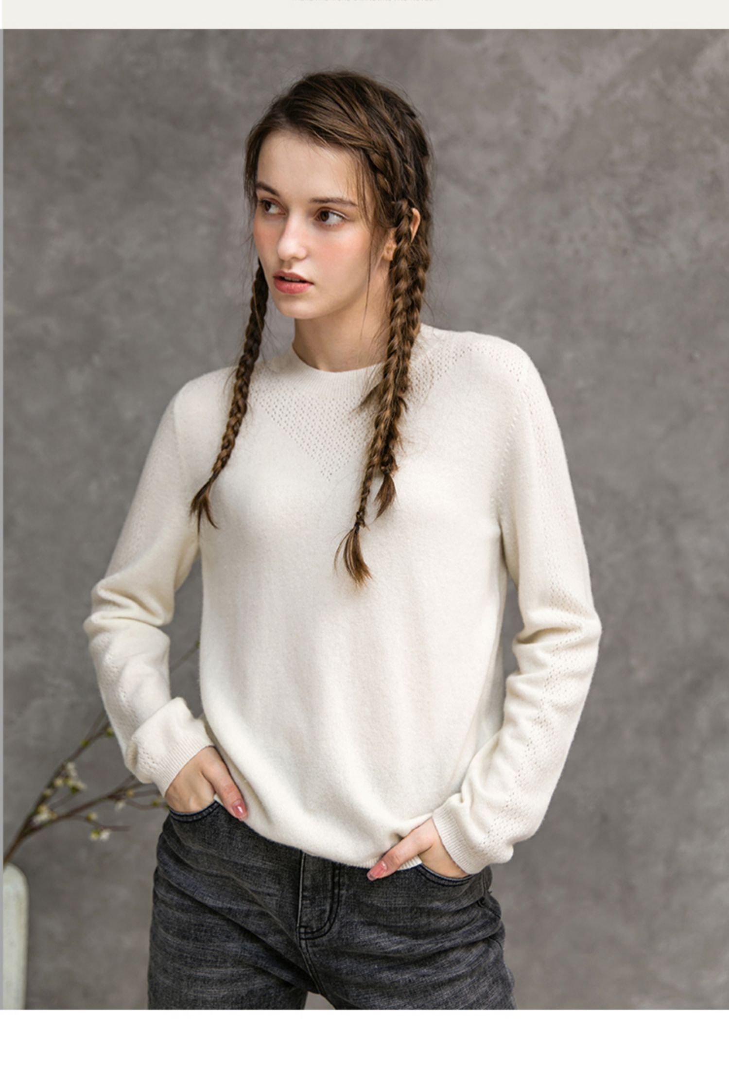 Famecoco范可儿长袖针织衫白色秋冬修身羊毛打底衫薄F218DB017