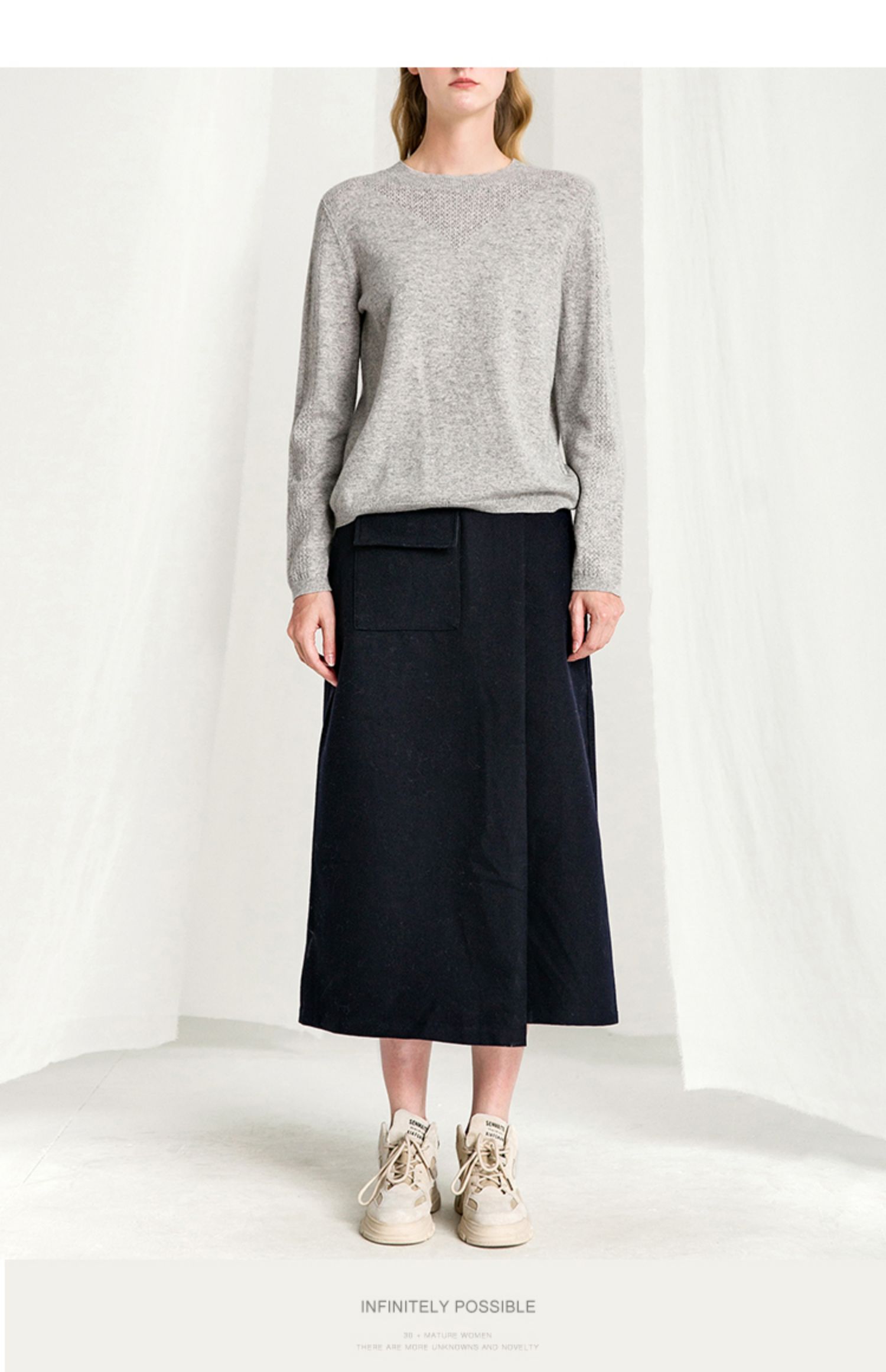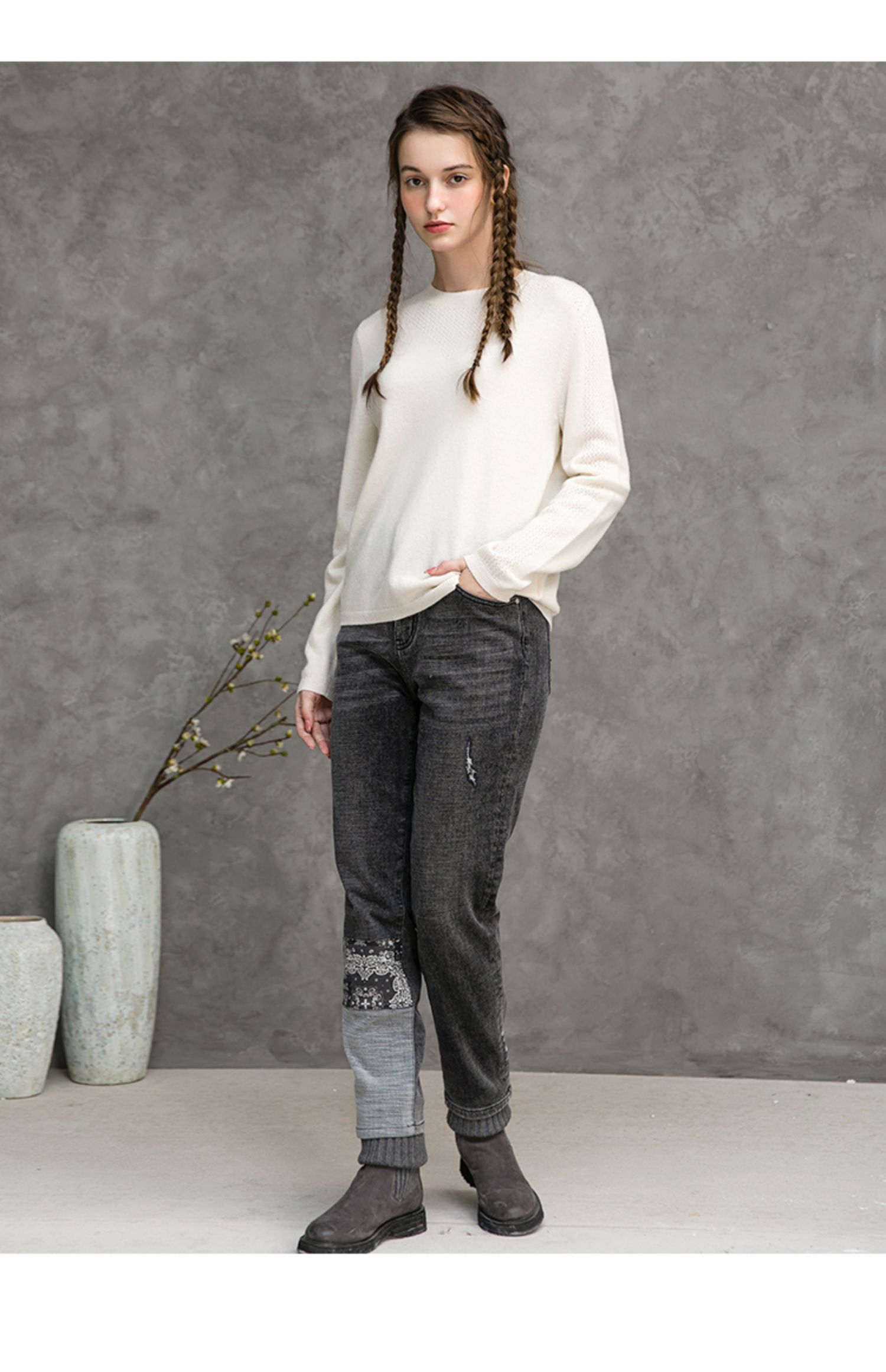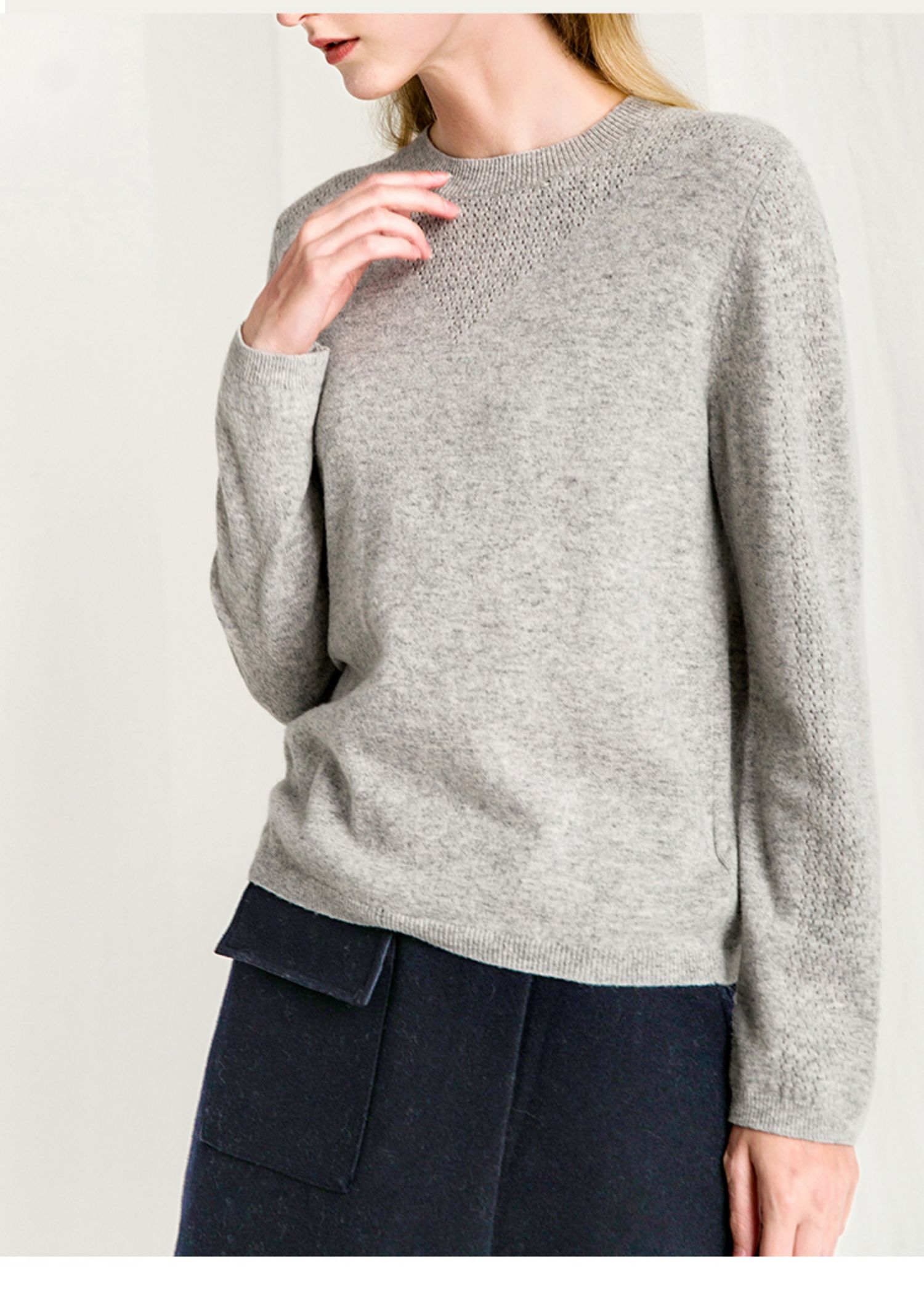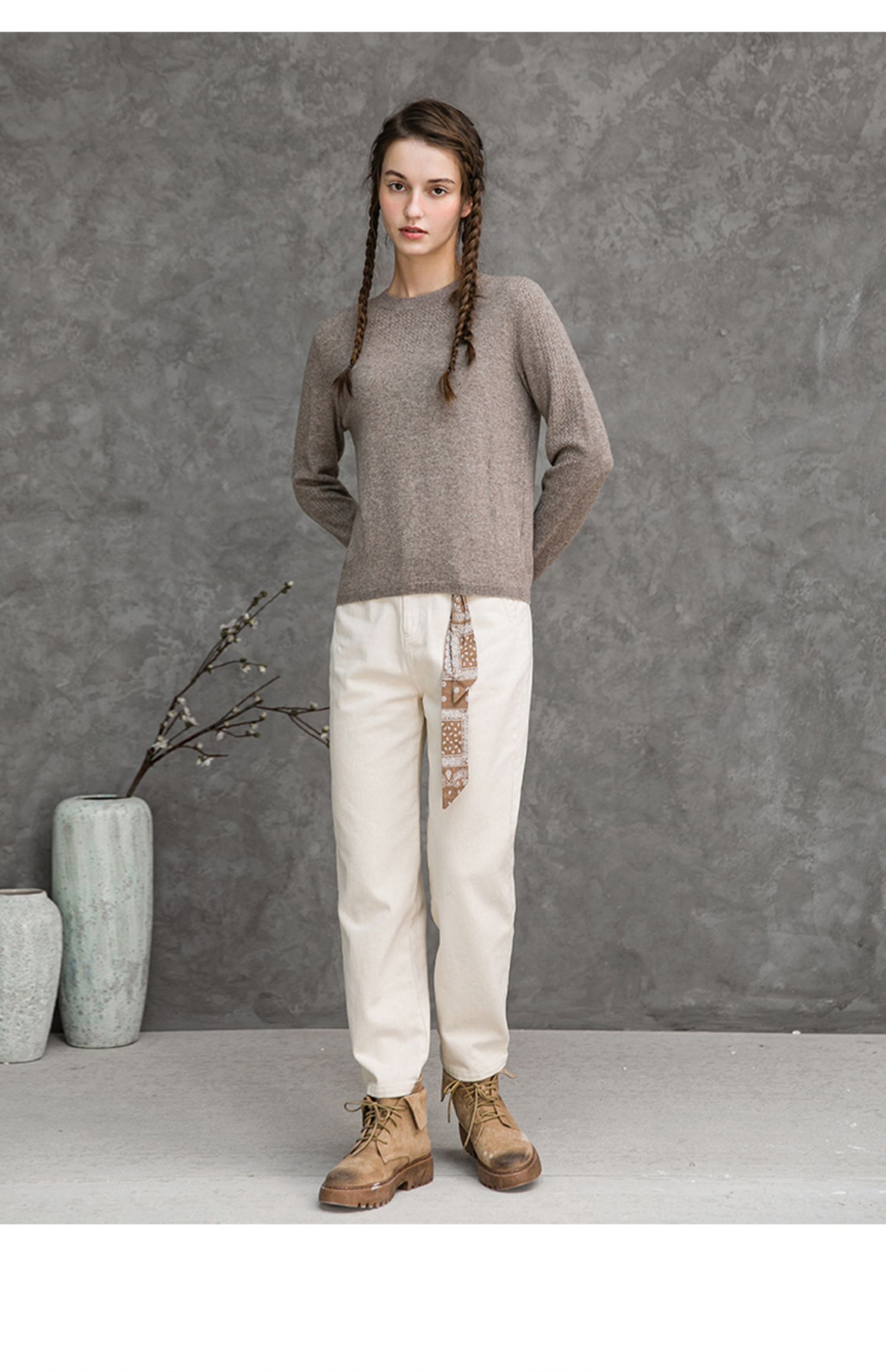 Famecoco范可儿长袖针织衫白色秋冬修身羊毛打底衫薄F218DB017