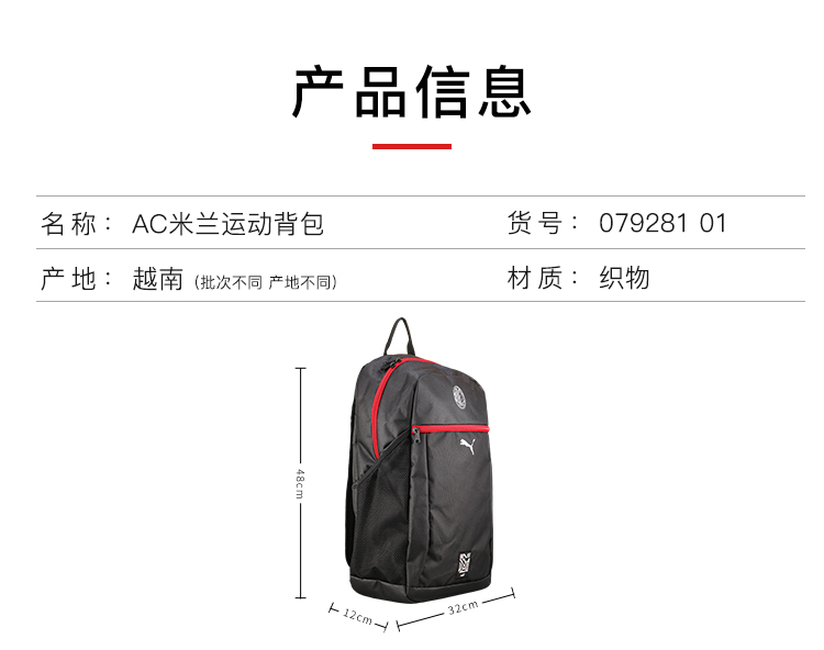 PUMA/彪马 ACM ftblCULTURE BackpackAC米兰双肩背包07928101
