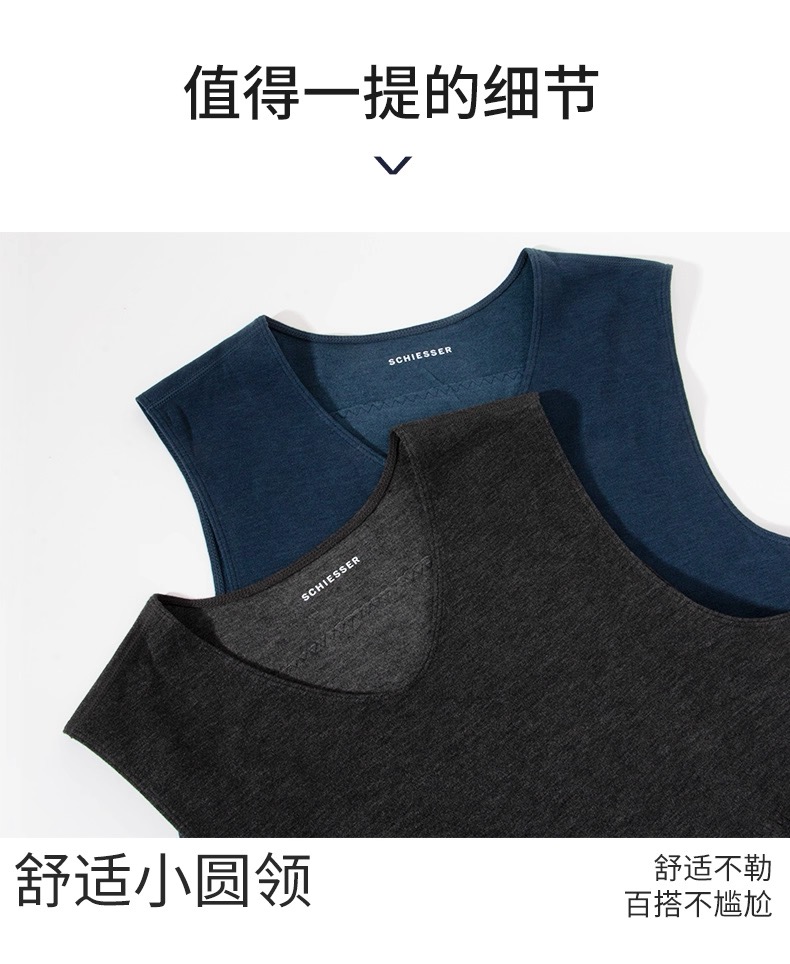 【蚕丝羊绒双面绒】SCHIESSER德国舒雅男士厚款双画磨毛男士前后双层含羊绒保暖背心35/23829V