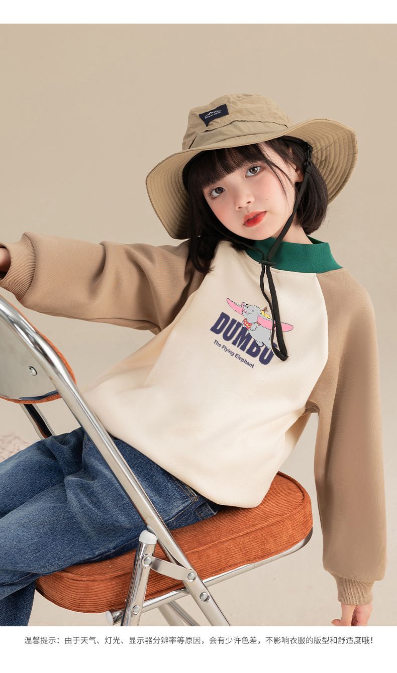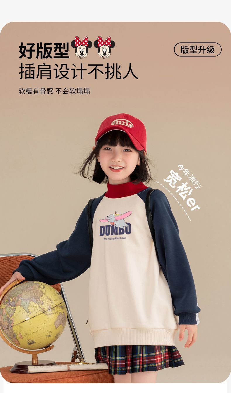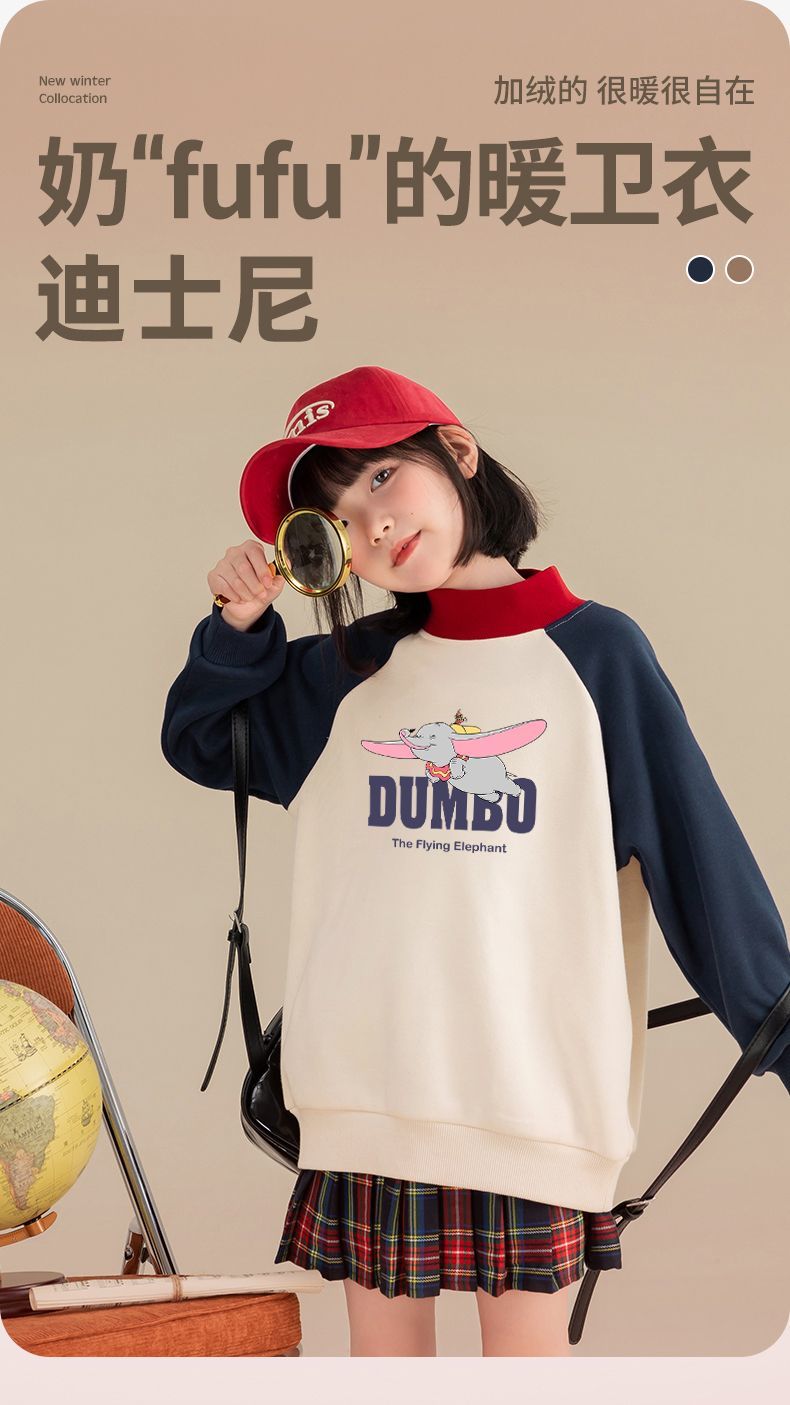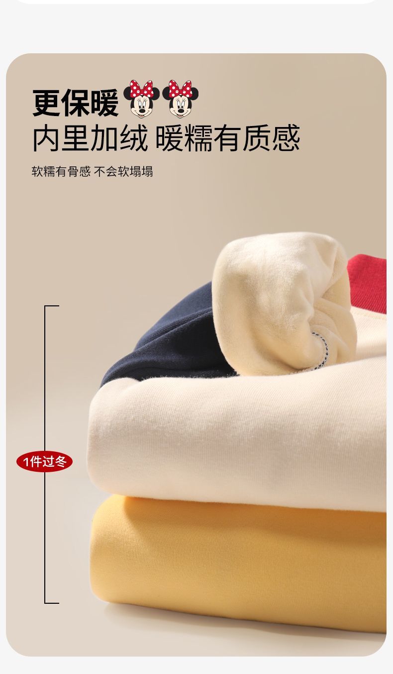 迪士尼女童加绒卫衣一体绒秋冬儿童保暖上衣女大童打底衫女孩衣服