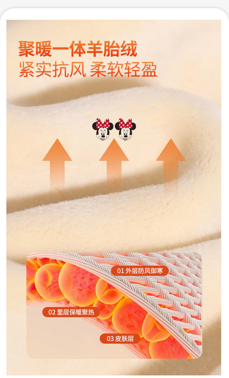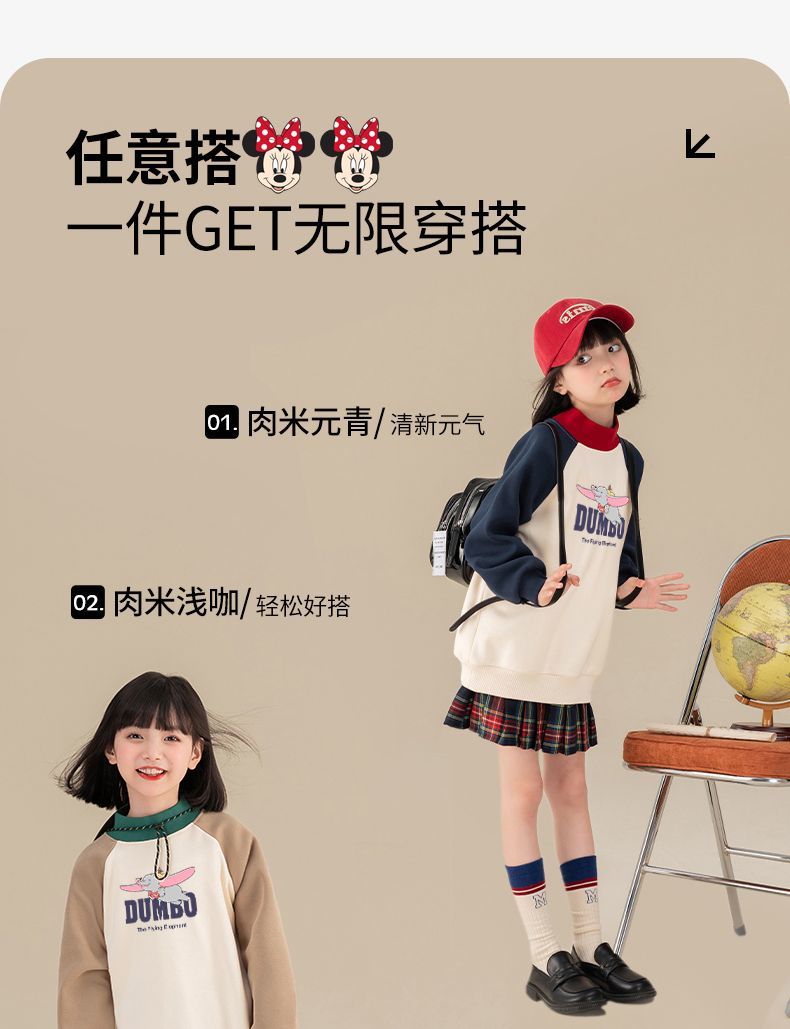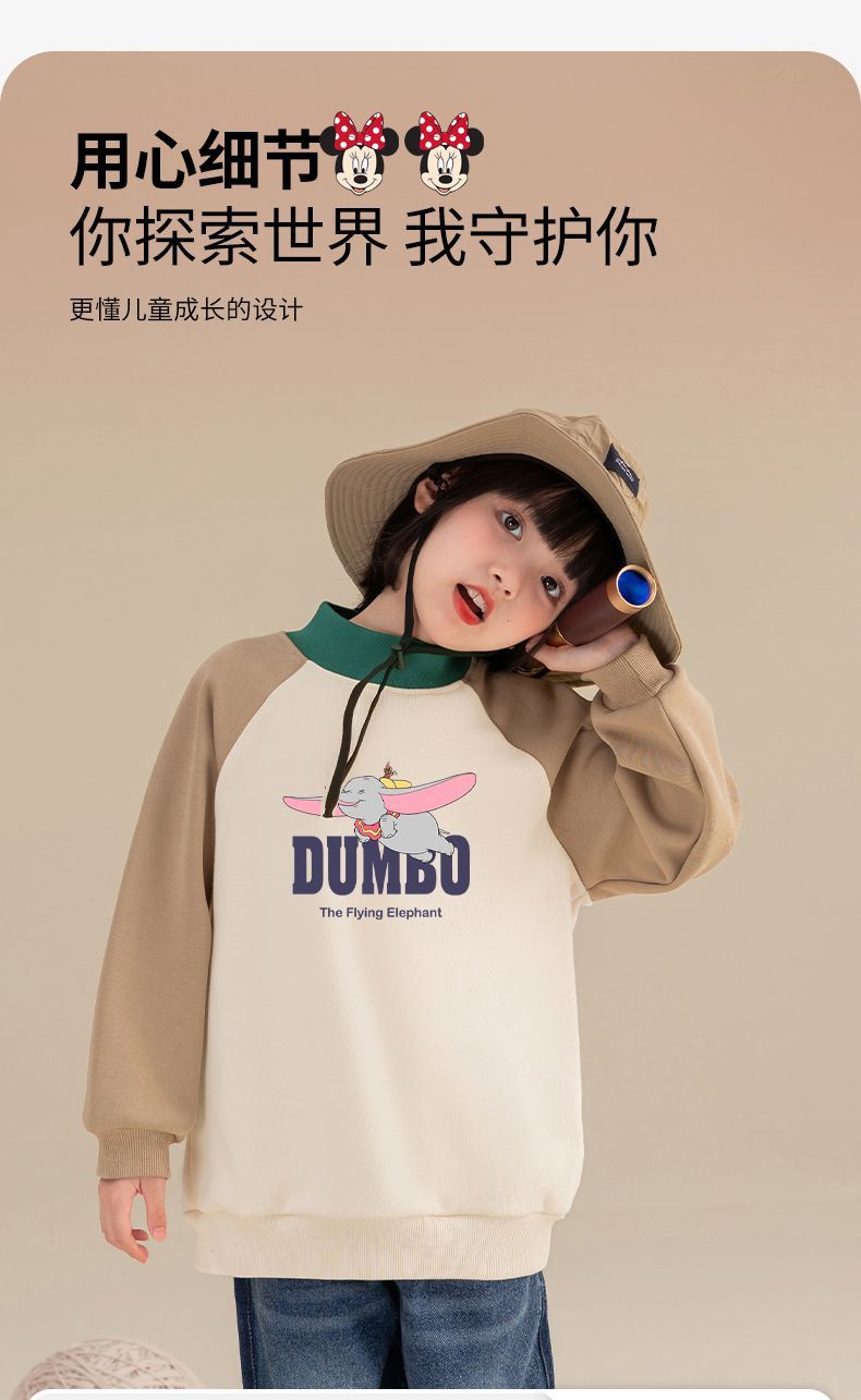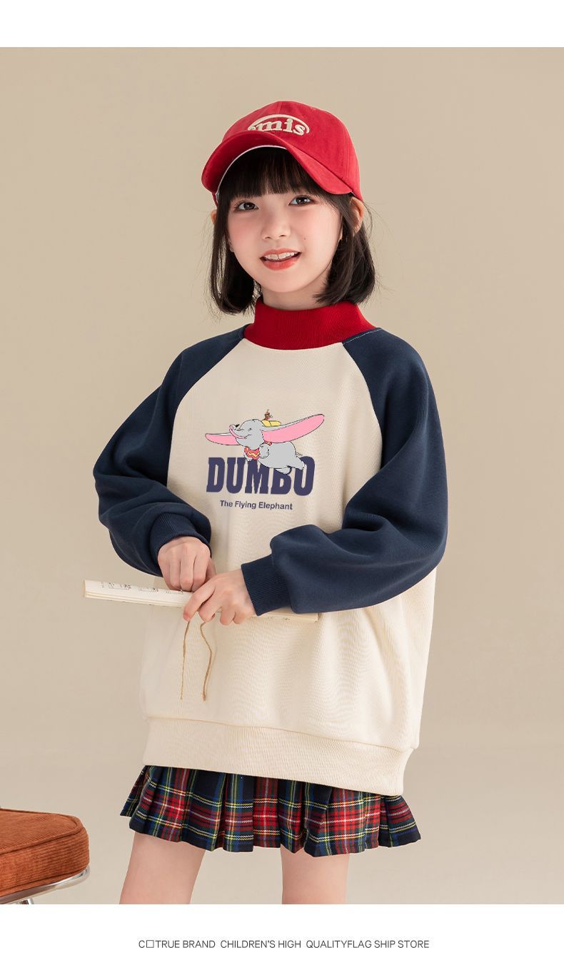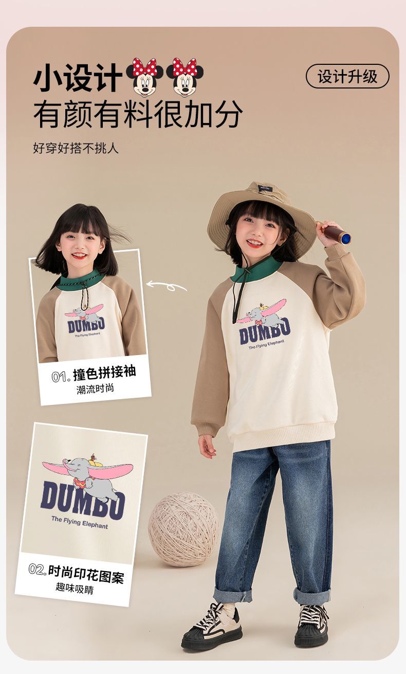 迪士尼女童加绒卫衣一体绒秋冬儿童保暖上衣女大童打底衫女孩衣服