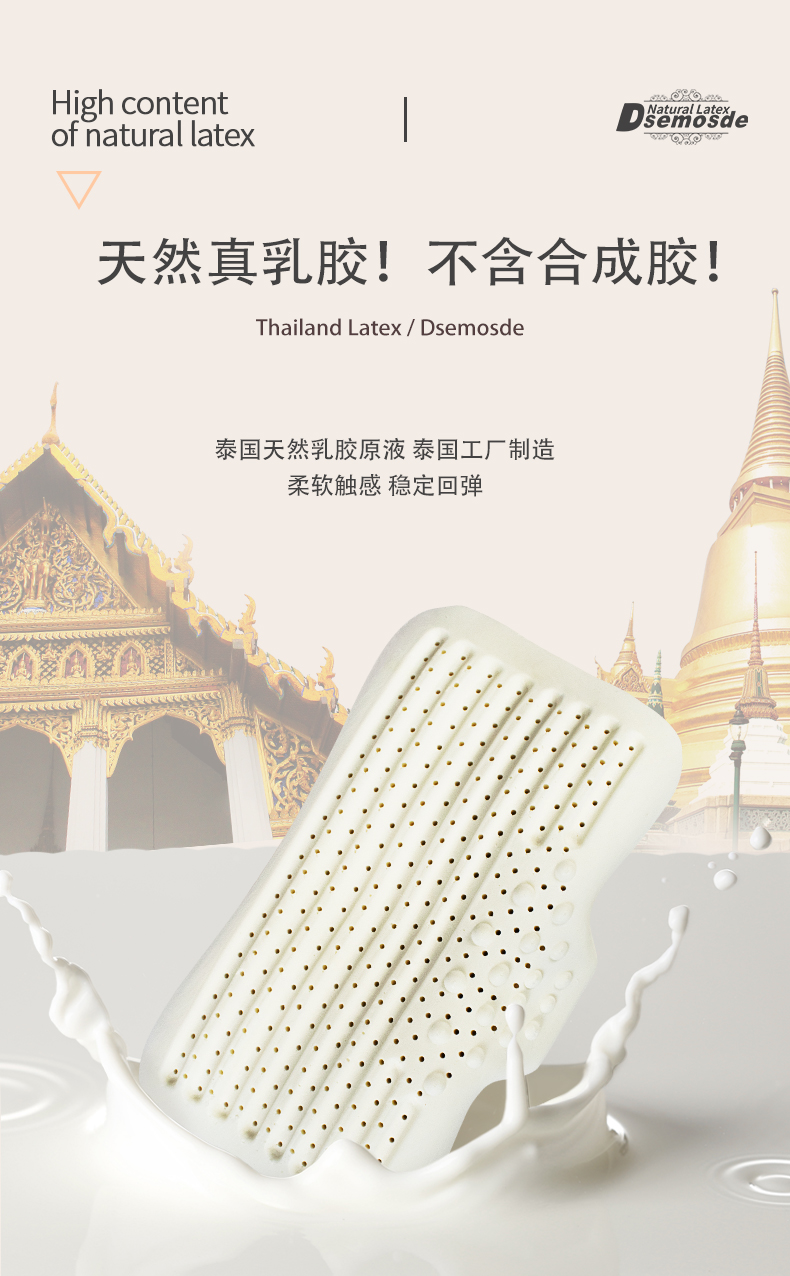 【泰国原装进口】Dsemosde泰国93%泰国天然乳胶枕 邓禄普工艺护颈释压枕