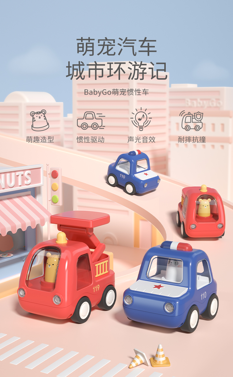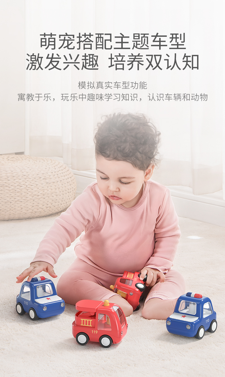 BABYGO儿童玩具车惯性车男孩女孩1-3岁警车消防车小汽车玩具套装