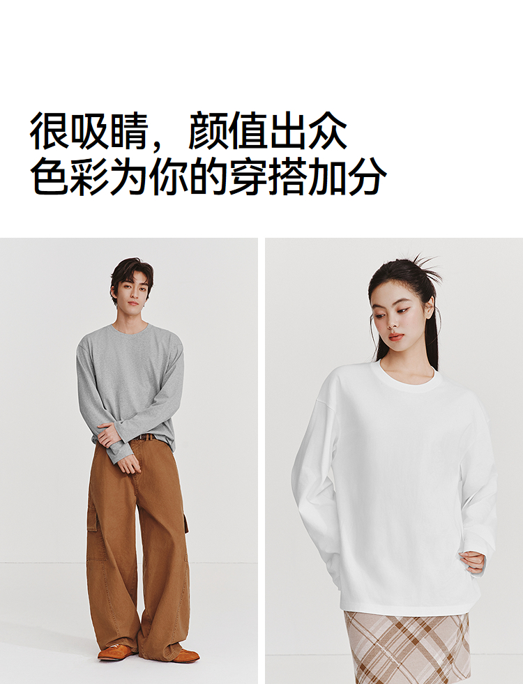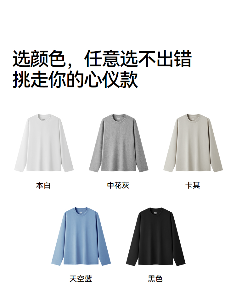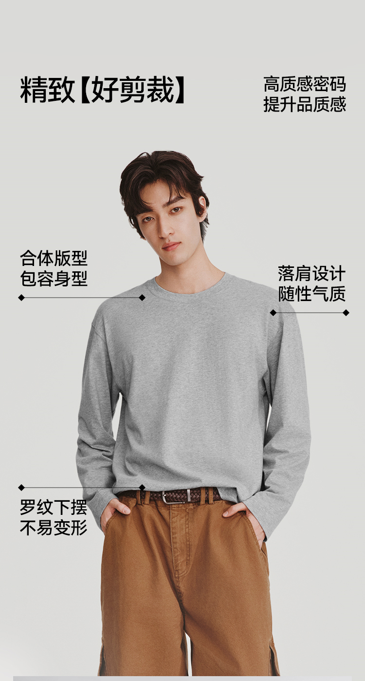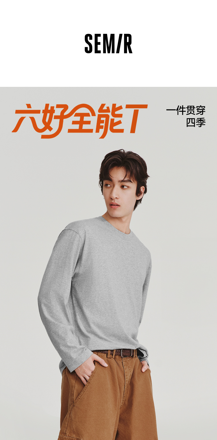 【爆品主推】森马长袖T恤男纯棉打底衫纯色基础内搭情侣2026春新款上衣合体型
