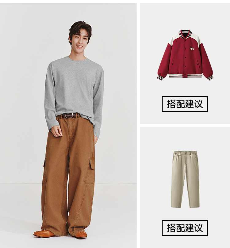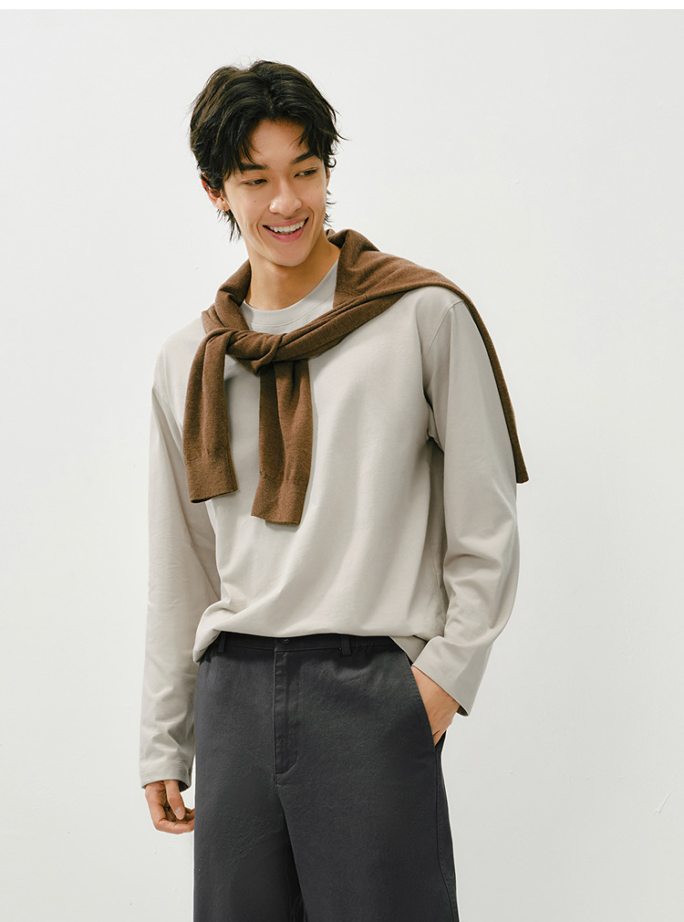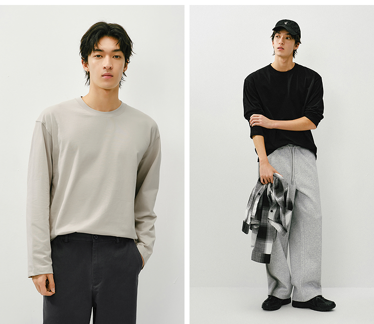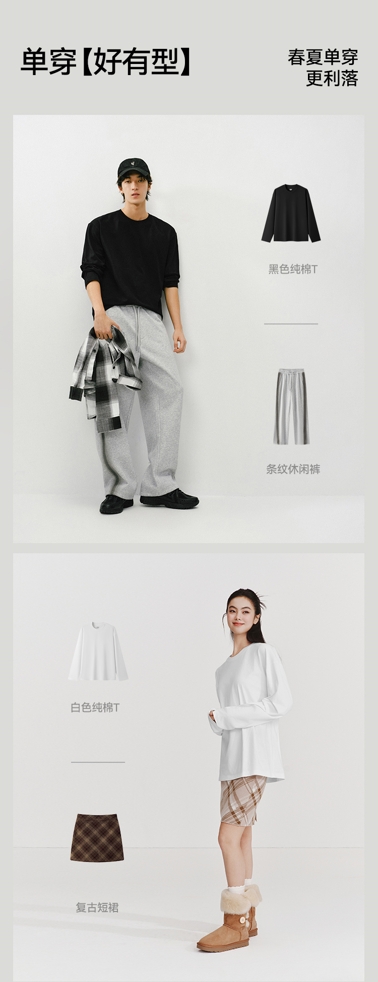 【爆品主推】森马长袖T恤男纯棉打底衫纯色基础内搭情侣2026春新款上衣合体型