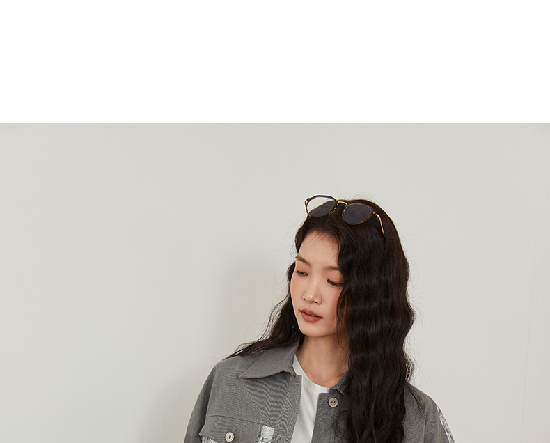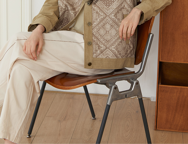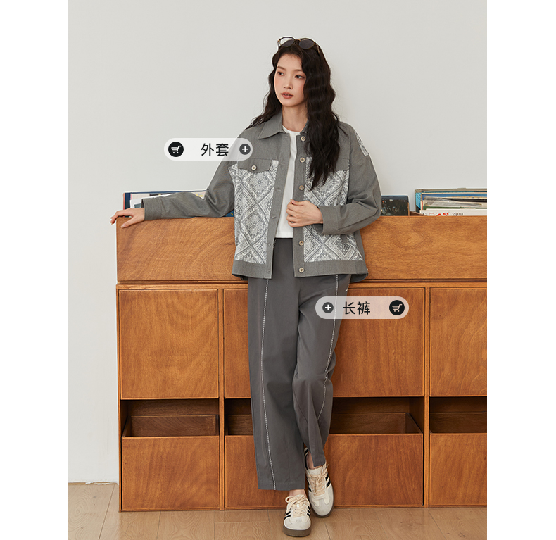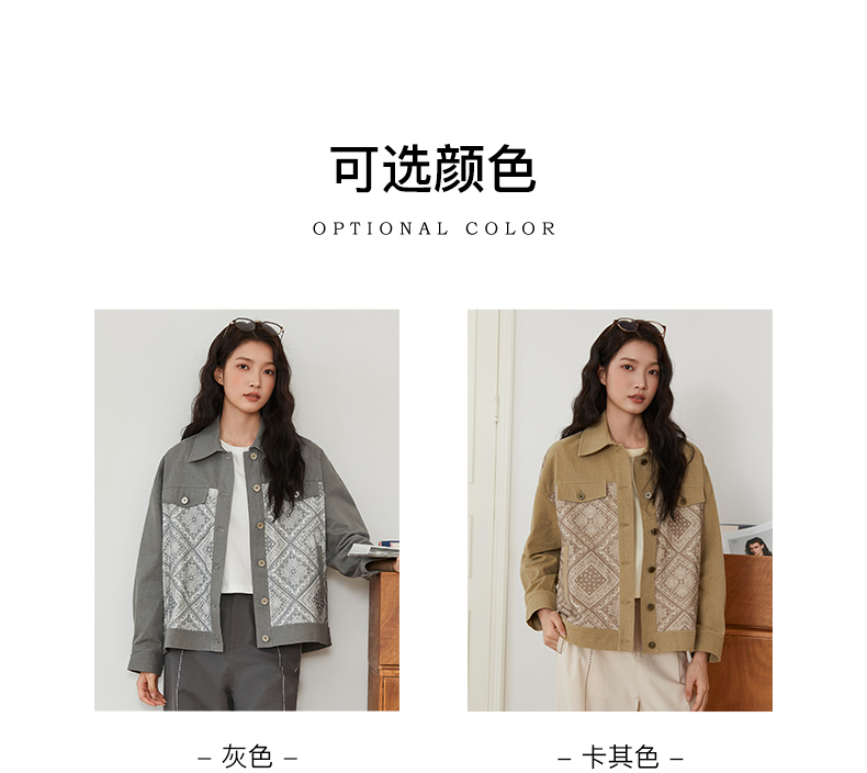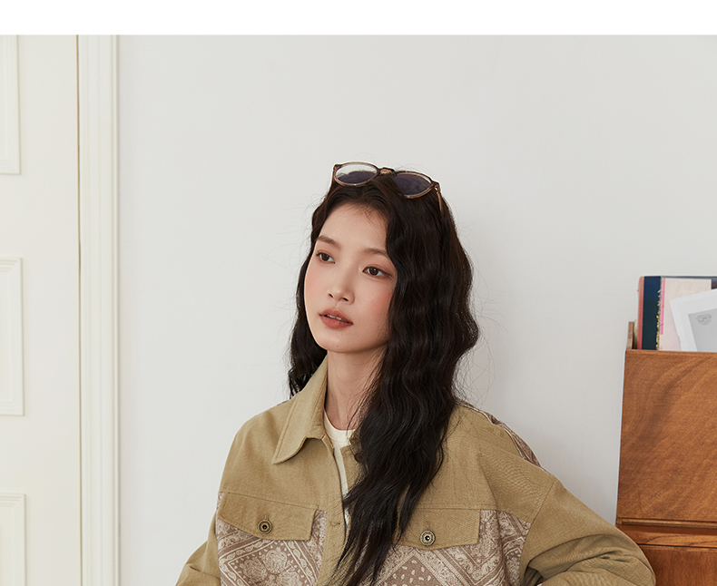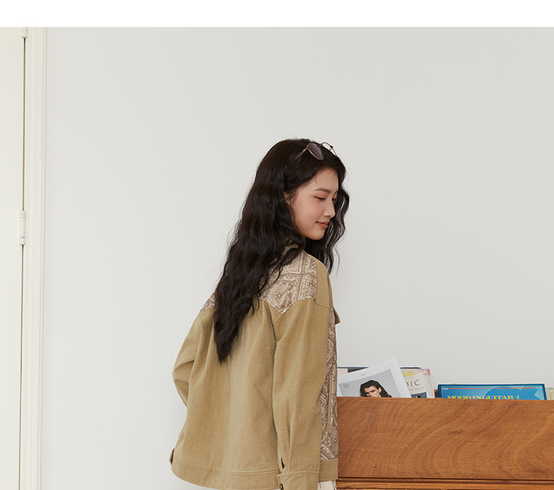 Famecoco范可儿上衣外套纯棉长款拼接时尚碎印花翻领女FAB6AB002