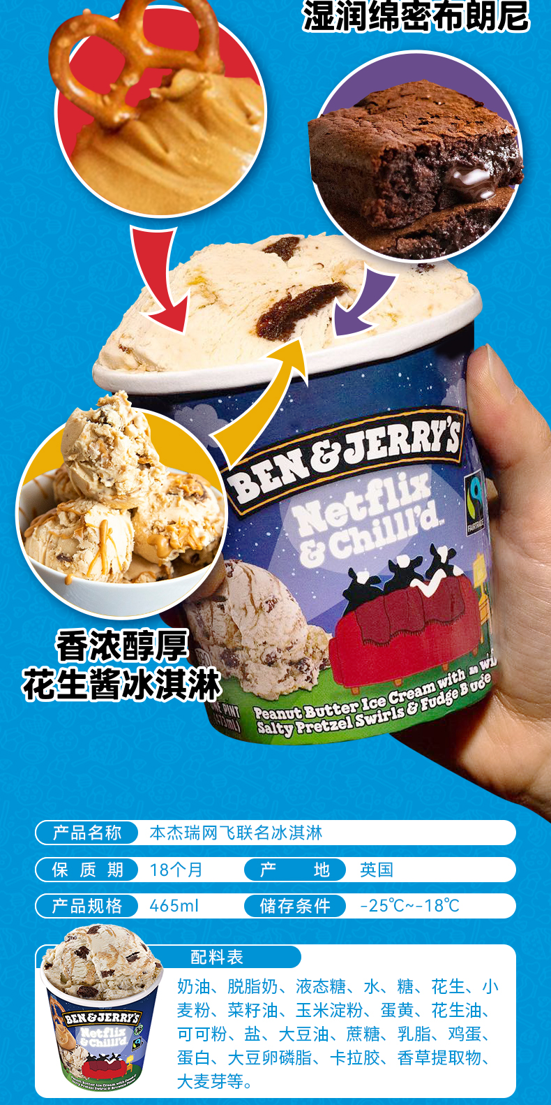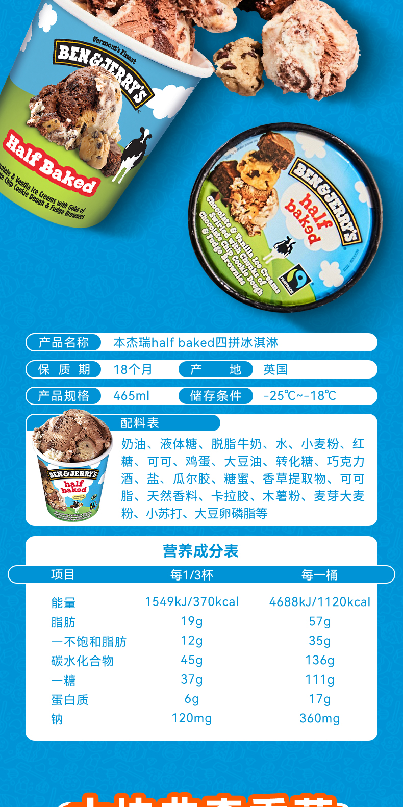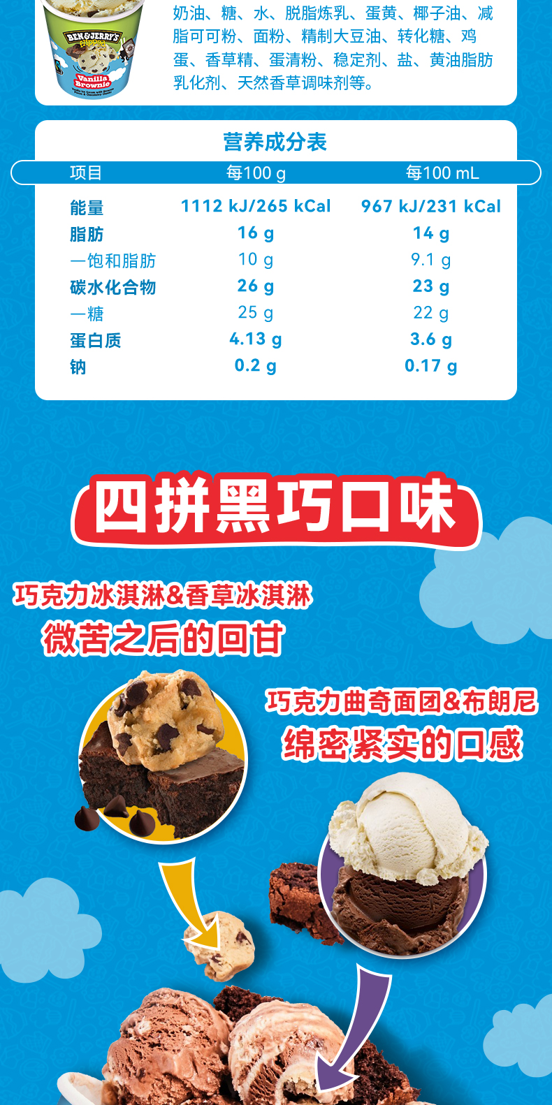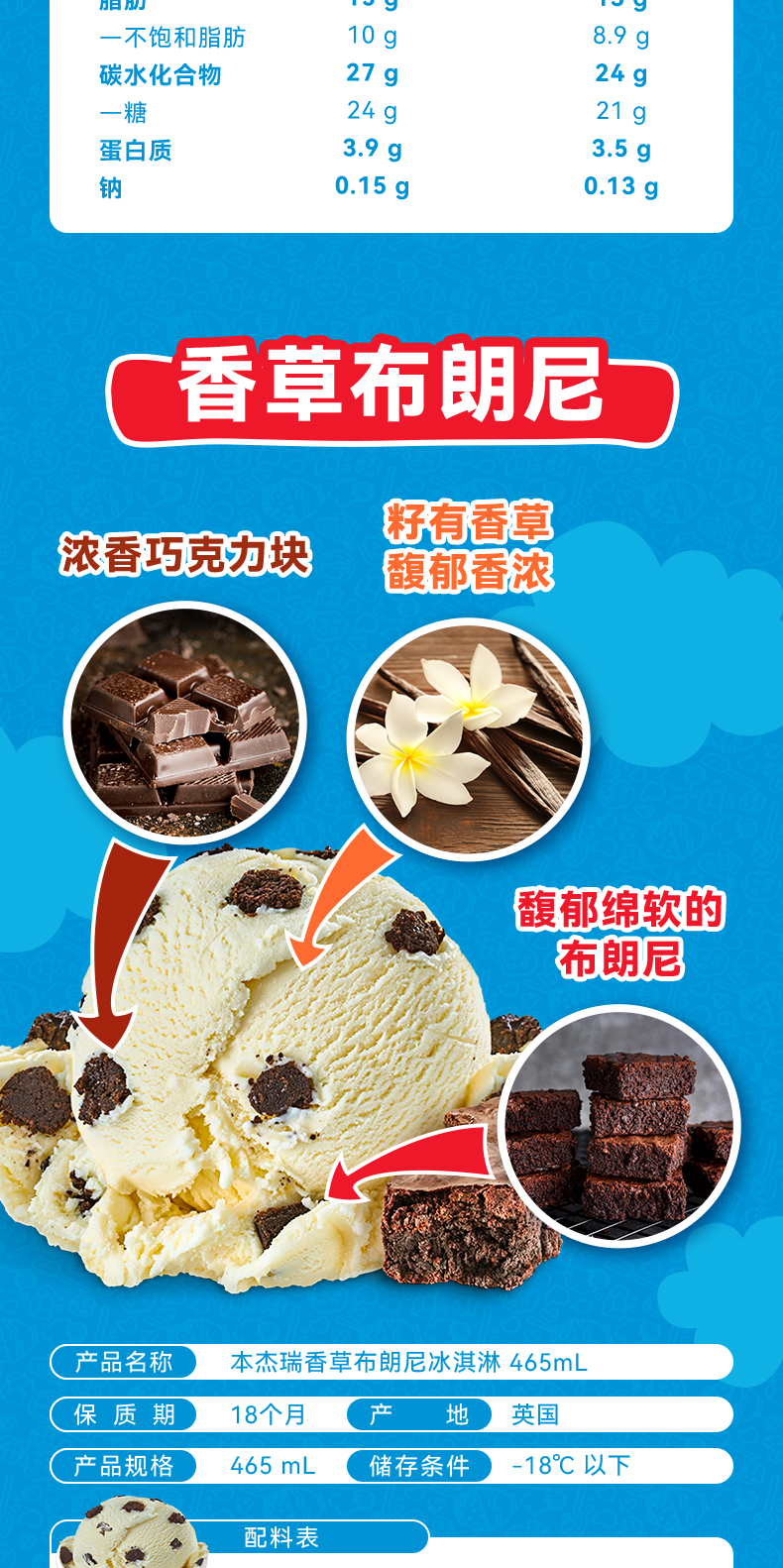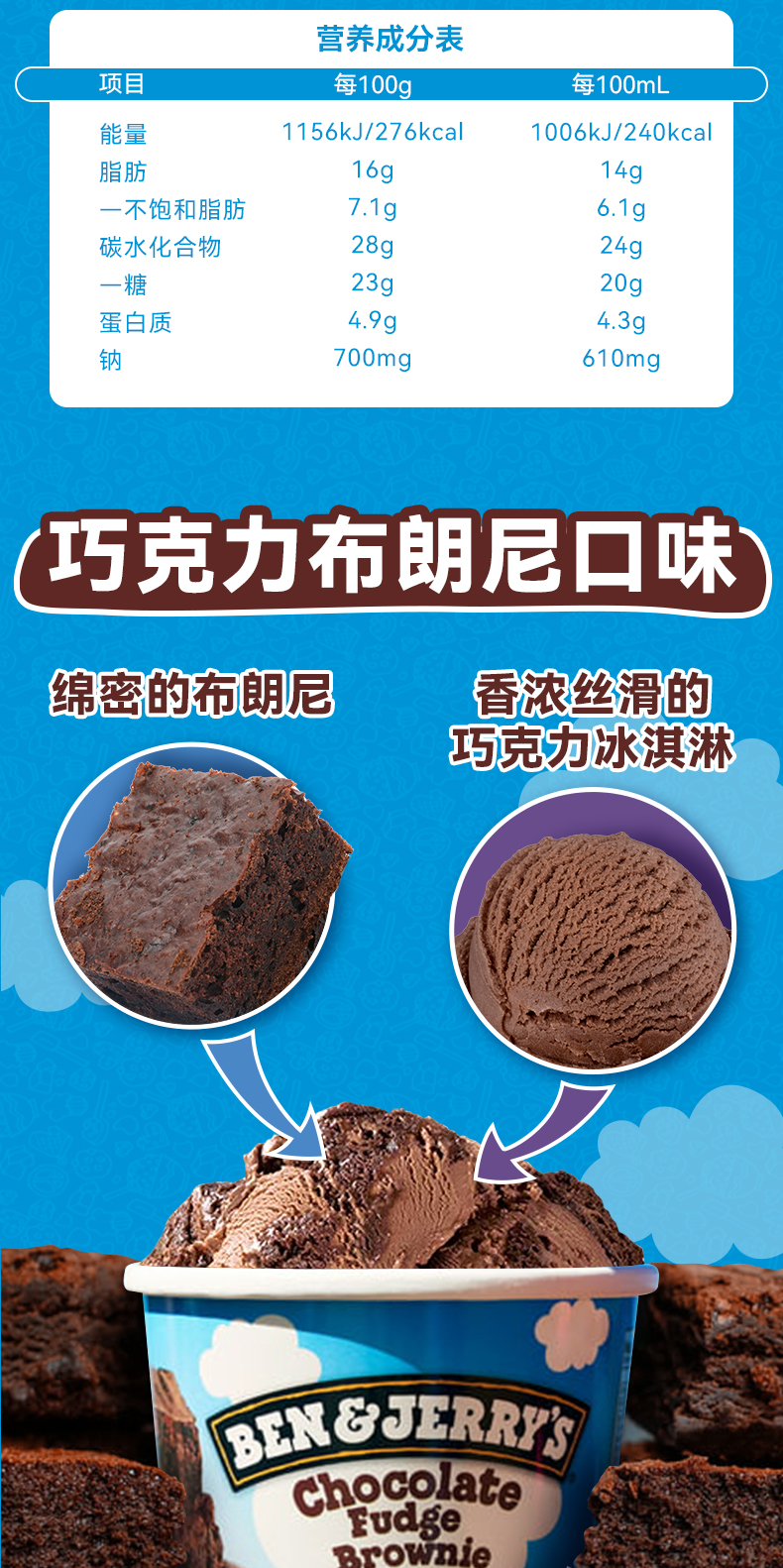 Ben&Jerry's本杰瑞巧克力布朗尼冰淇淋465mL进口香草焦糖桶装雪糕