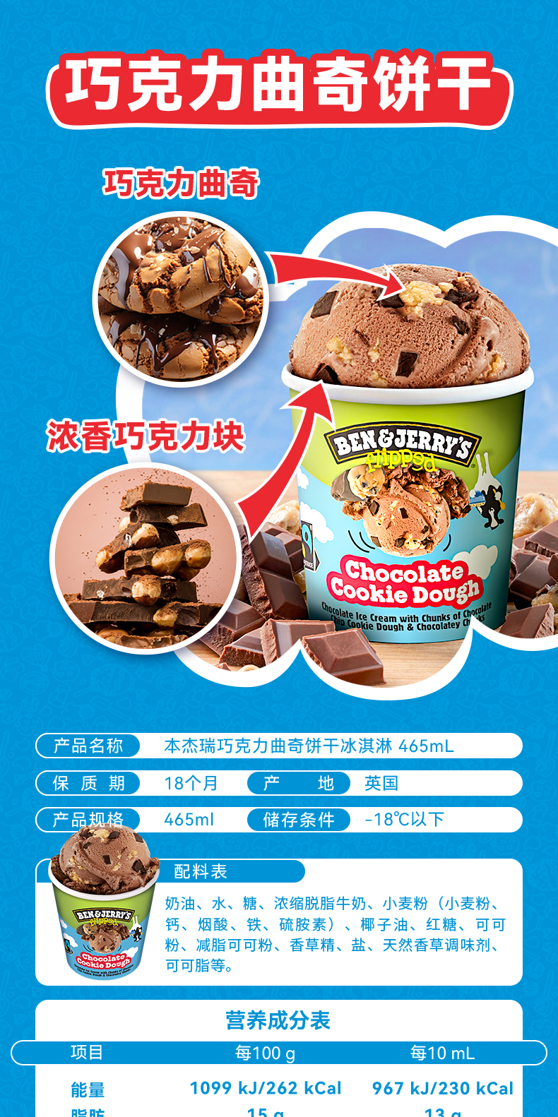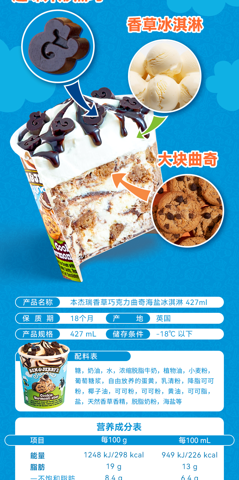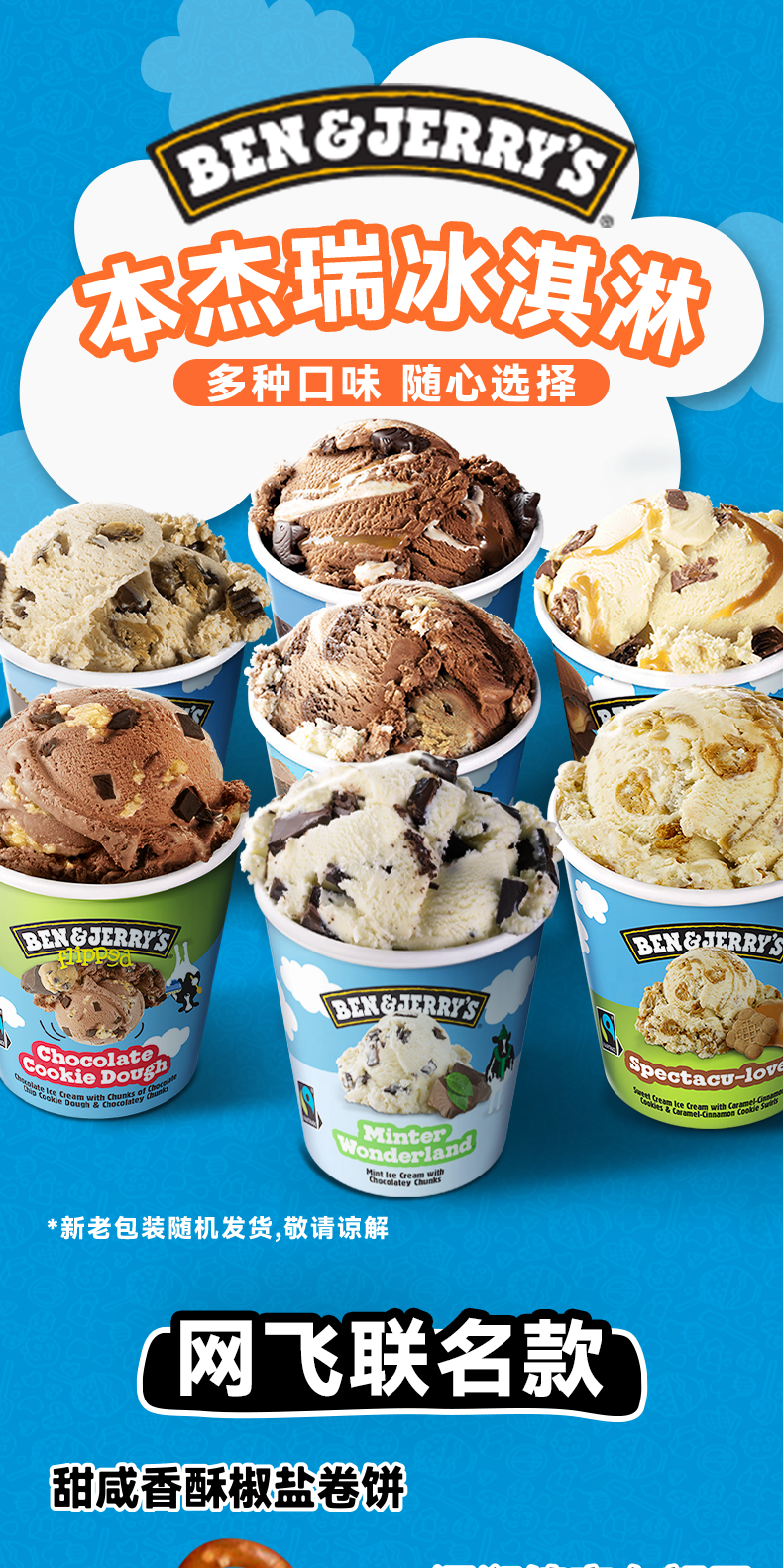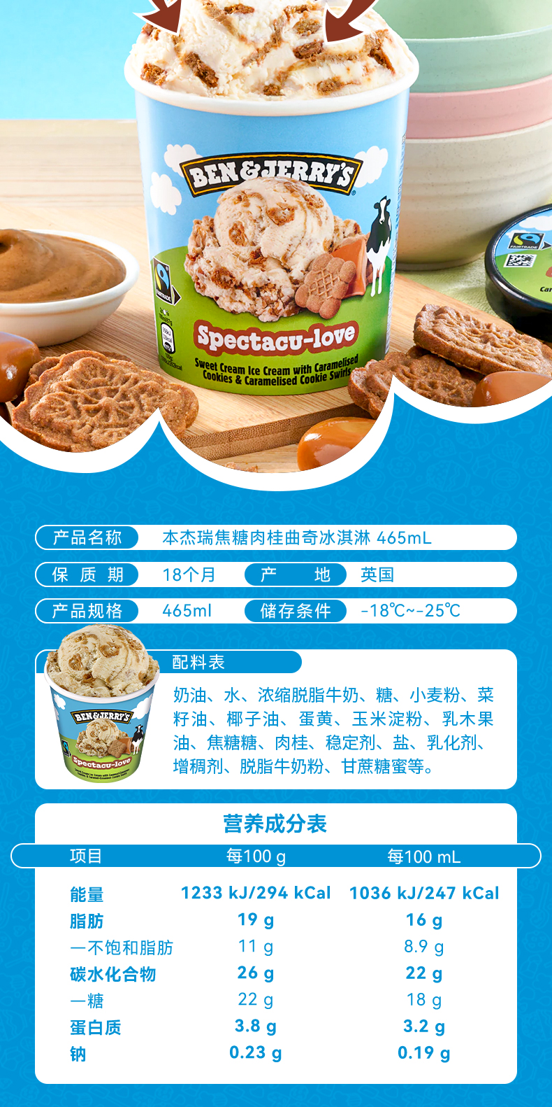 Ben&Jerry's本杰瑞巧克力布朗尼冰淇淋465mL进口香草焦糖桶装雪糕