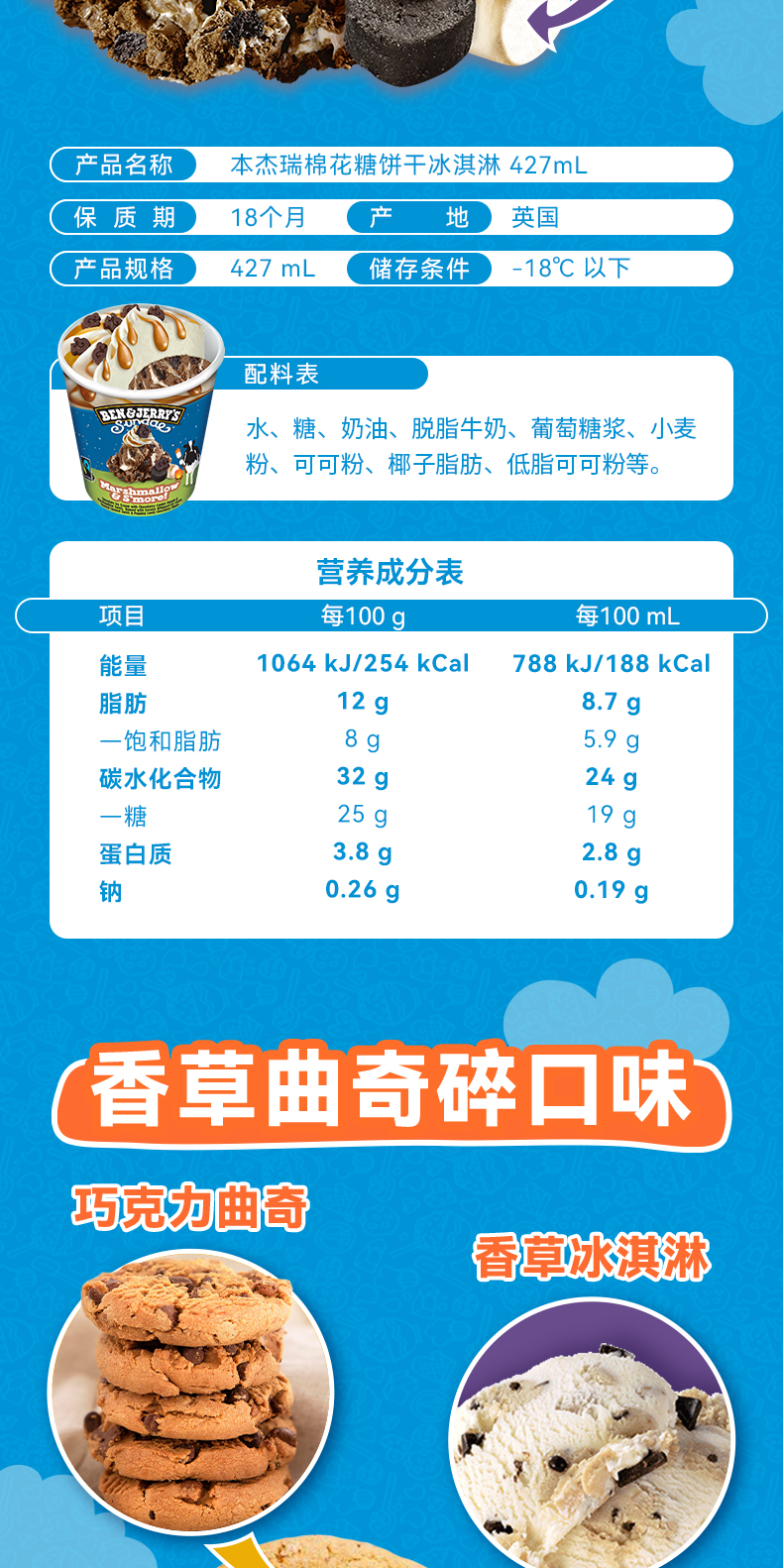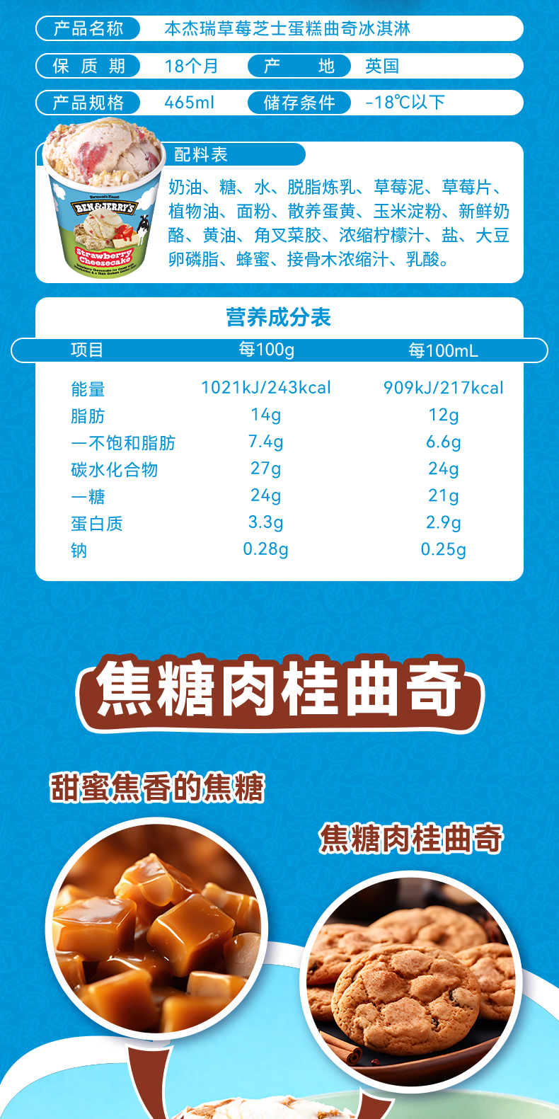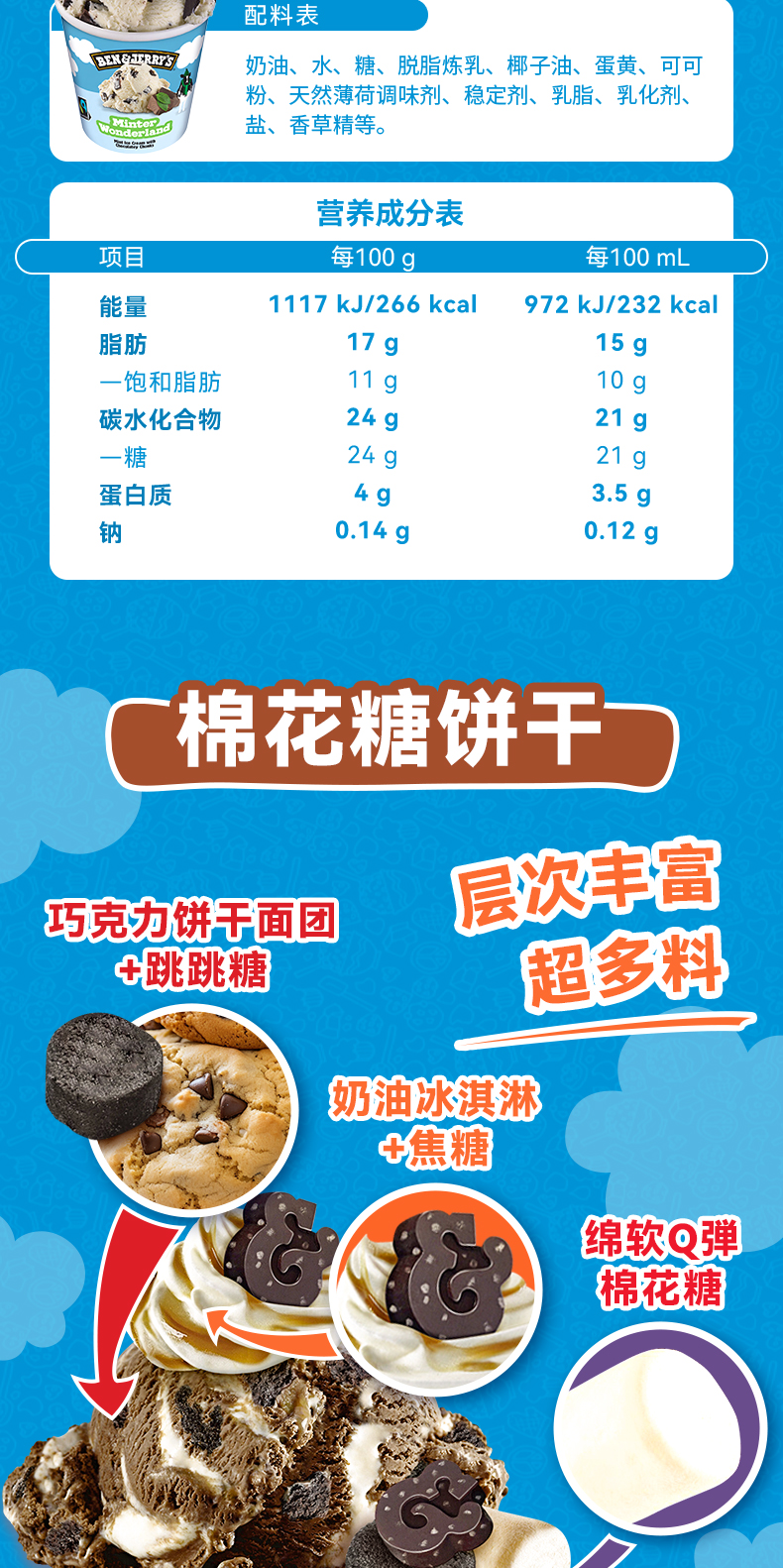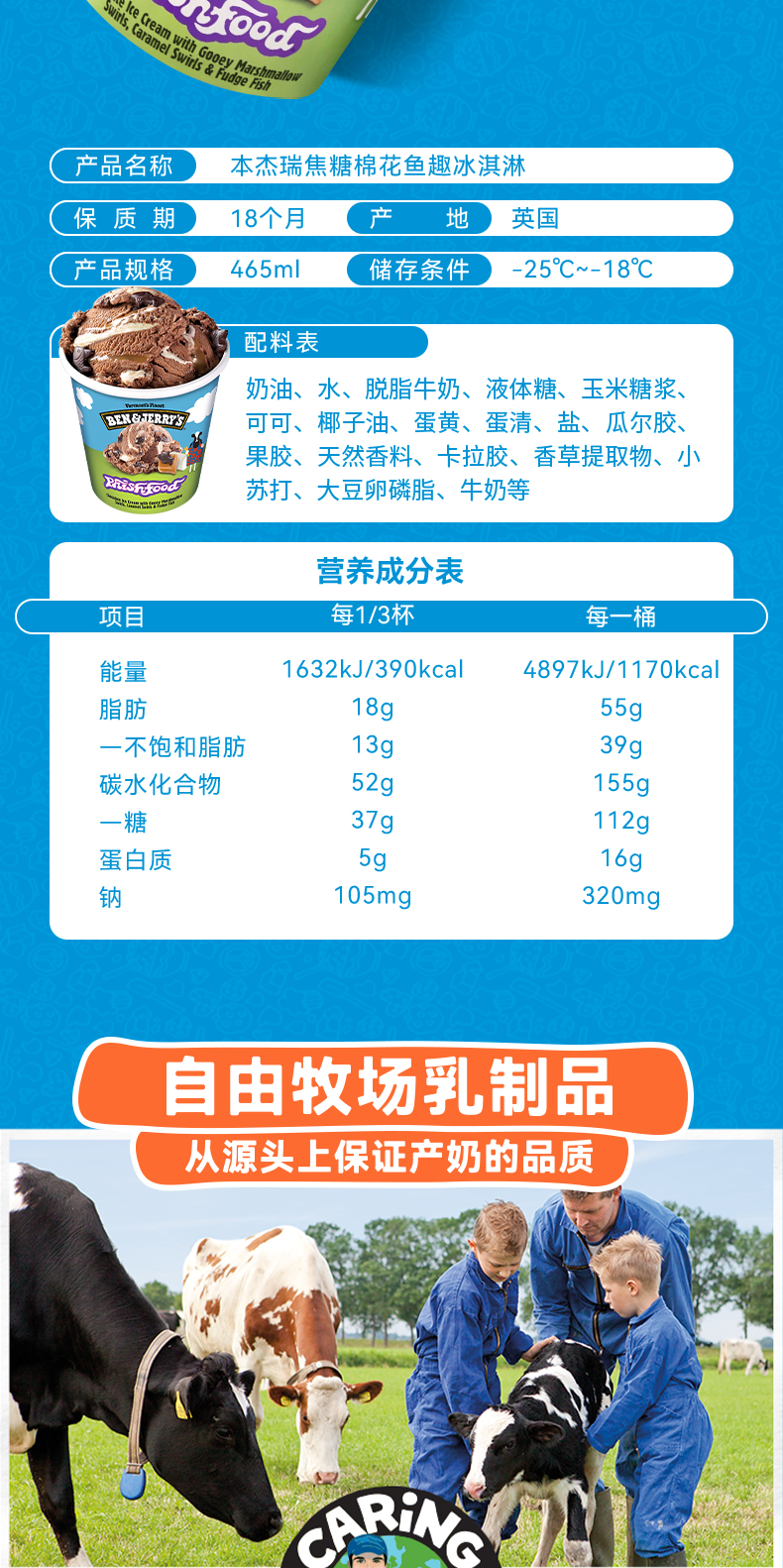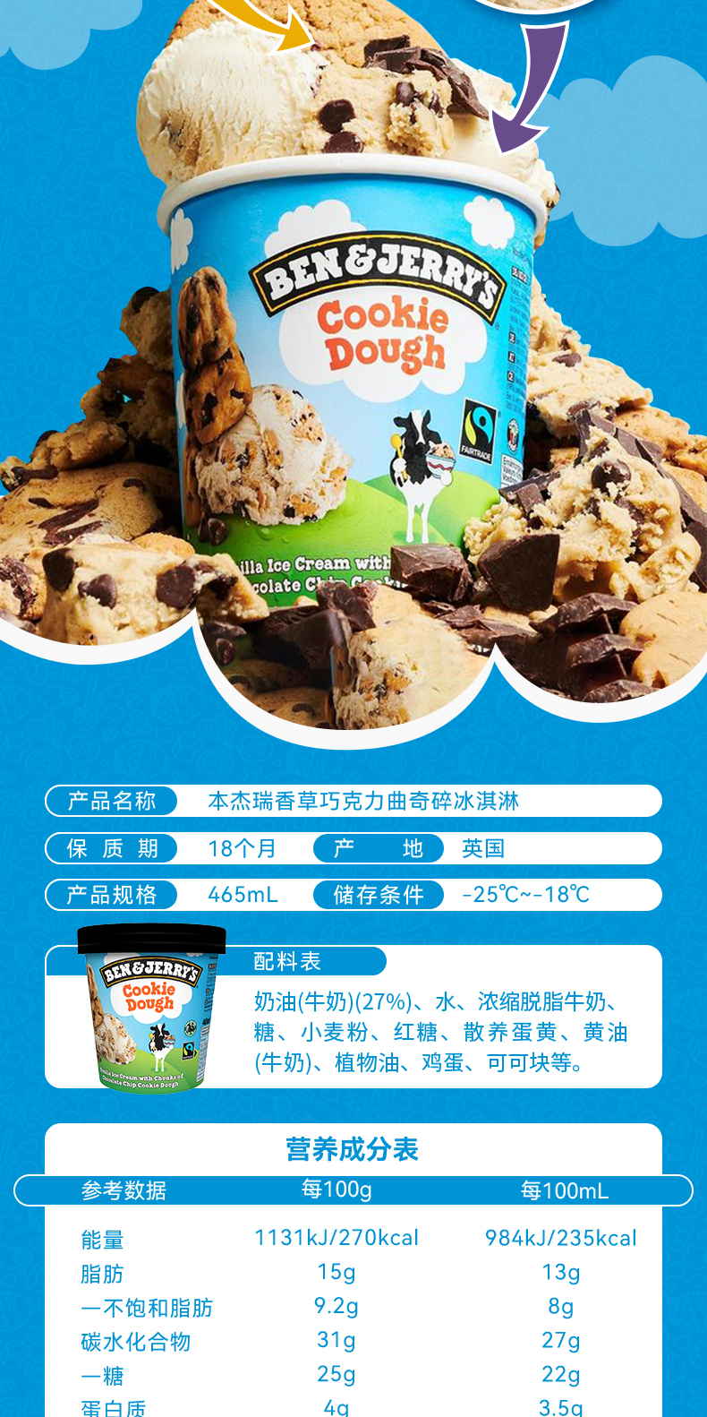 Ben&Jerry's本杰瑞巧克力布朗尼冰淇淋465mL进口香草焦糖桶装雪糕