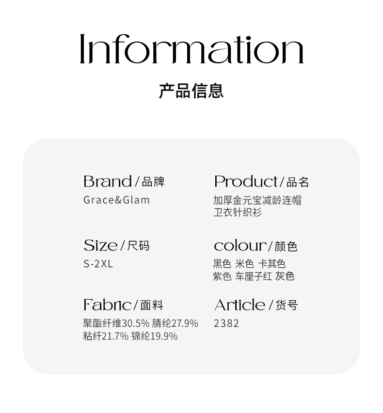 Grace&Glam 加厚金元宝减龄连帽卫衣针织衫