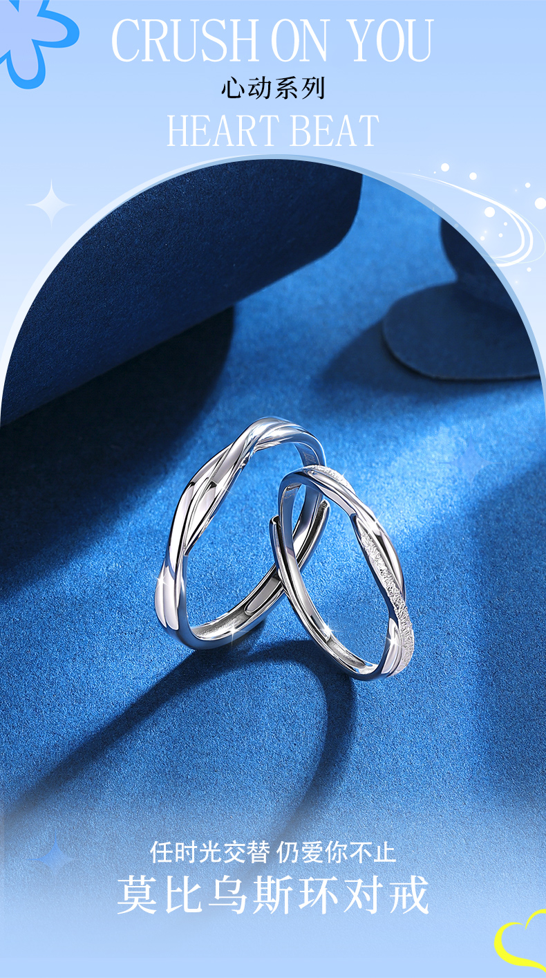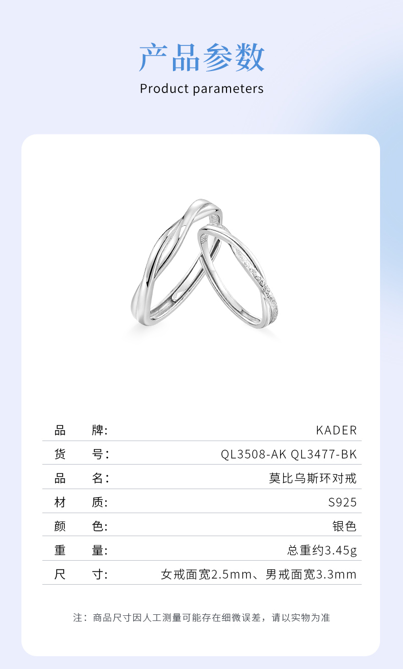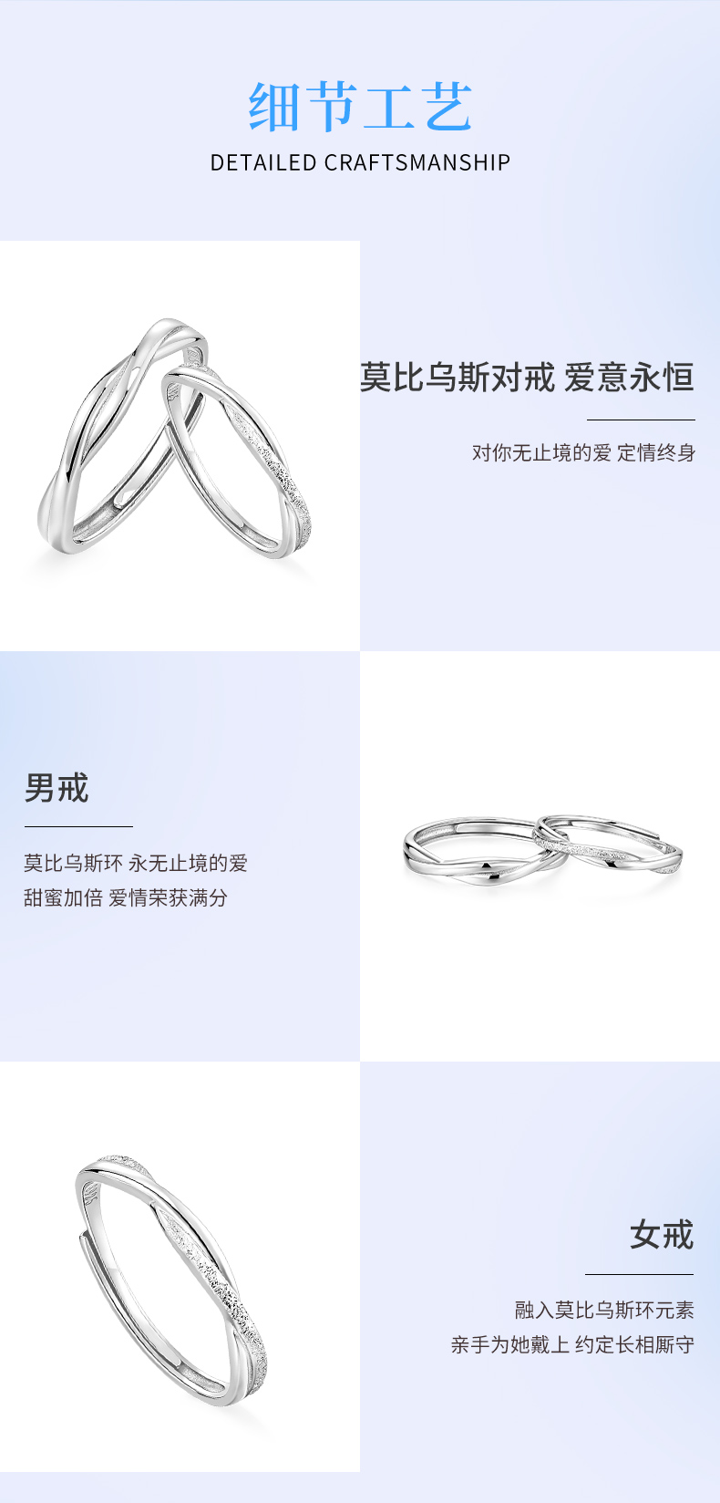 卡蒂罗/KADER 莫比乌斯环对戒 无尽的爱简约开口可调节素圈一对 爱意交织恋爱告白爱无止境配饰 925银 纪念日礼盒
