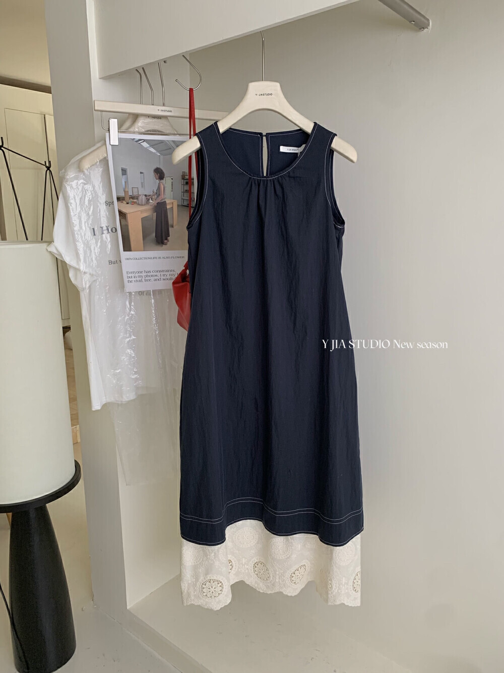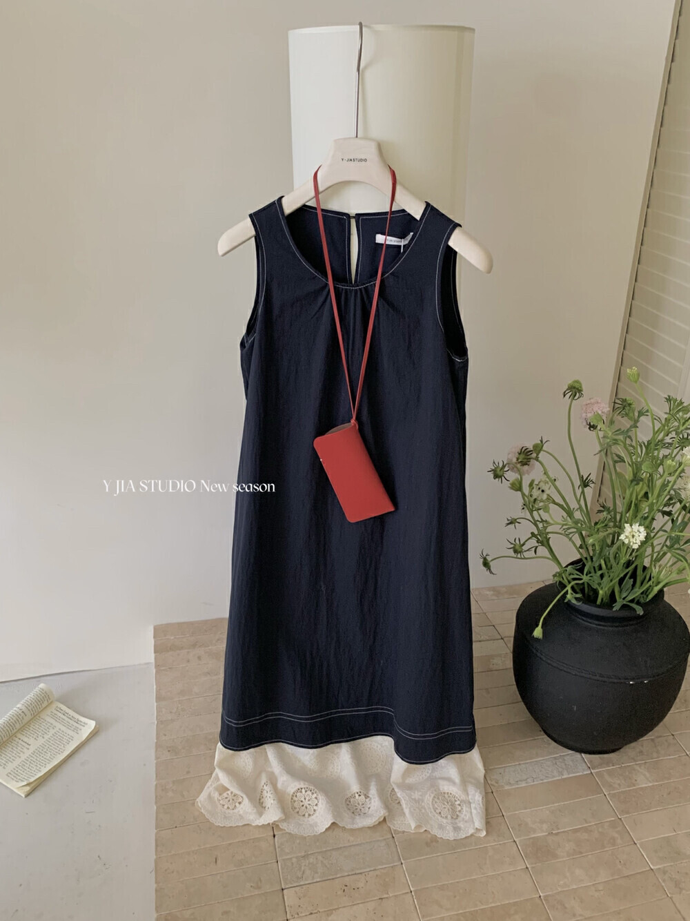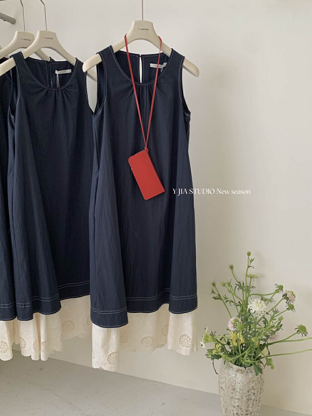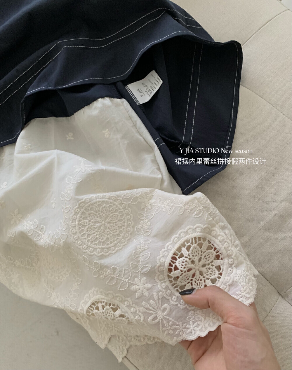 【GZ】无忧购韩版设计感明线蕾丝拼接假两件a字连衣裙8913-55(预售7-15天发货)