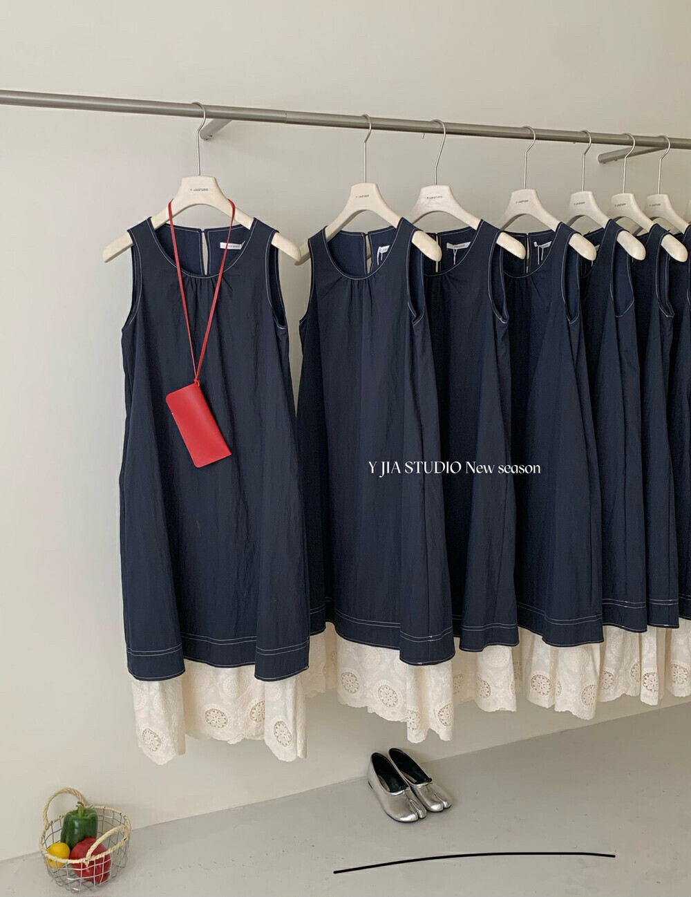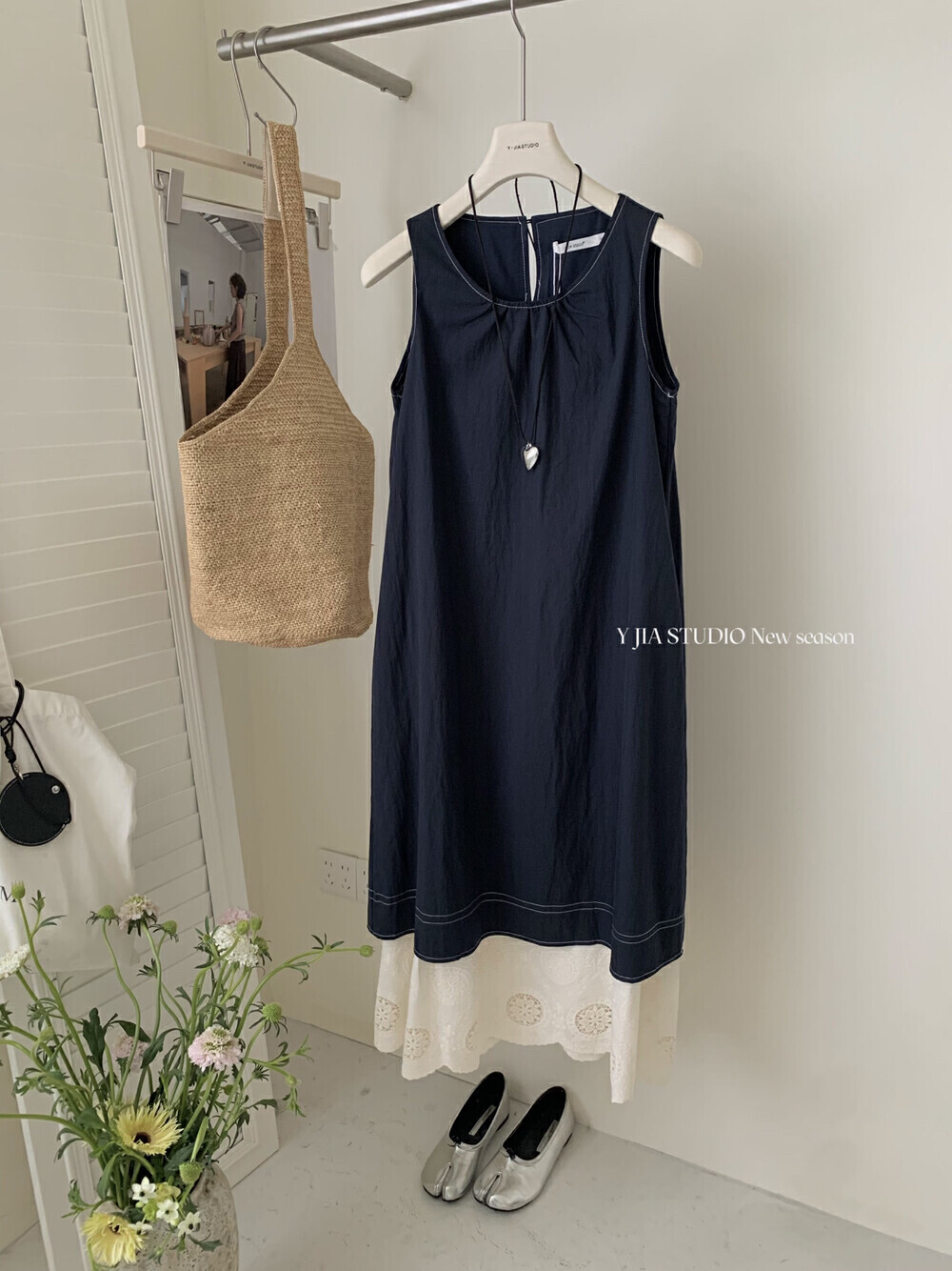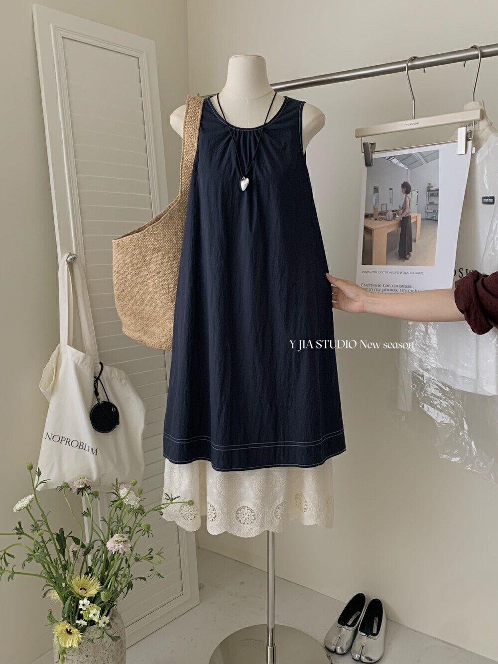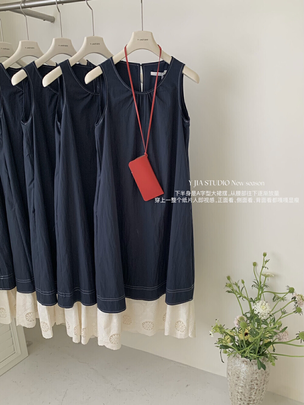 【GZ】无忧购韩版设计感明线蕾丝拼接假两件a字连衣裙8913-55(预售7-15天发货)