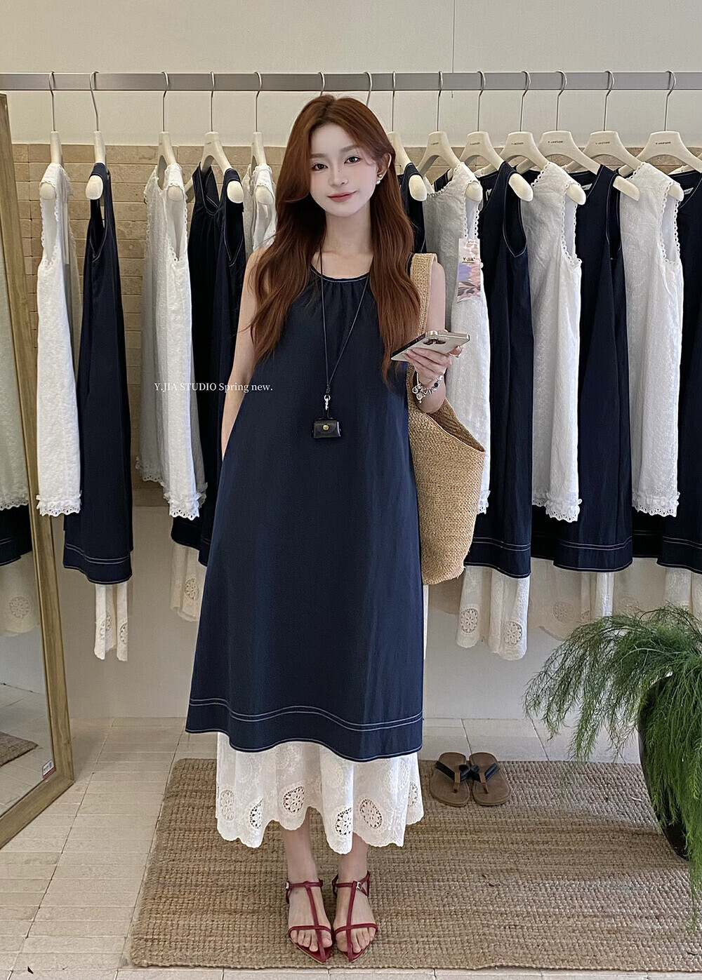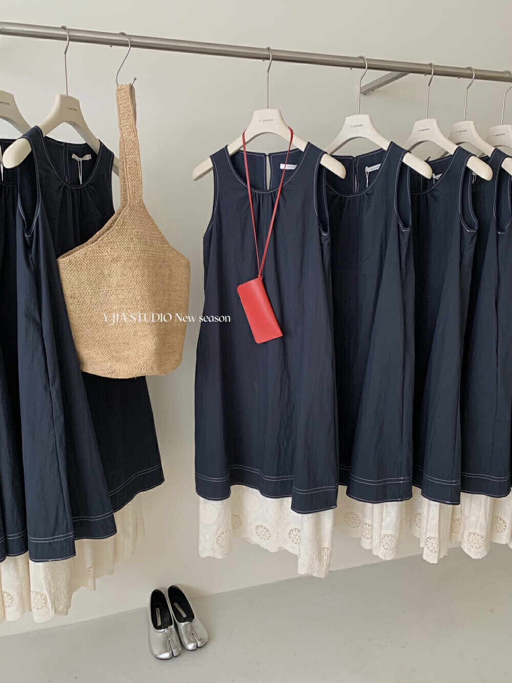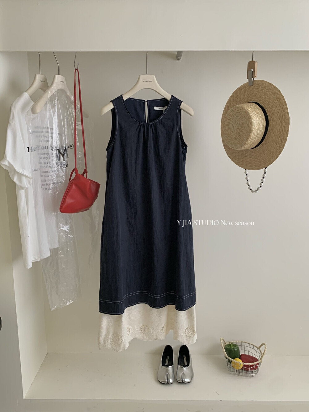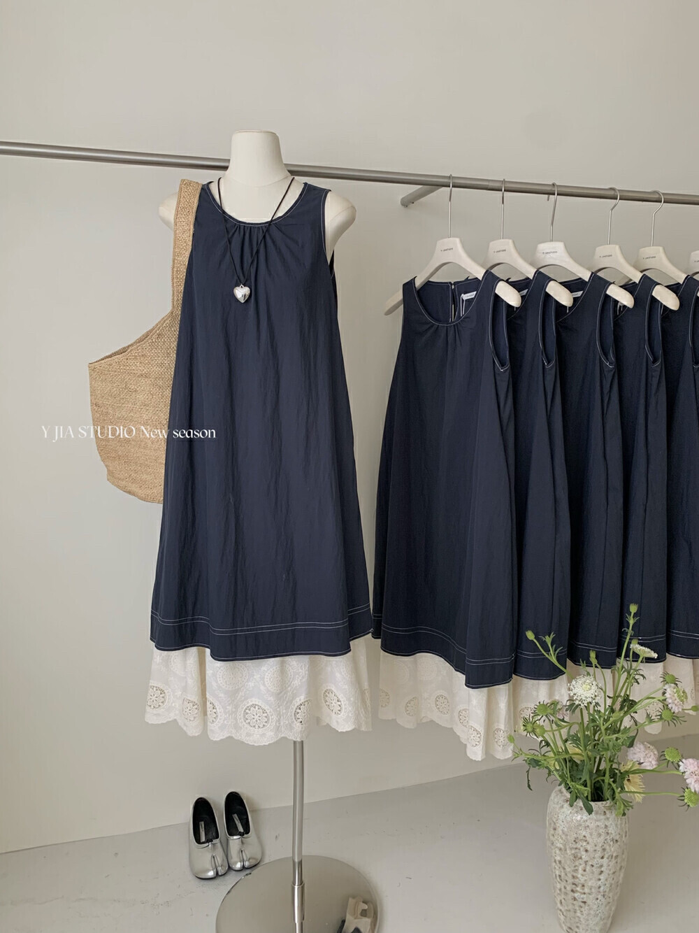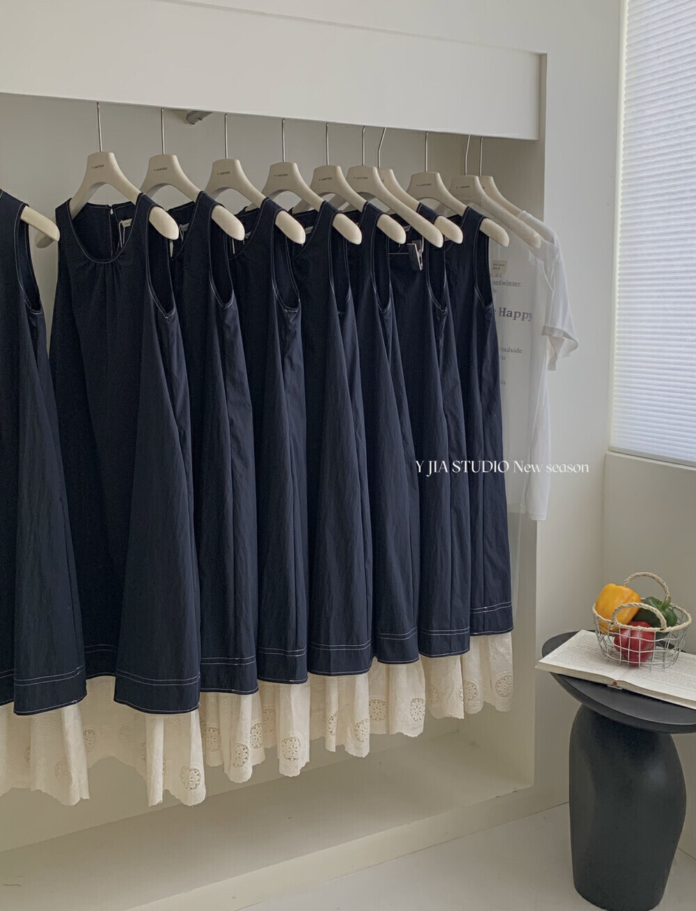 【GZ】无忧购韩版设计感明线蕾丝拼接假两件a字连衣裙8913-55(预售7-15天发货)