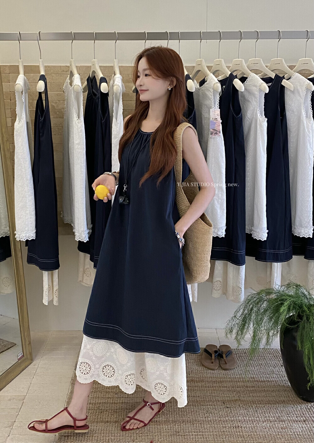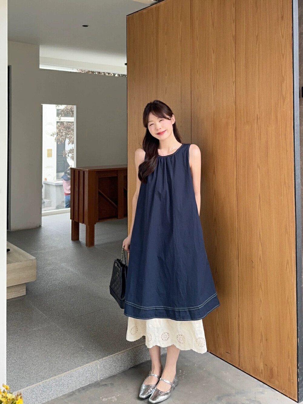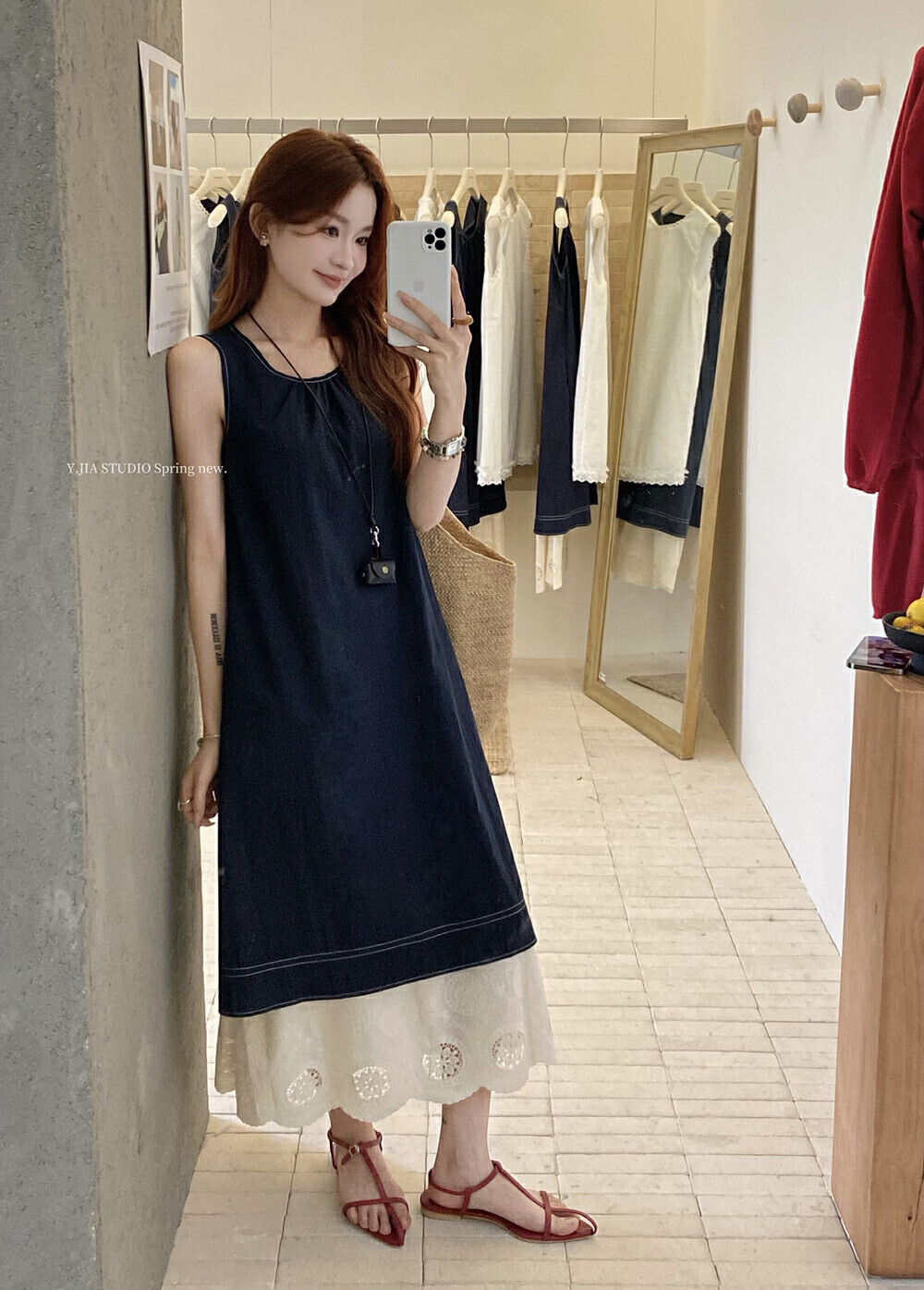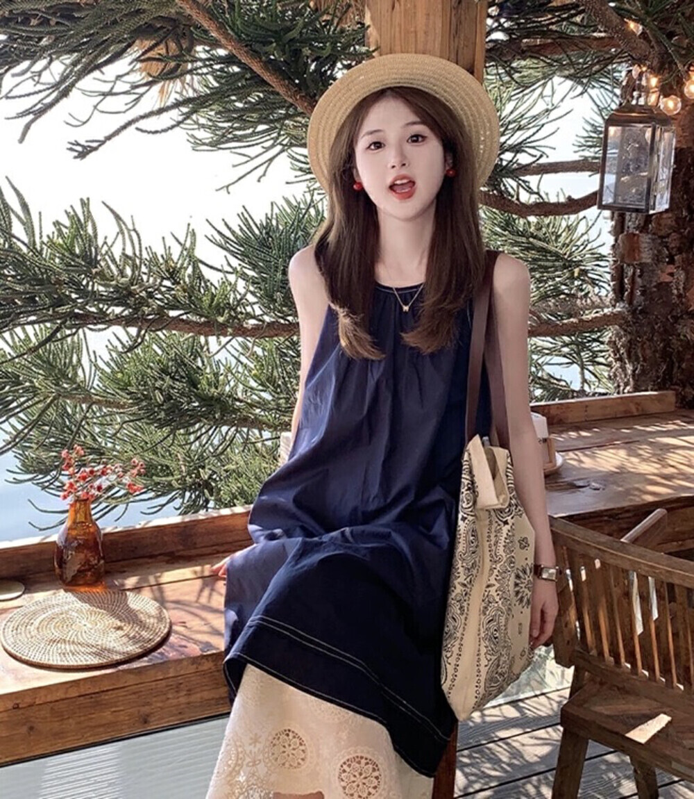 【GZ】无忧购韩版设计感明线蕾丝拼接假两件a字连衣裙8913-55(预售7-15天发货)
