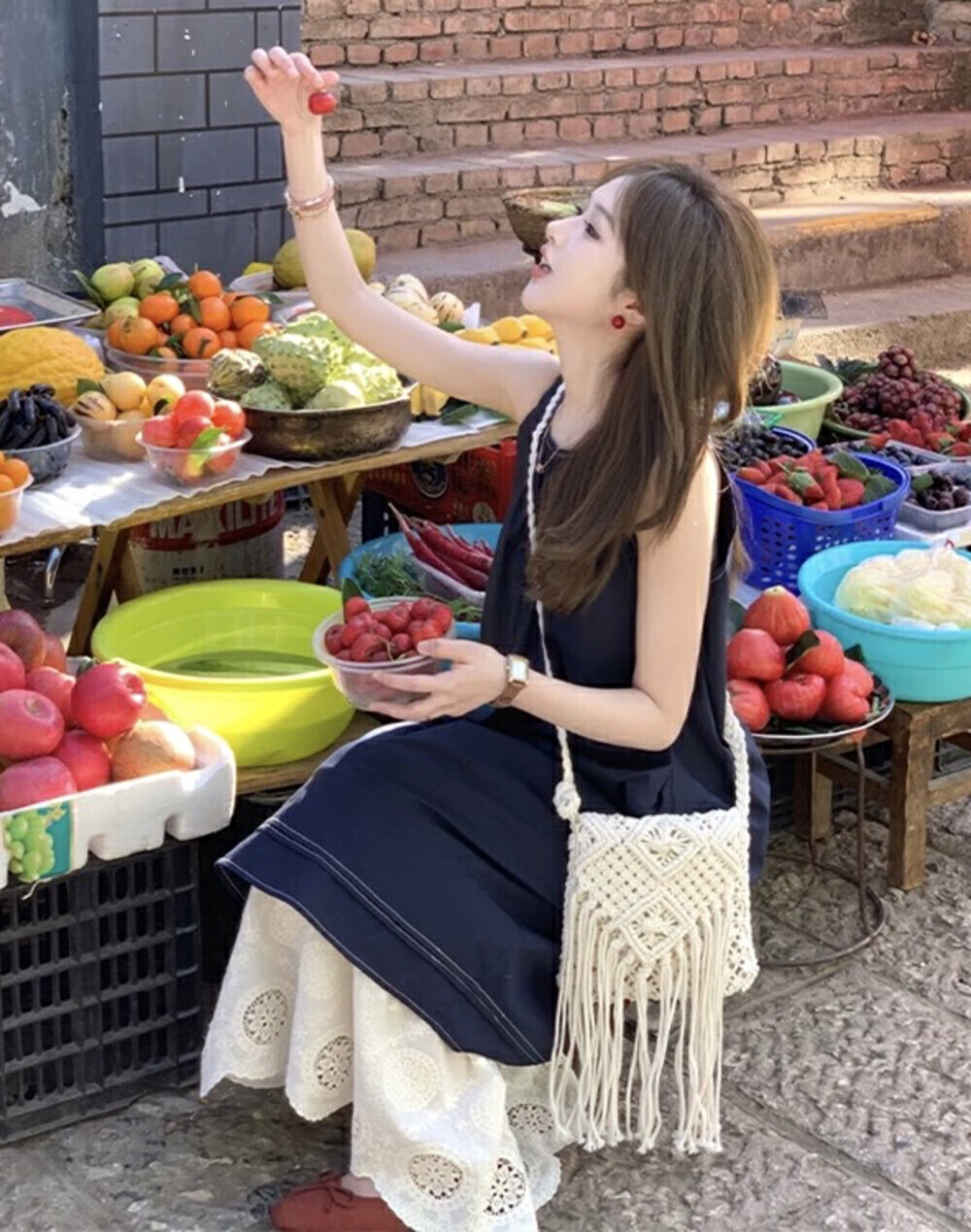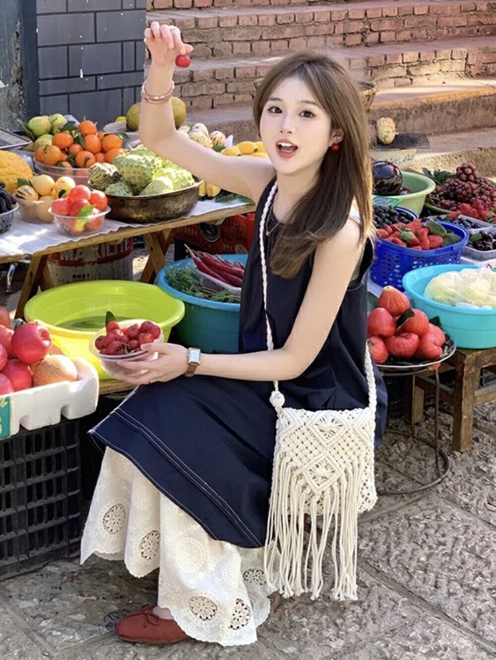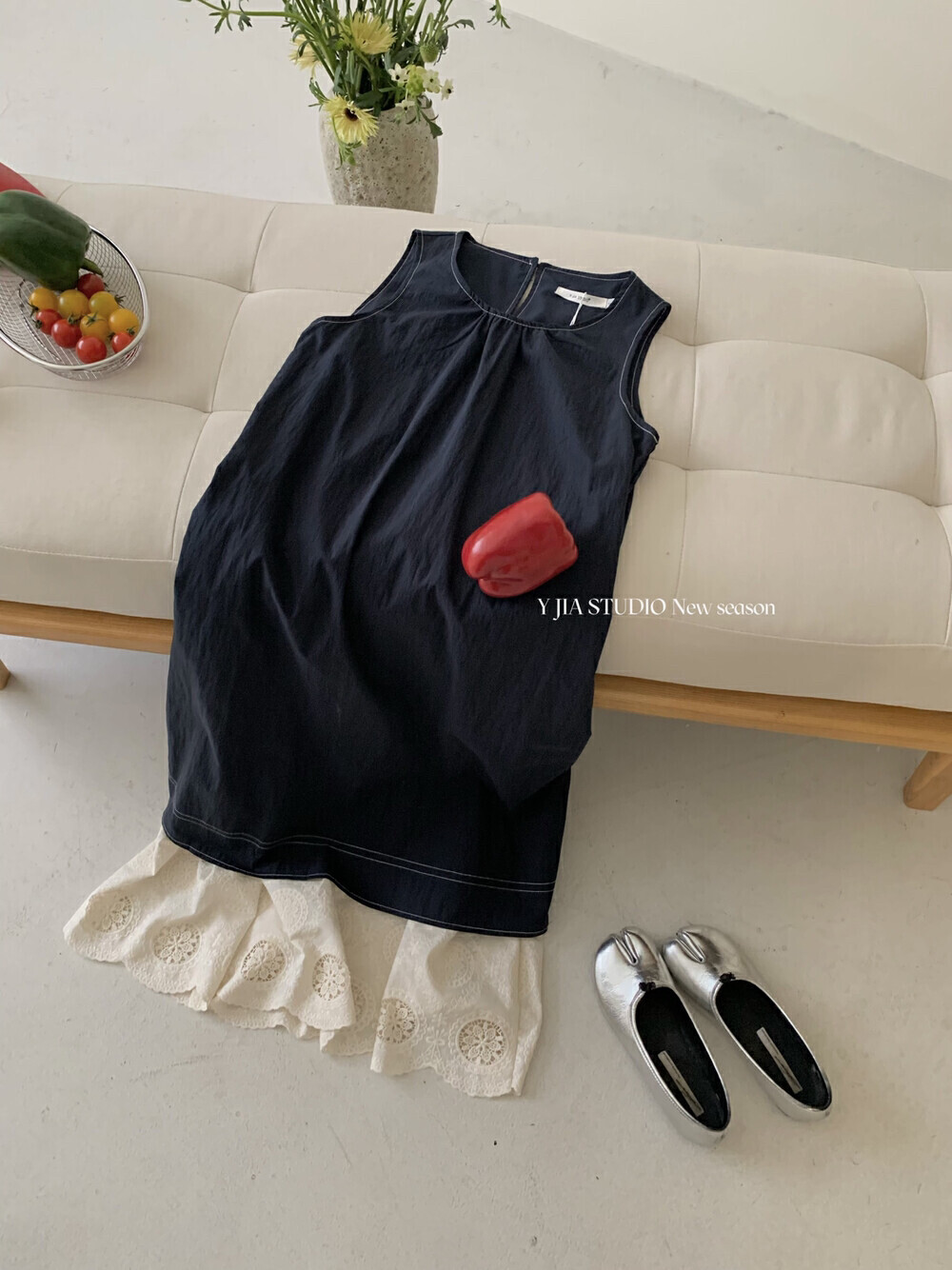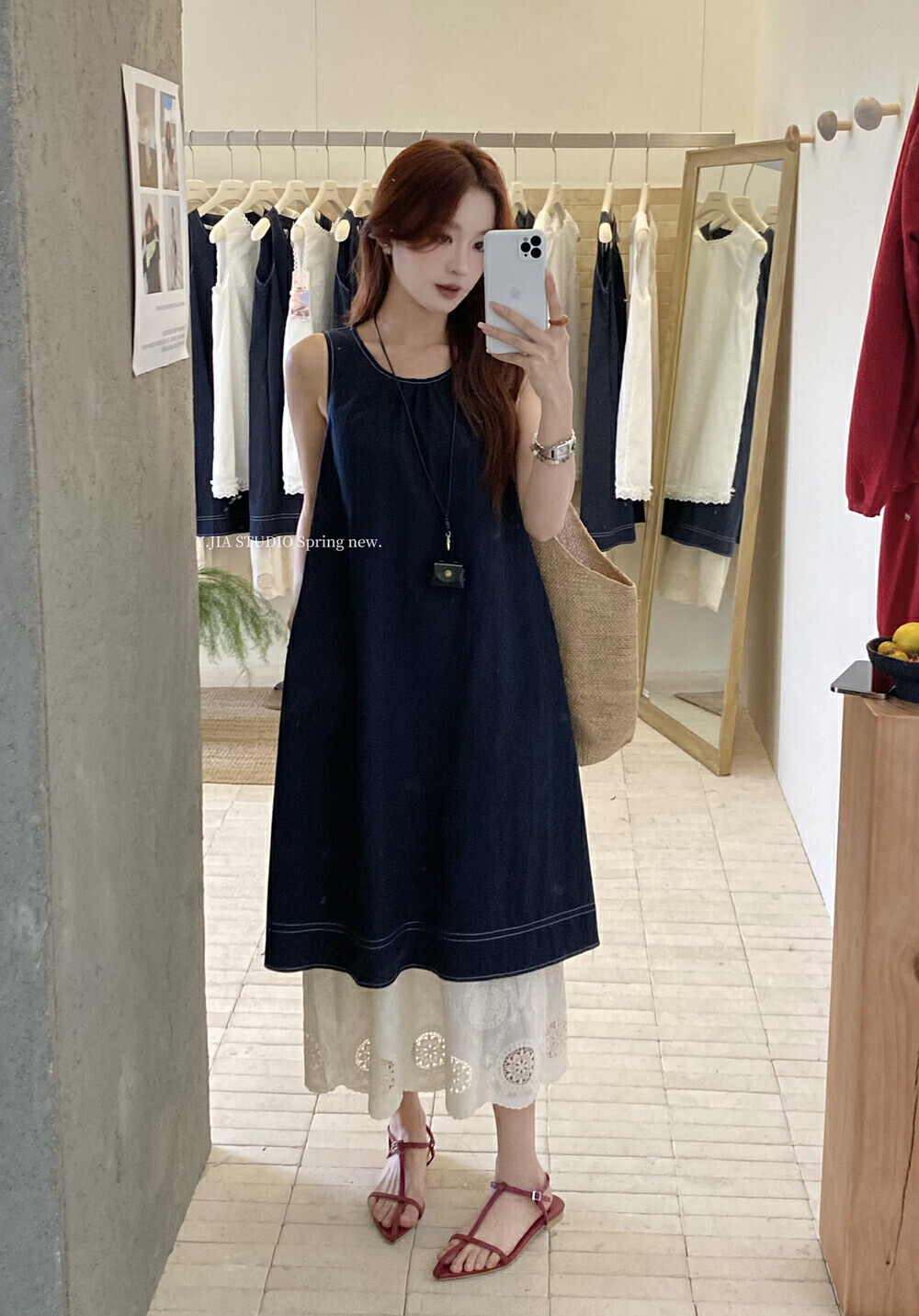 【GZ】无忧购韩版设计感明线蕾丝拼接假两件a字连衣裙8913-55(预售7-15天发货)