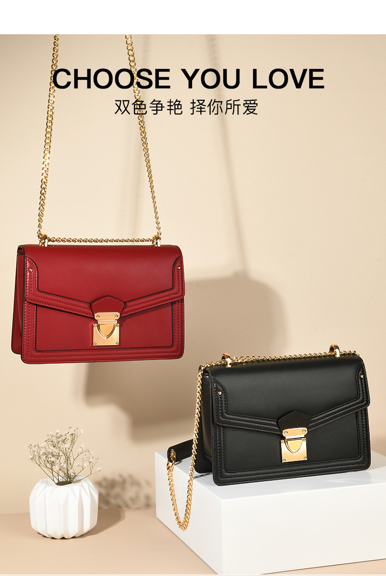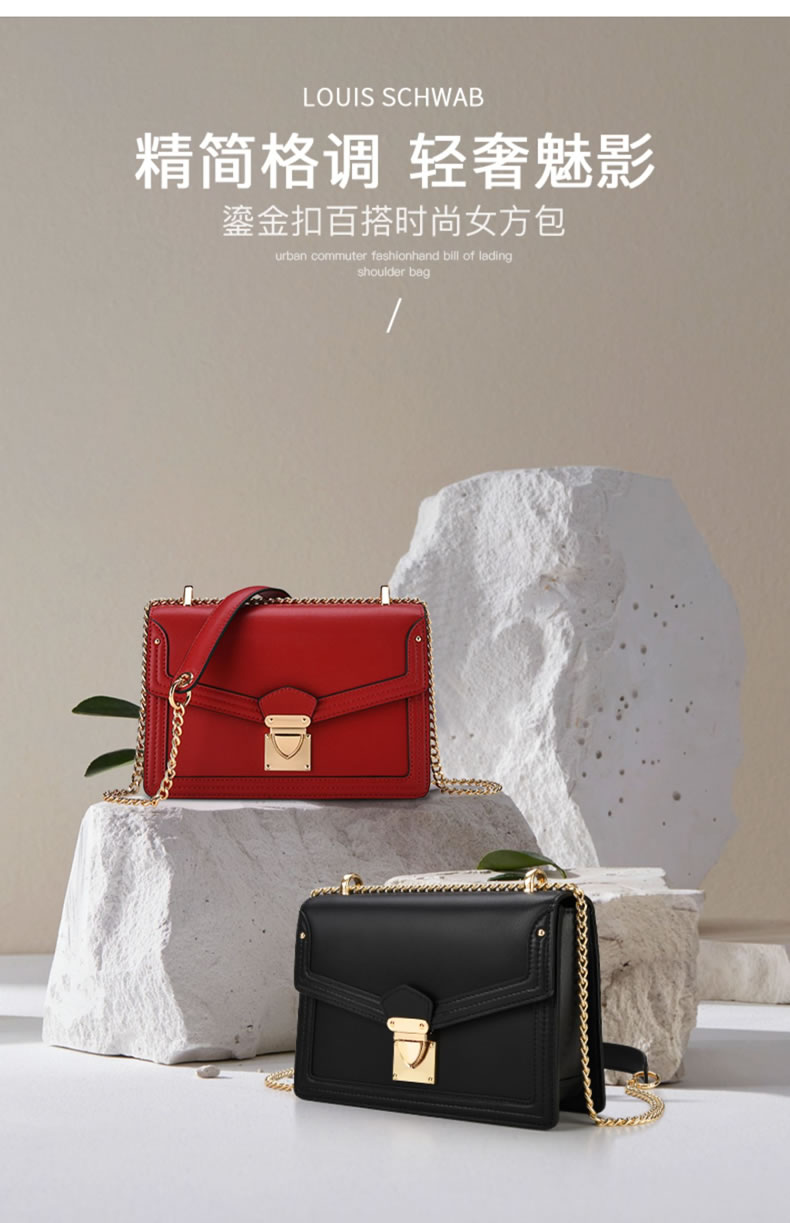 LS/路易施瓦布女包复古气质鎏金扣小方包